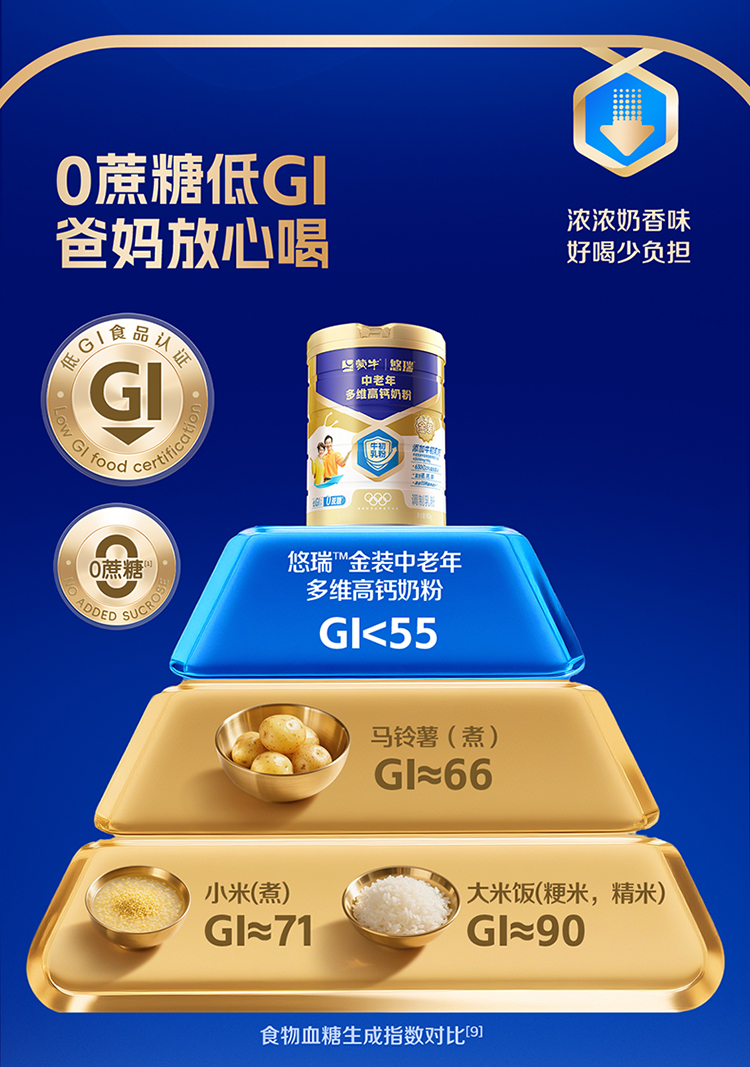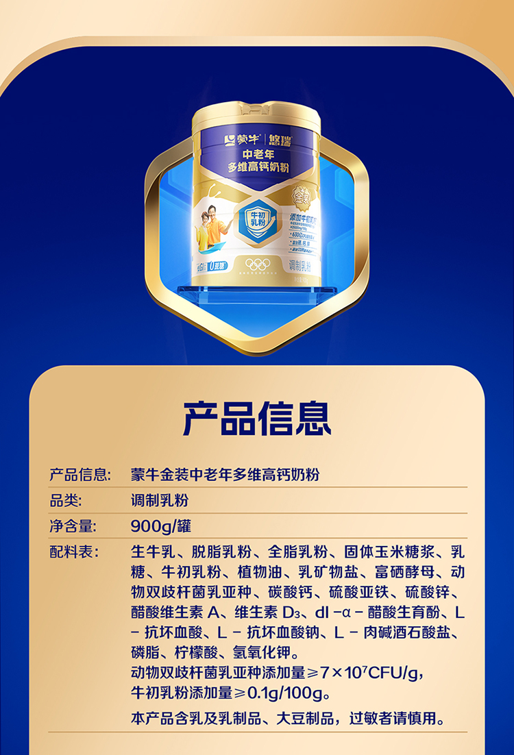 蒙牛金装中老年多维高钙奶粉900g(生牛乳)