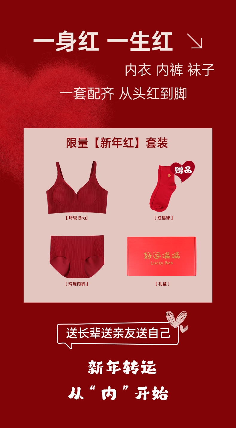 【上新!79元/套 送红福袜礼盒 】 让你从头红到脚 | 我的花匠监制品牌 Me!玲珑Bra内衣新年红套装 女士内衣内裤 本命年/新年红内衣 套装 [注意:贴身内衣,非质量问题不支持退换,请知悉!]