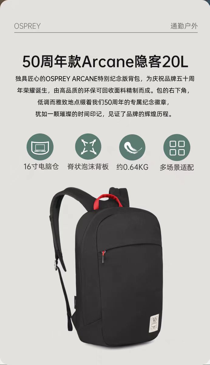 OSPREY Arcane LargeDay 隐客20 50周年纪念款双肩背包通勤包2024