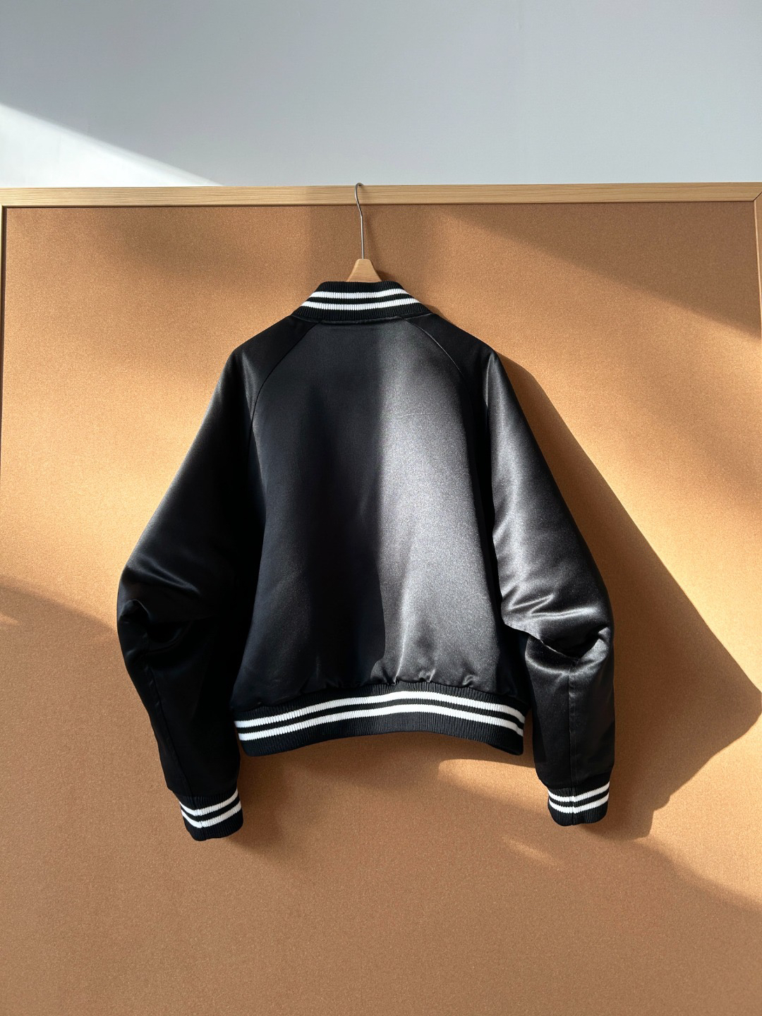 拼接的白色面料同样也是采用了光泽感十足的缎面面料,跟大身呼应~