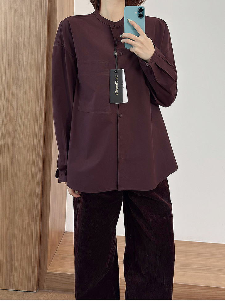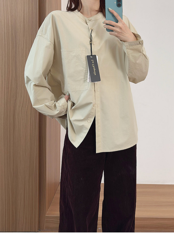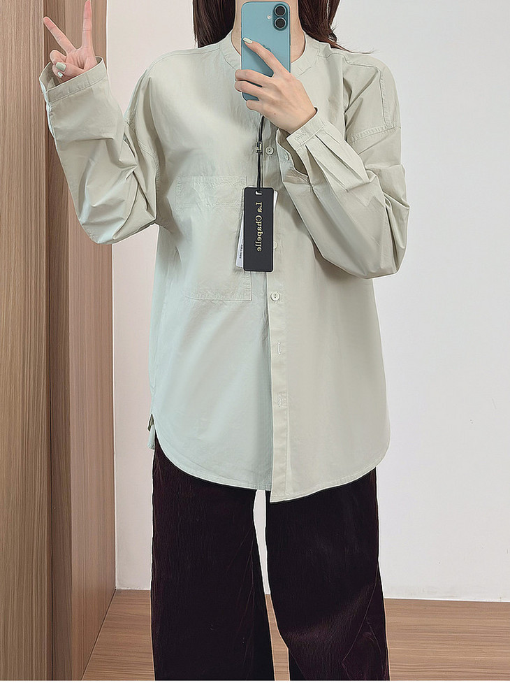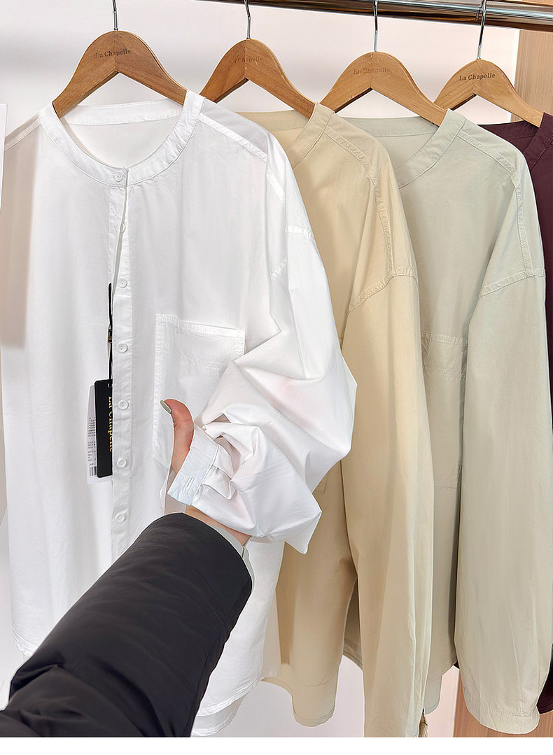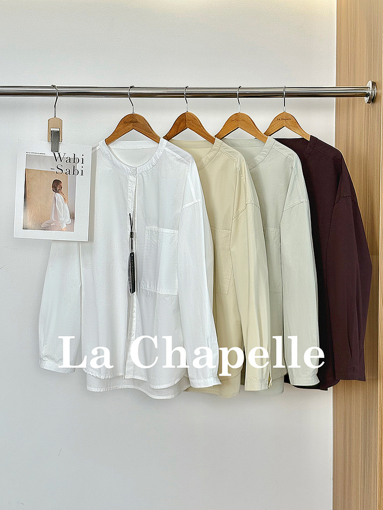 专柜实拍【气质文艺风】拉夏贝尔/La Chapelle纯棉舒适亲肤圆领排扣百搭休闲衬衫叠穿纯色长袖上衣