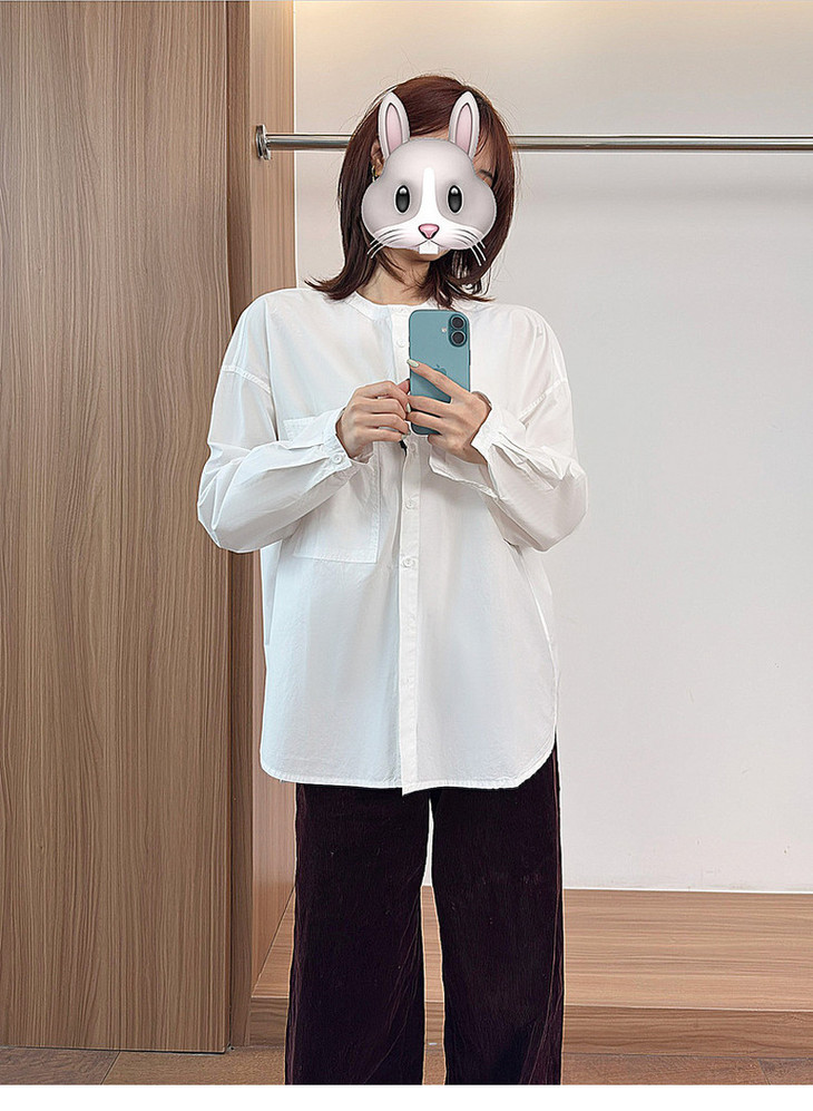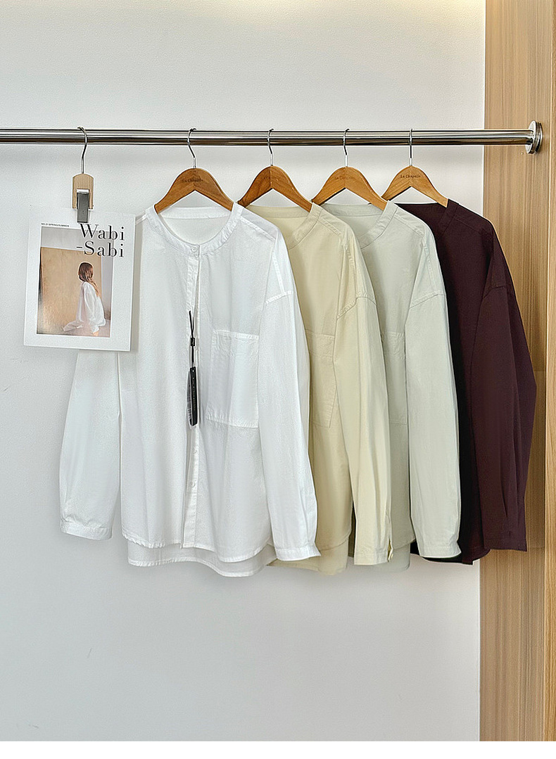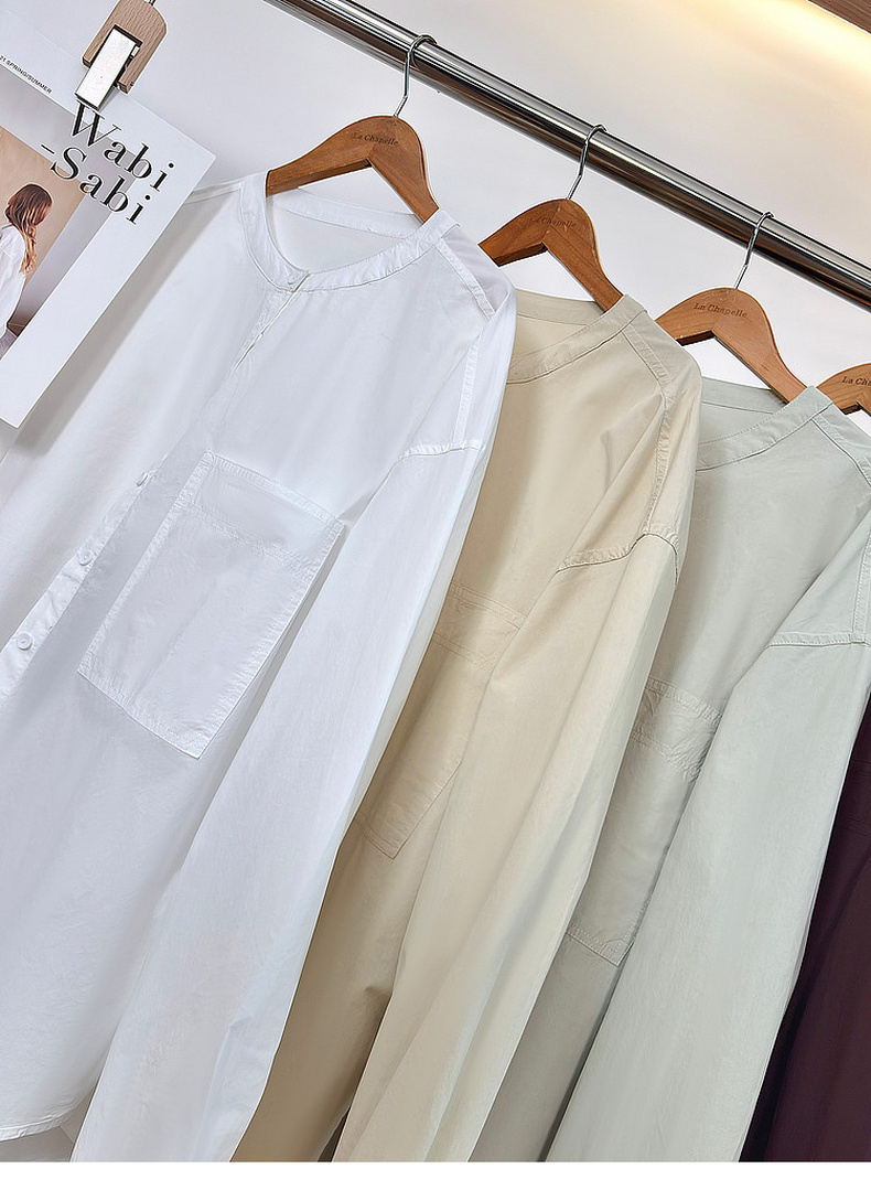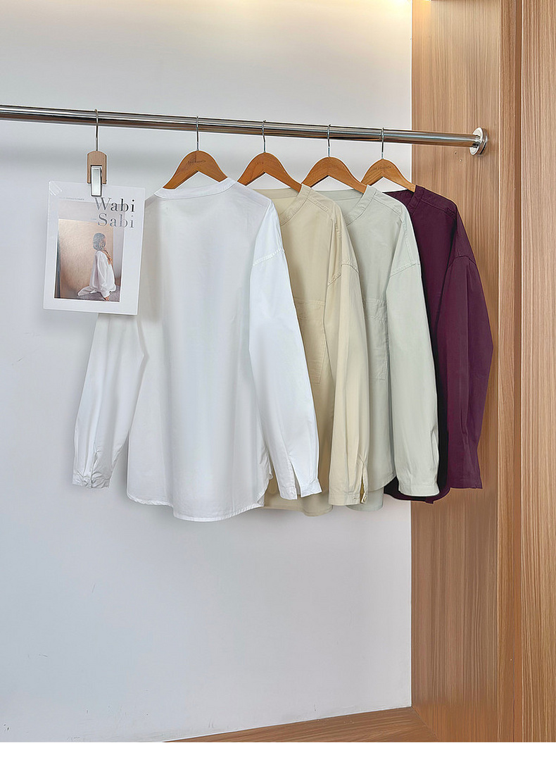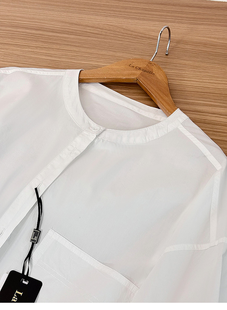专柜实拍【气质文艺风】拉夏贝尔/La Chapelle纯棉舒适亲肤圆领排扣百搭休闲衬衫叠穿纯色长袖上衣