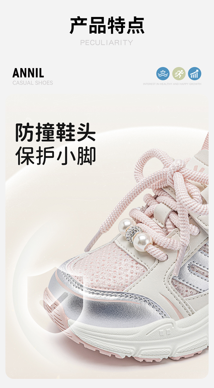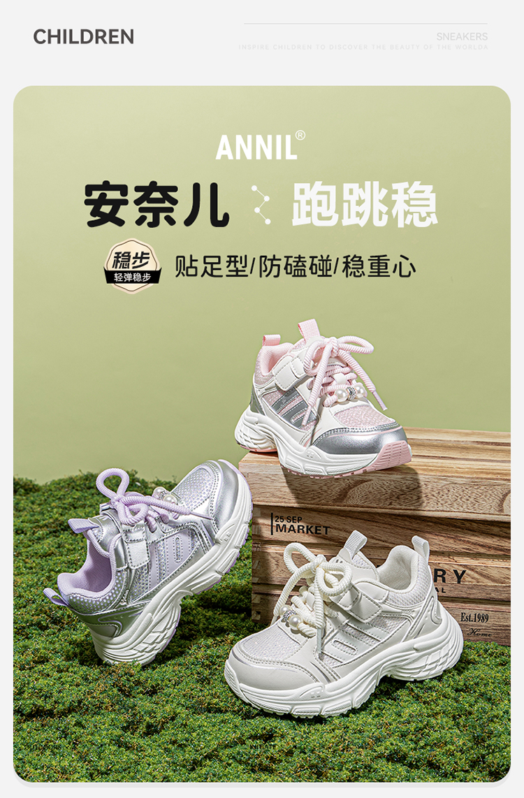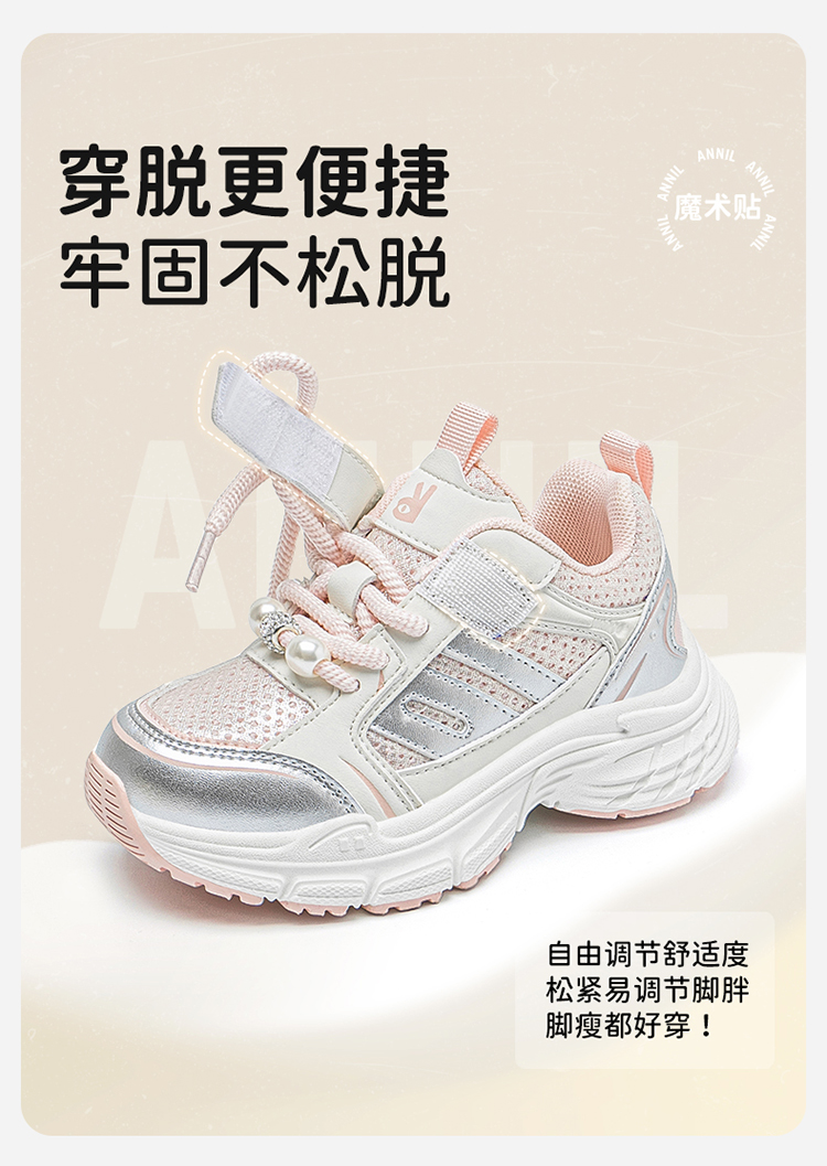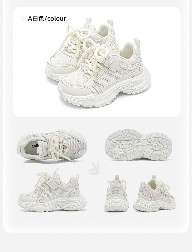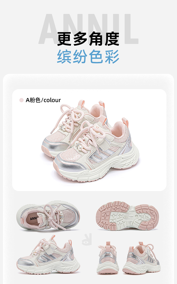 ANNIL/安奈儿女童鞋2025春季新款儿童老爹鞋宝宝厚底网面透气女孩运动鞋HG5105227