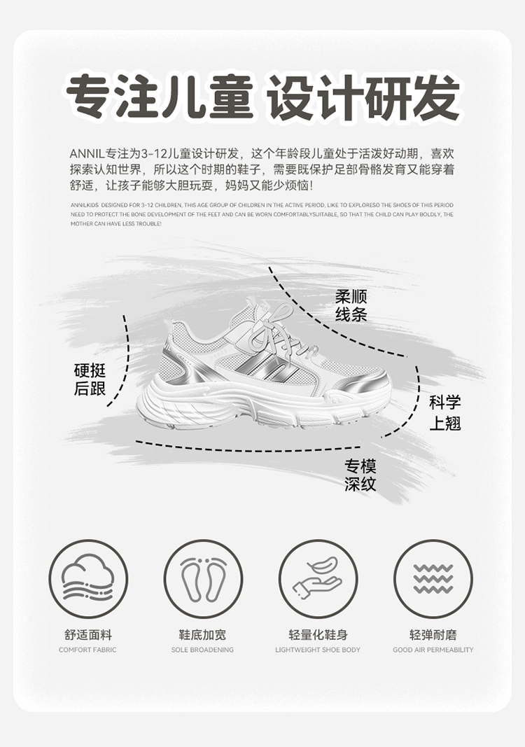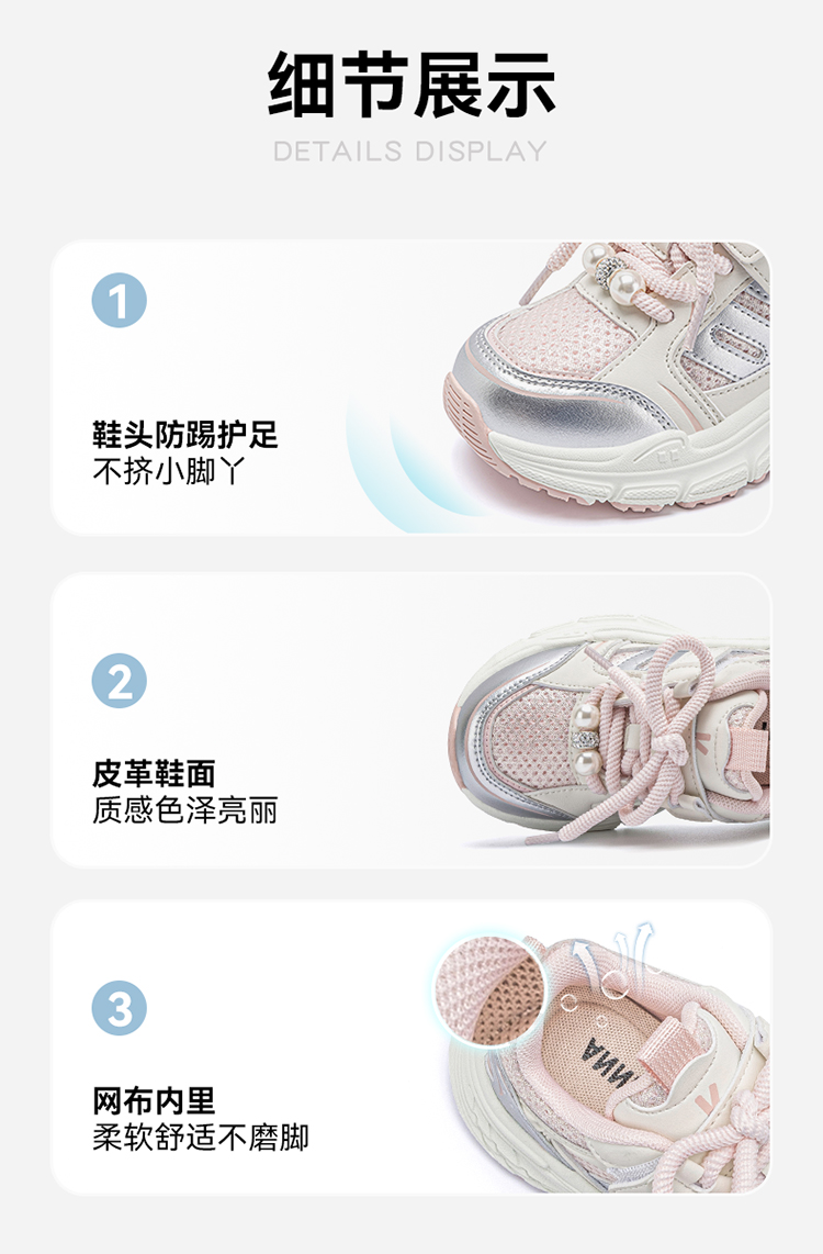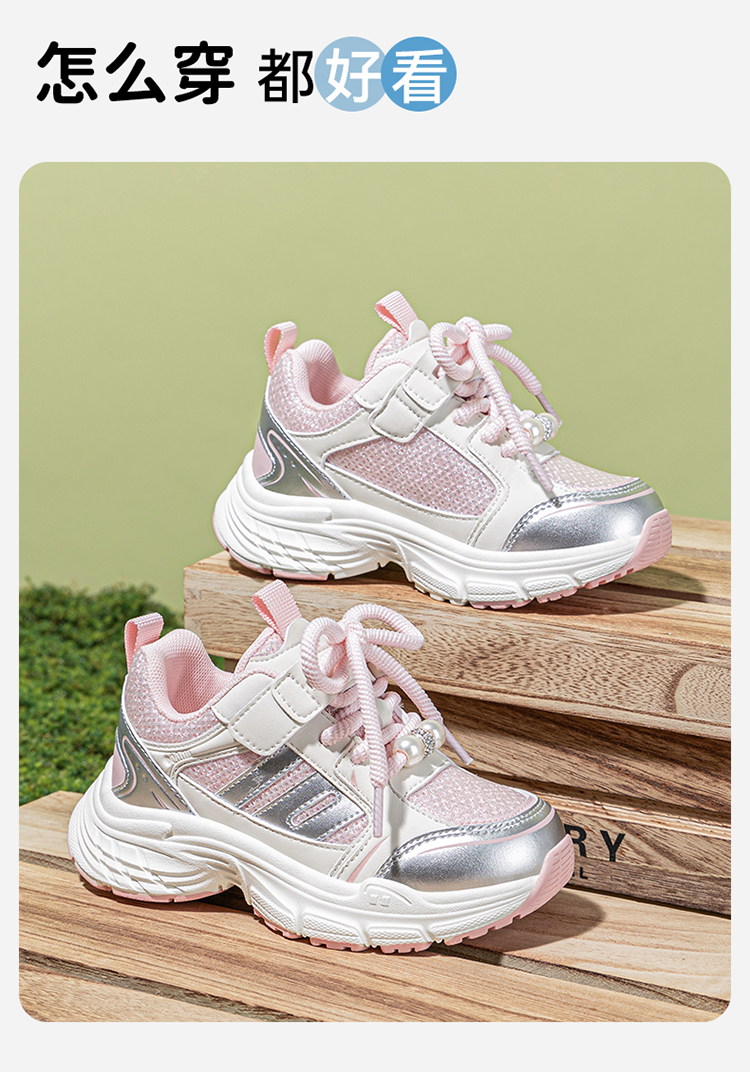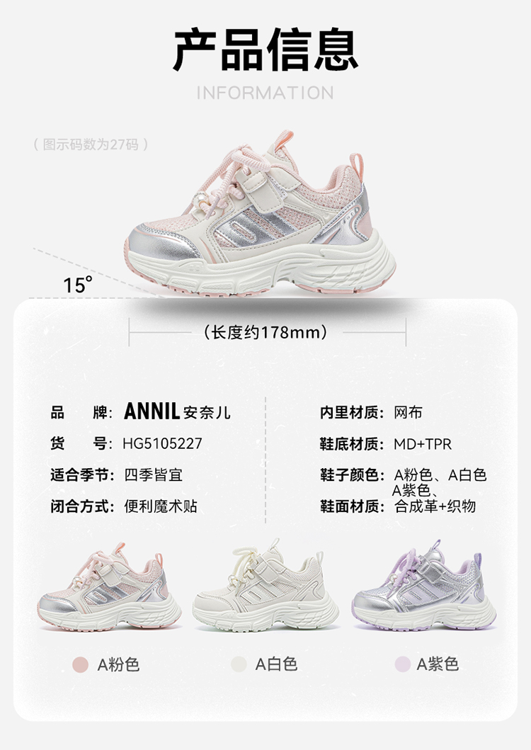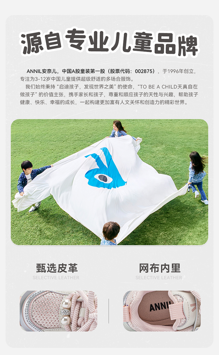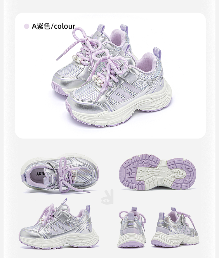 ANNIL/安奈儿女童鞋2025春季新款儿童老爹鞋宝宝厚底网面透气女孩运动鞋HG5105227