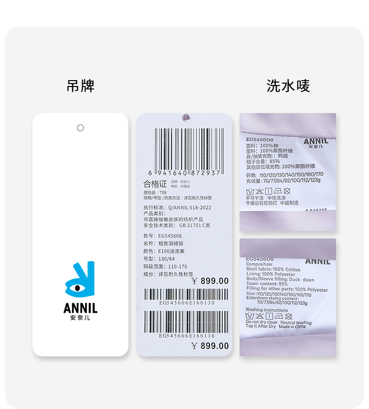 【-5~5℃聚暖系列】女童短款羽绒服冬季新款安奈儿童装EG545606