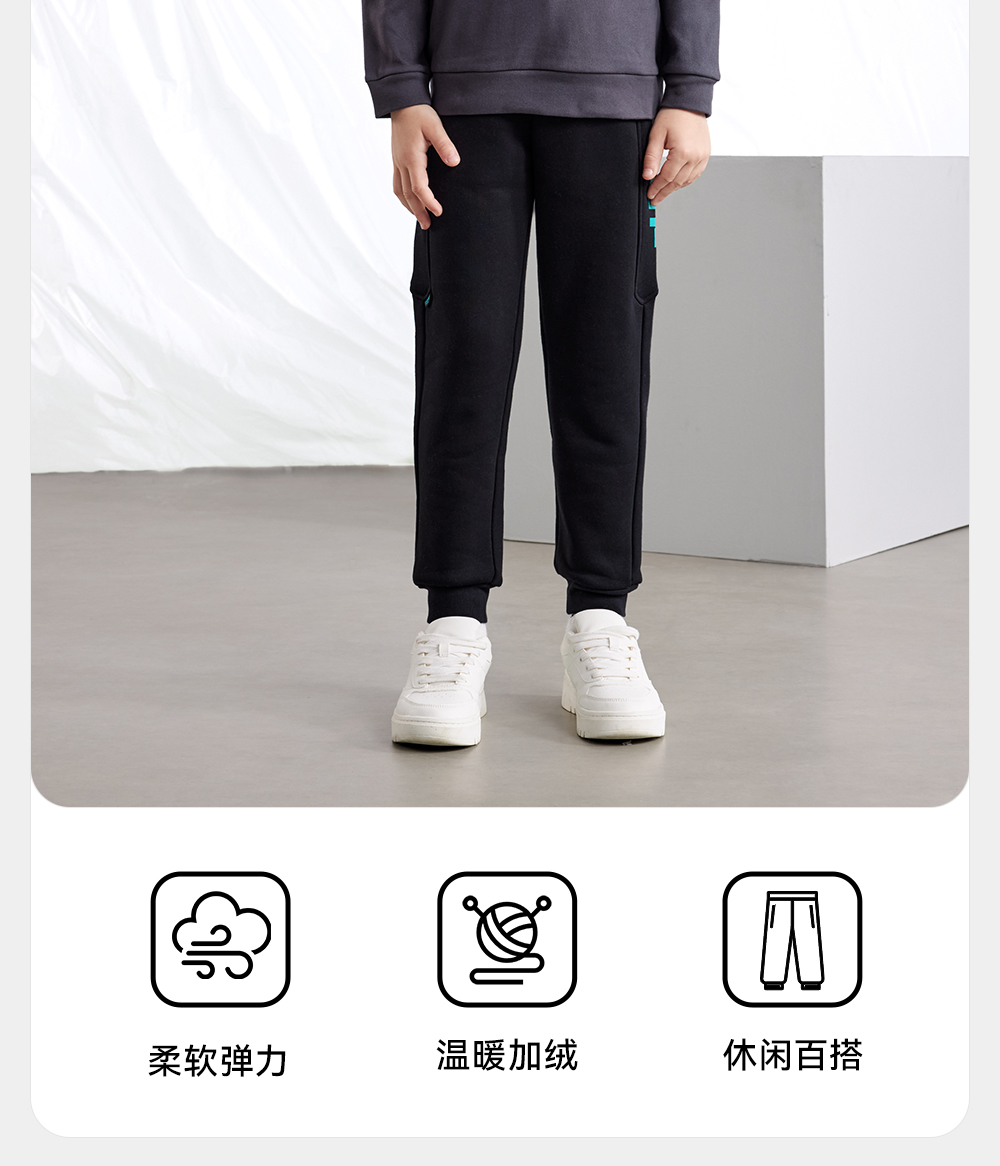 英氏儿童裤子长裤秋季不倒绒保暖男童女童百搭休闲裤新款长裤