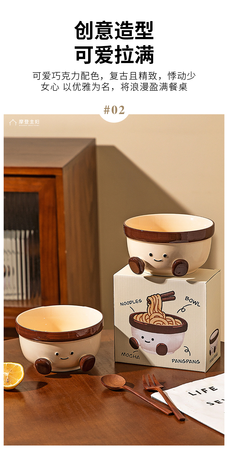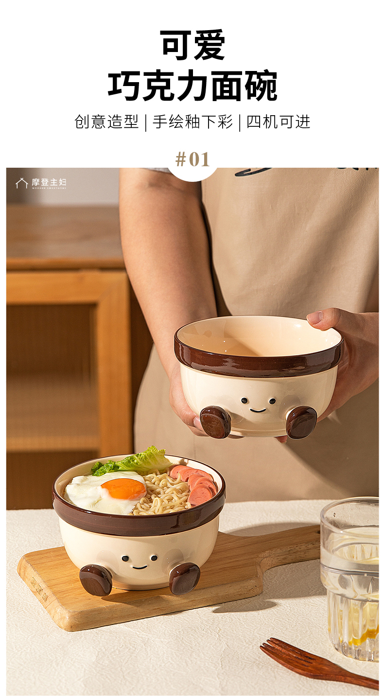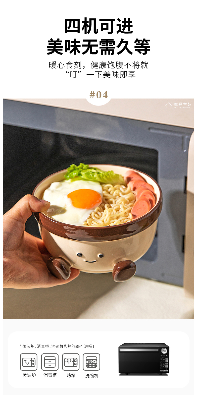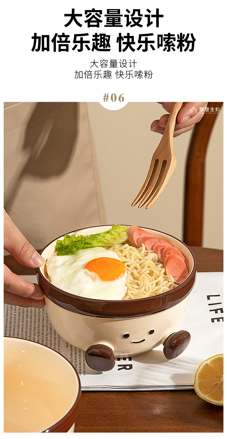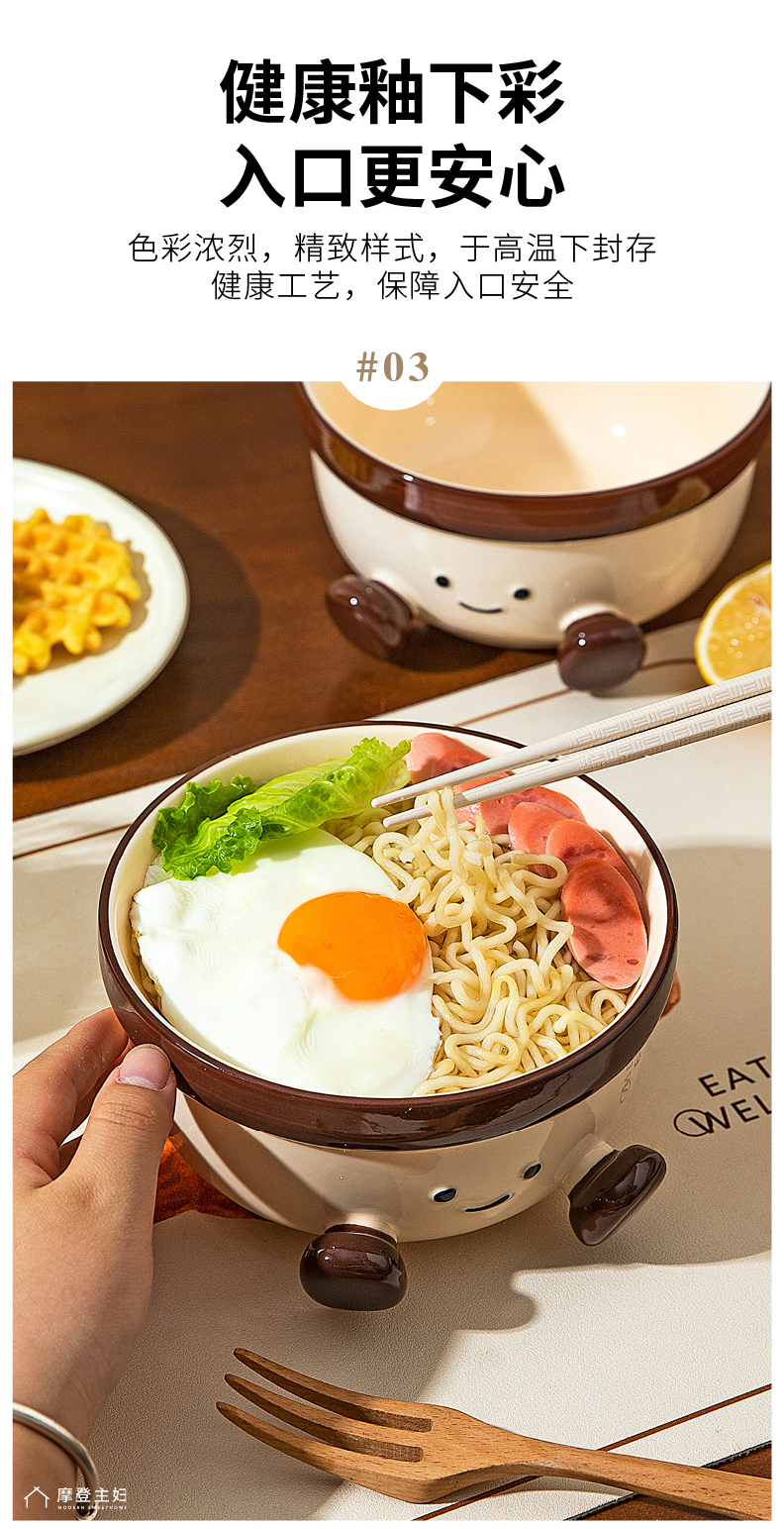 摩登主妇可爱泡面碗带盖面碗家用餐具陶瓷汤碗个人专用方便面大碗