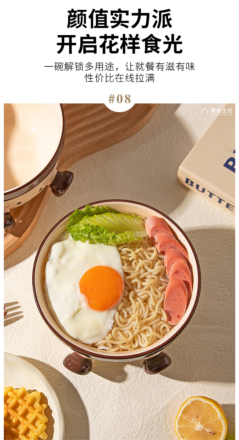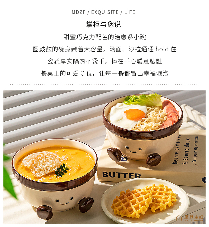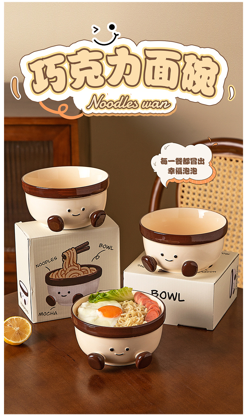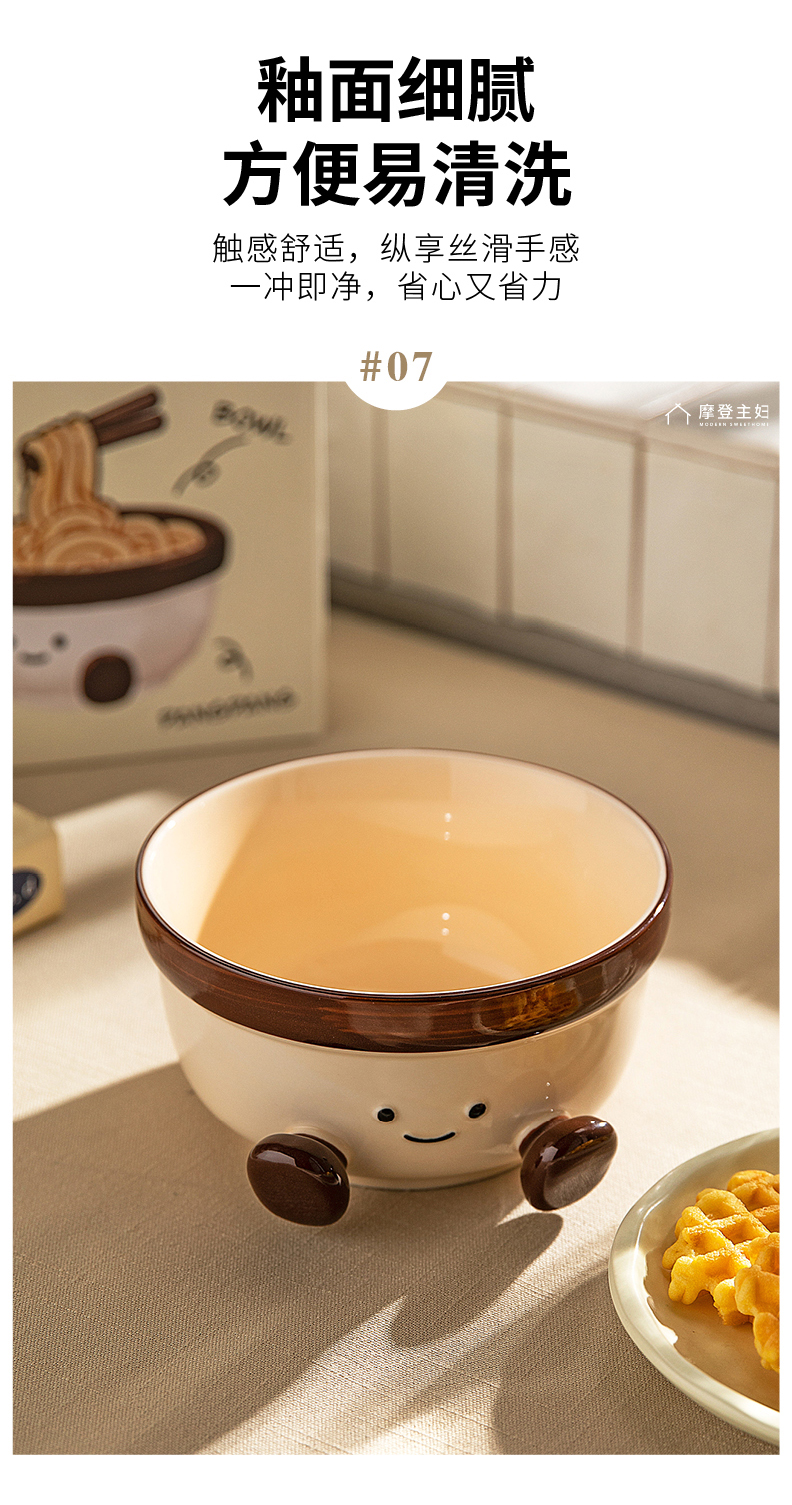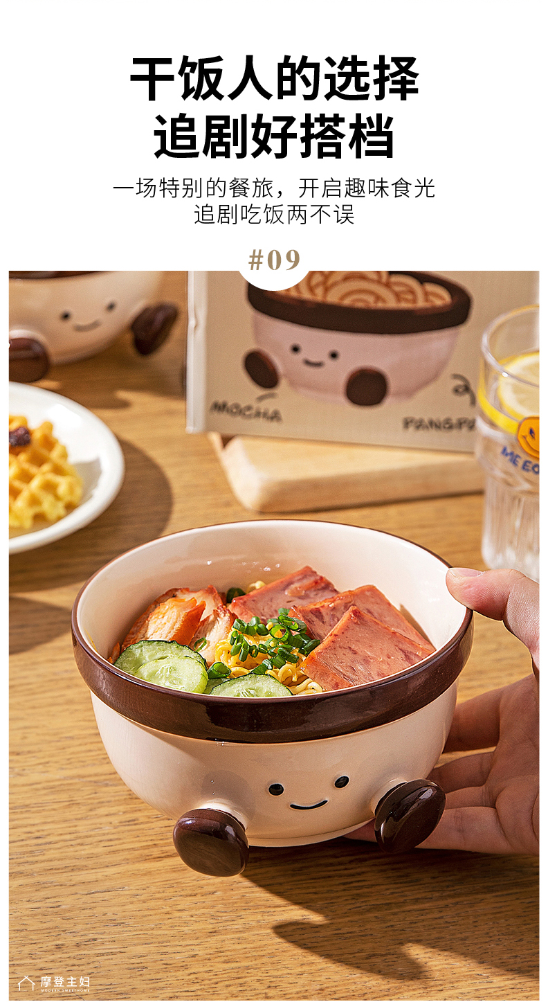摩登主妇可爱泡面碗带盖面碗家用餐具陶瓷汤碗个人专用方便面大碗
