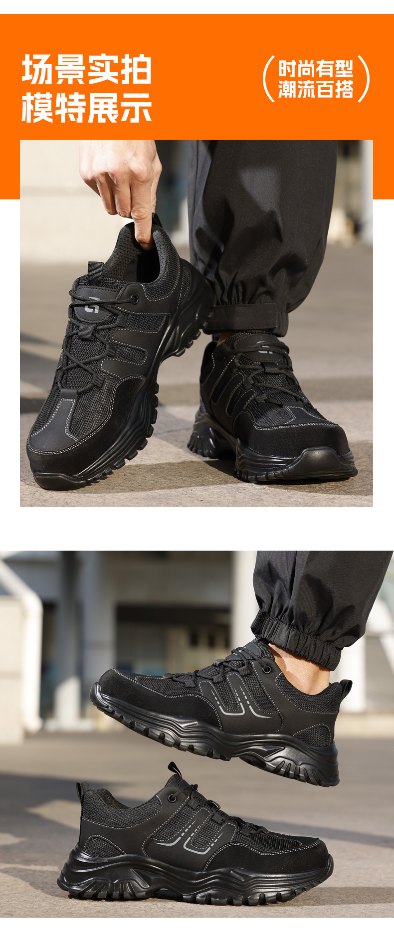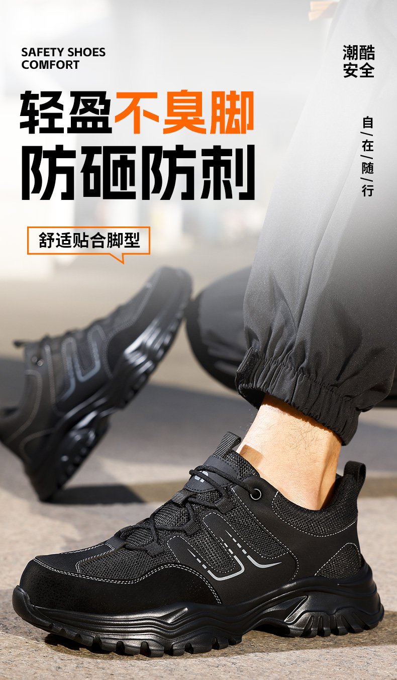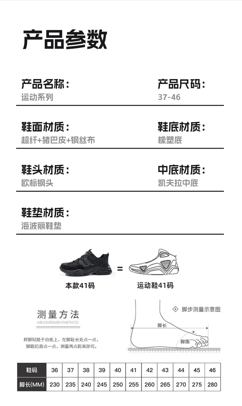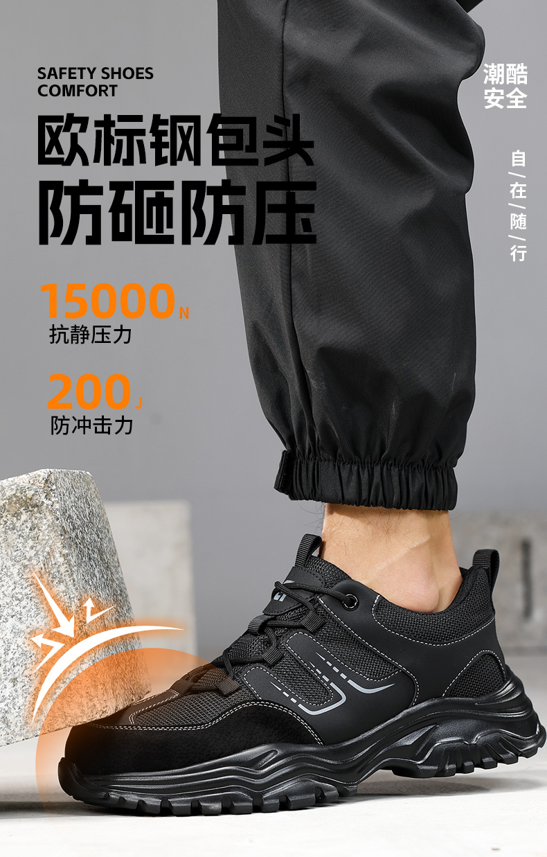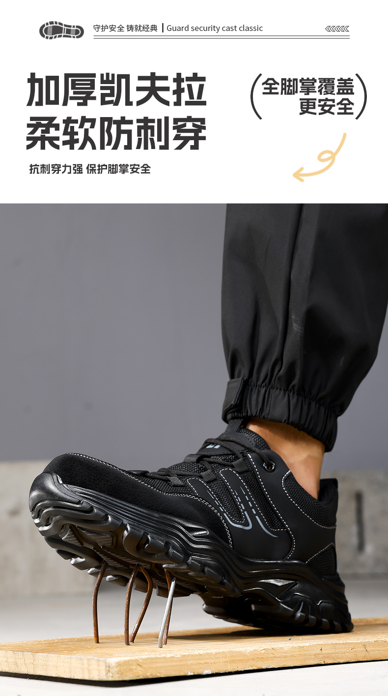 2025新款四季款劳保鞋防砸防刺穿欧标钢包头凯夫拉底橡塑底超纤猪巴皮钢丝布黑色低帮安全鞋