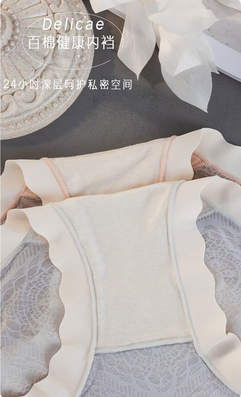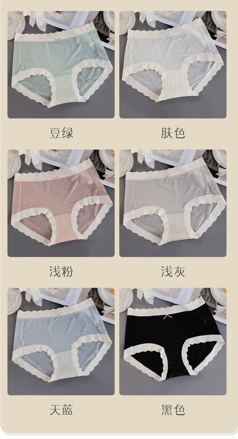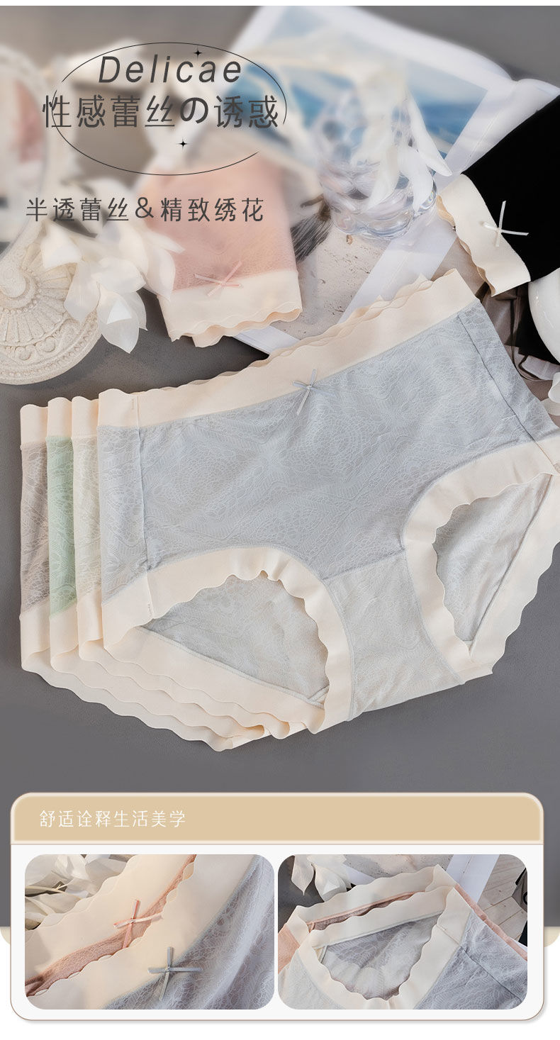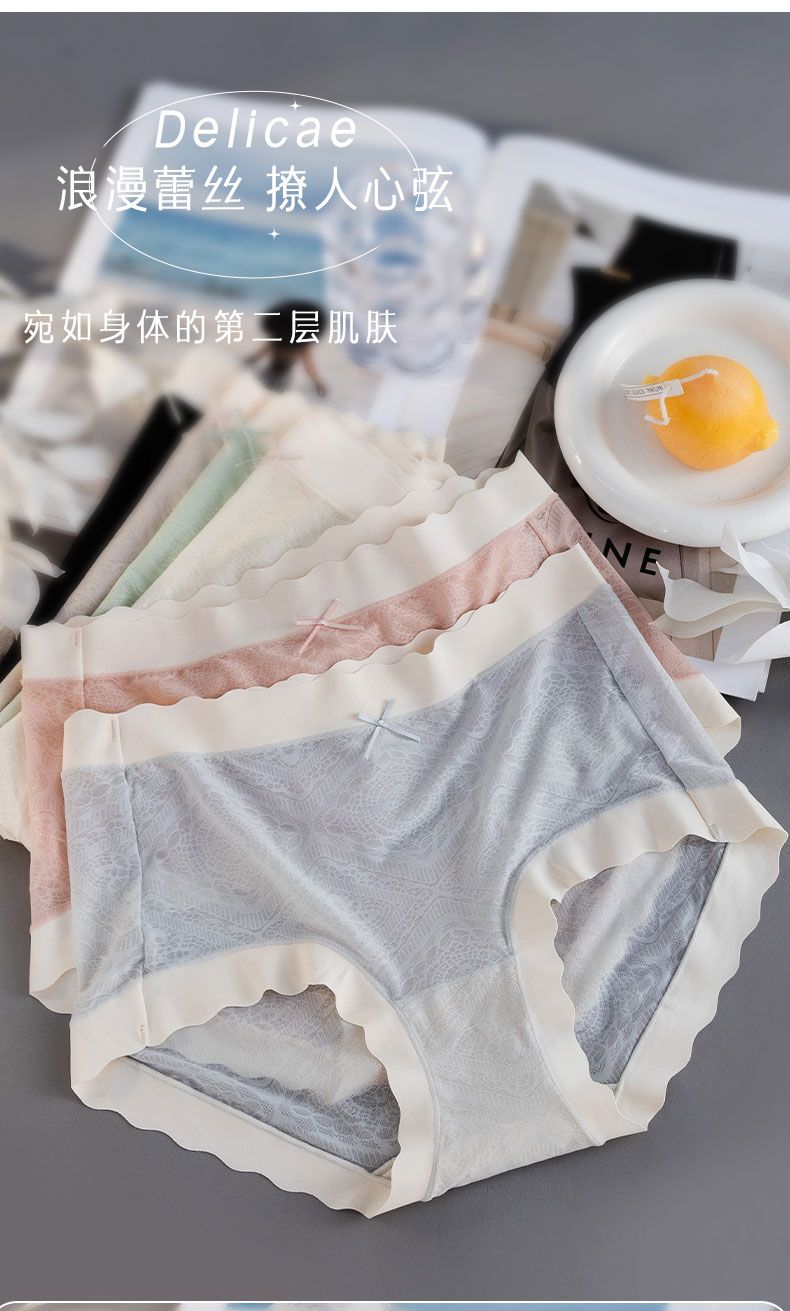 DD-浪漫春天冰丝内裤女裆无痕蕾丝性感大码青花瓷色系