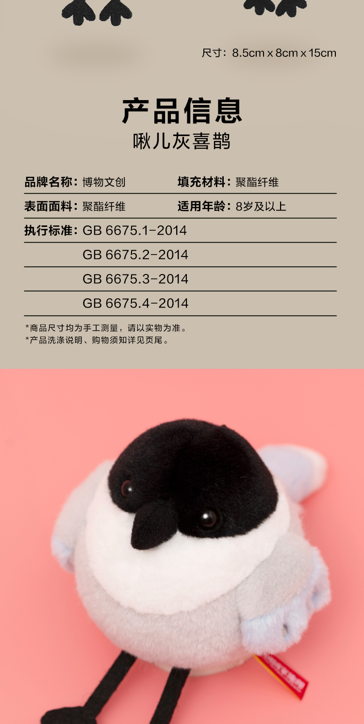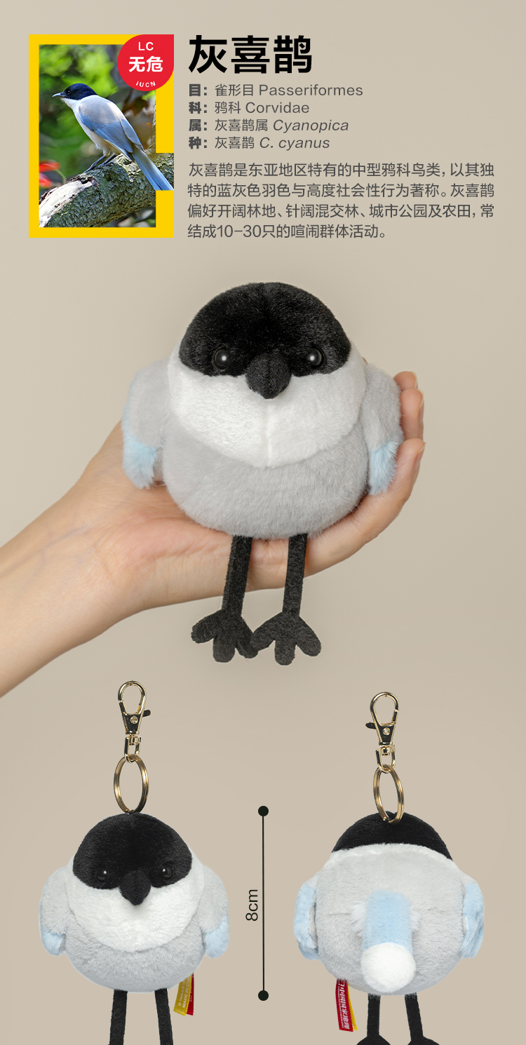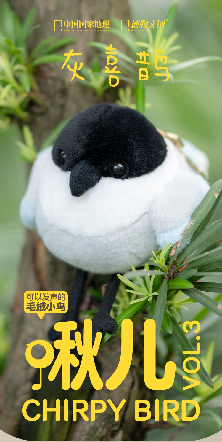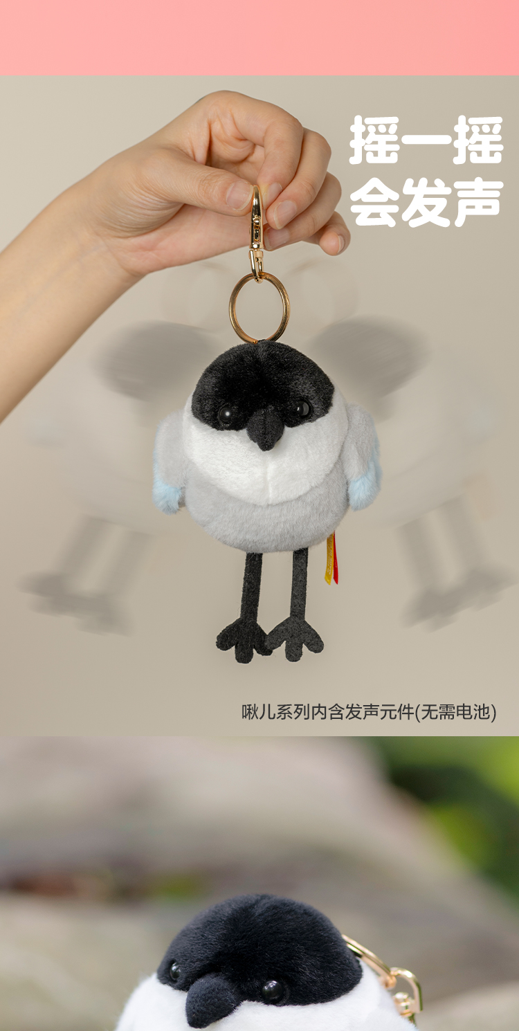 博物文创 啾儿系列第三弹 灰喜鹊 可发声小鸟球啾啾呆萌可爱节日礼物书包挂件