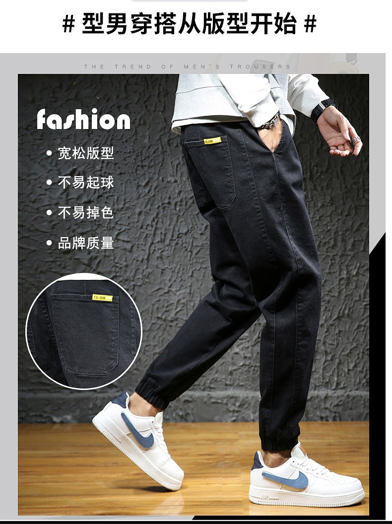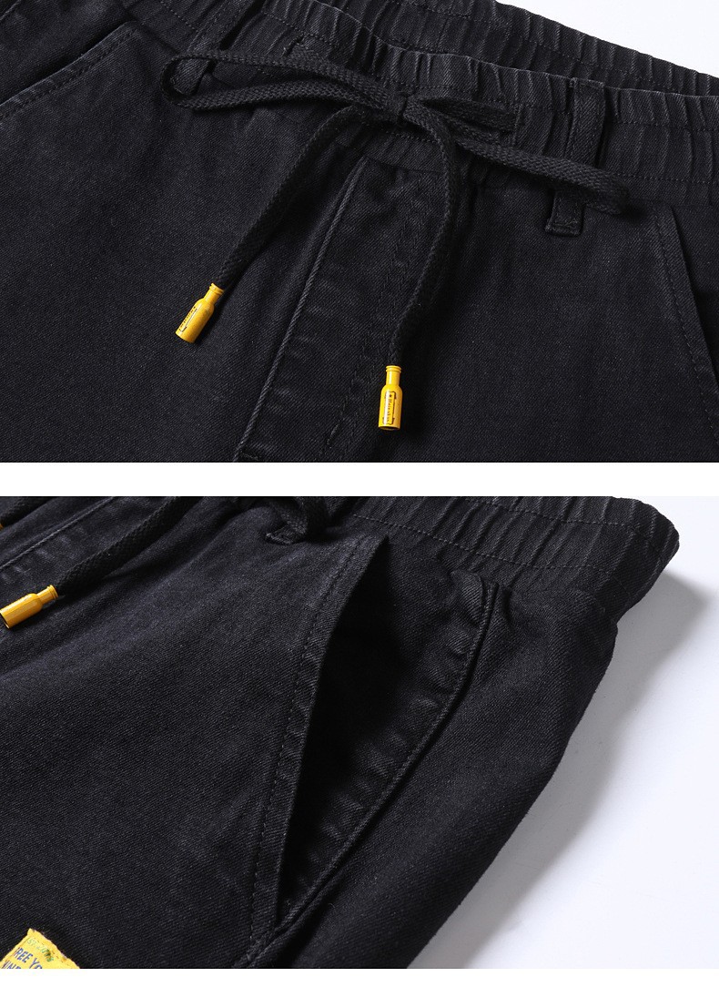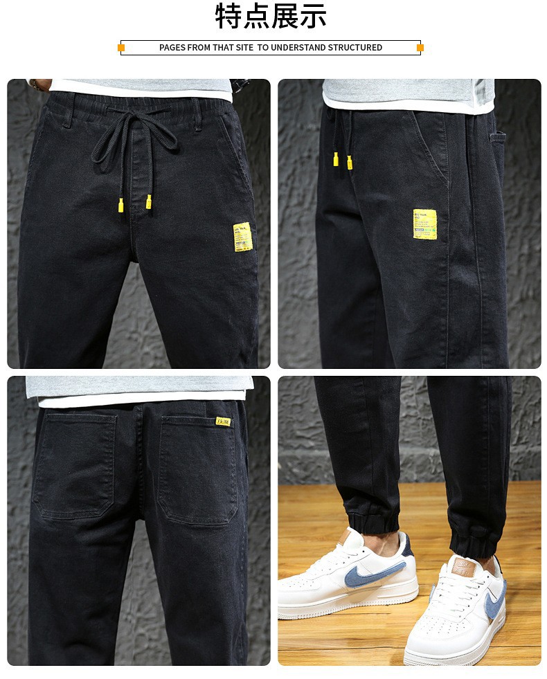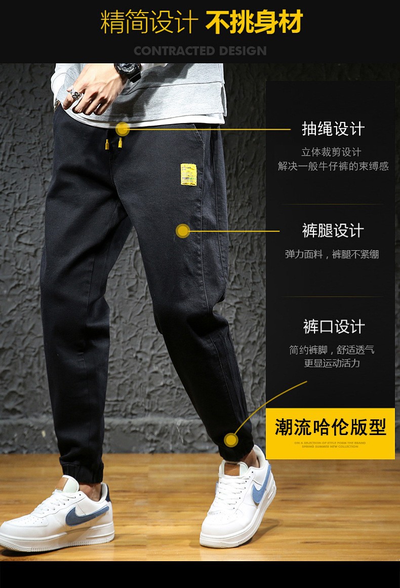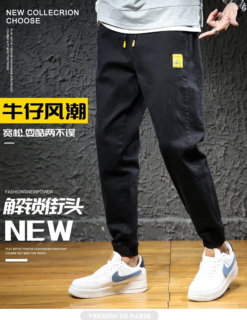 【DYG】大依优型大码男装松紧腰束脚牛仔裤加肥加大码哈伦裤子男士日系潮牌