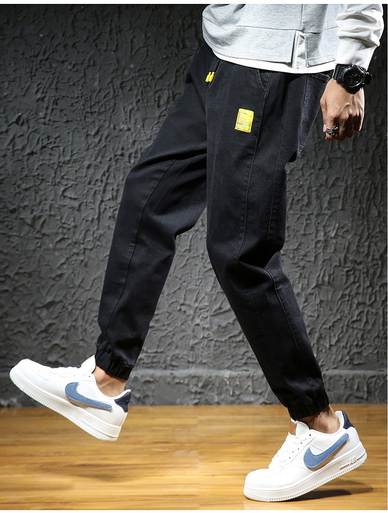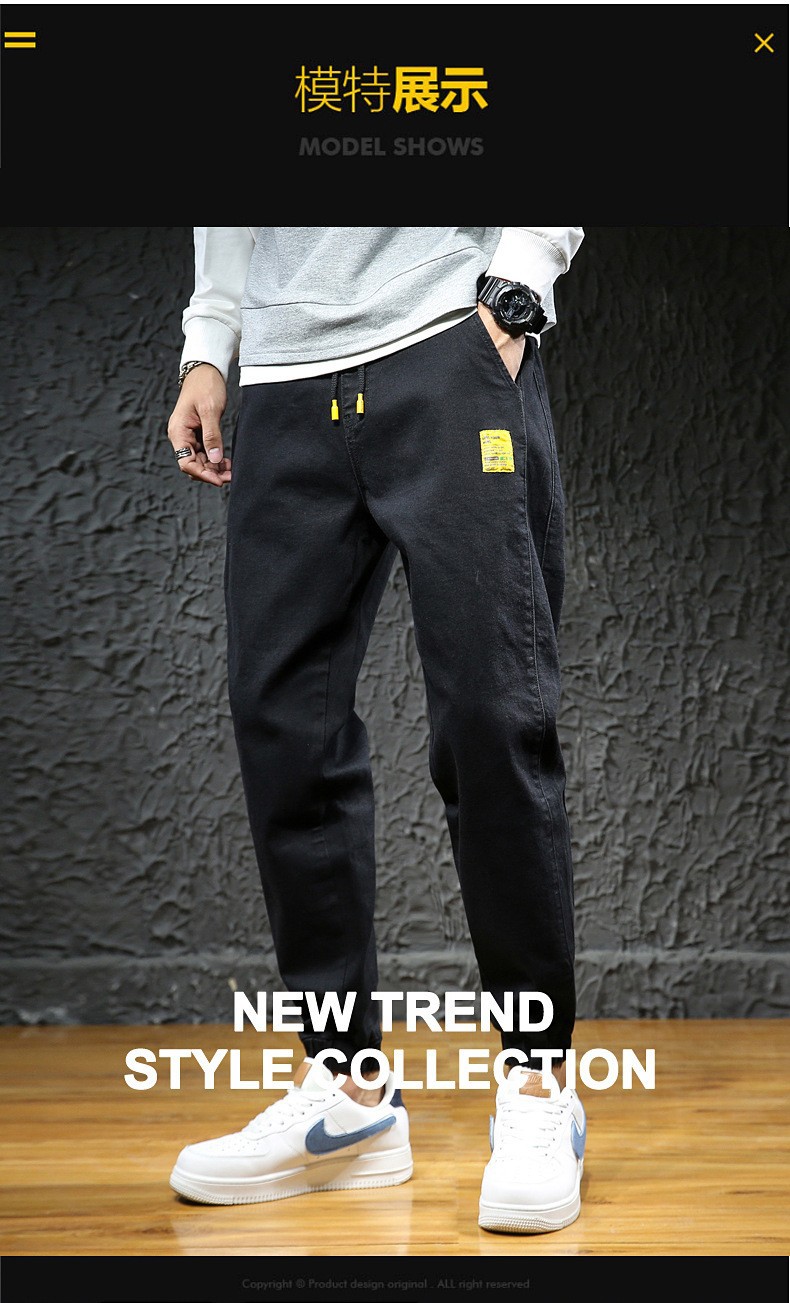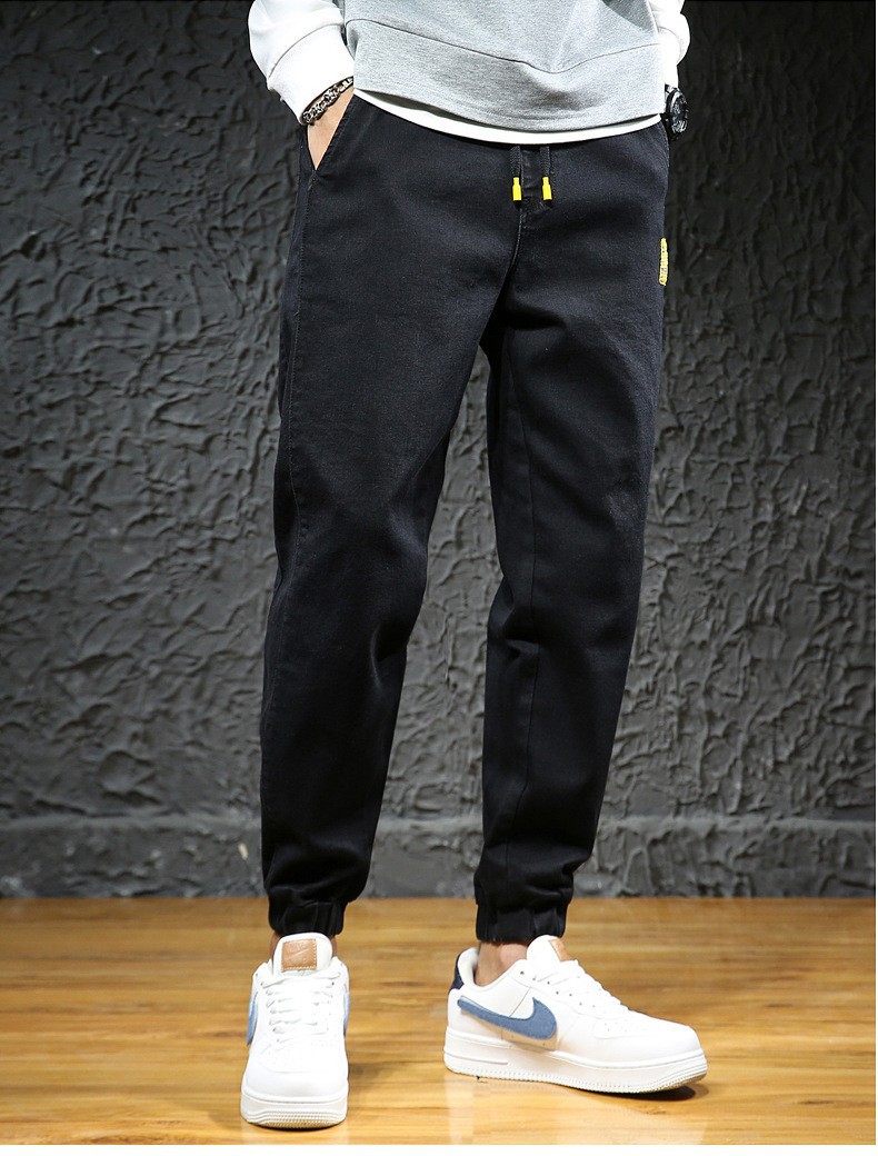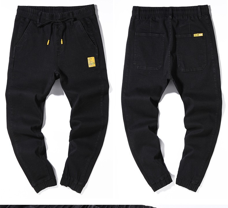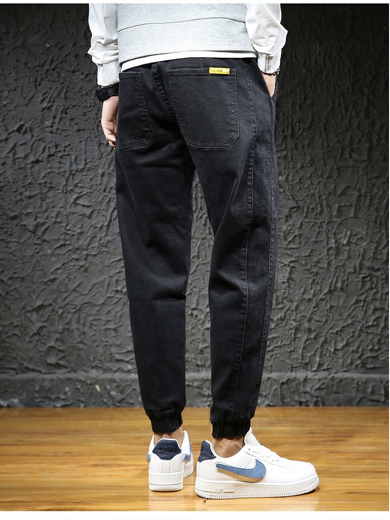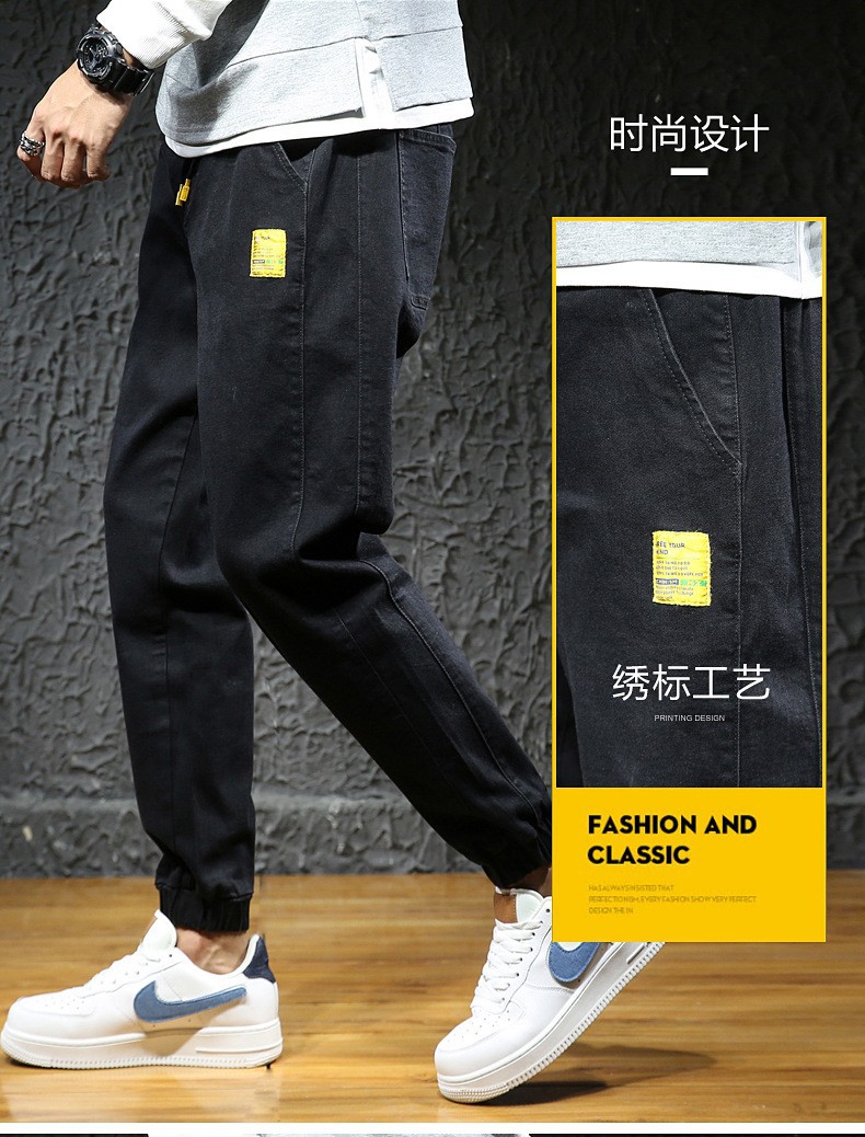 【DYG】大依优型大码男装松紧腰束脚牛仔裤加肥加大码哈伦裤子男士日系潮牌