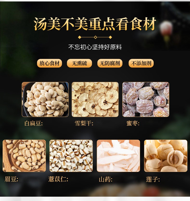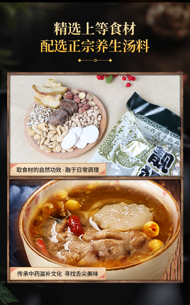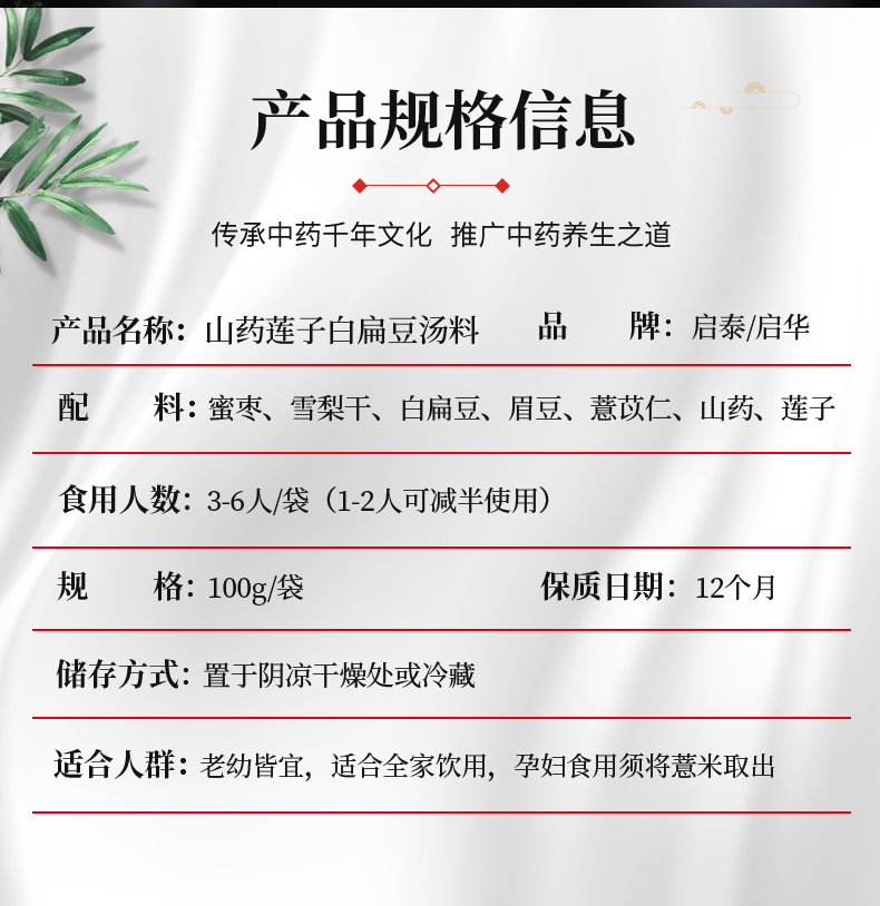 香港啟泰 山药莲子白扁豆料100g煲汤材料广式靓汤鸡汤料包 单袋装(3-6人食用)