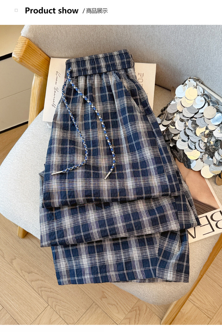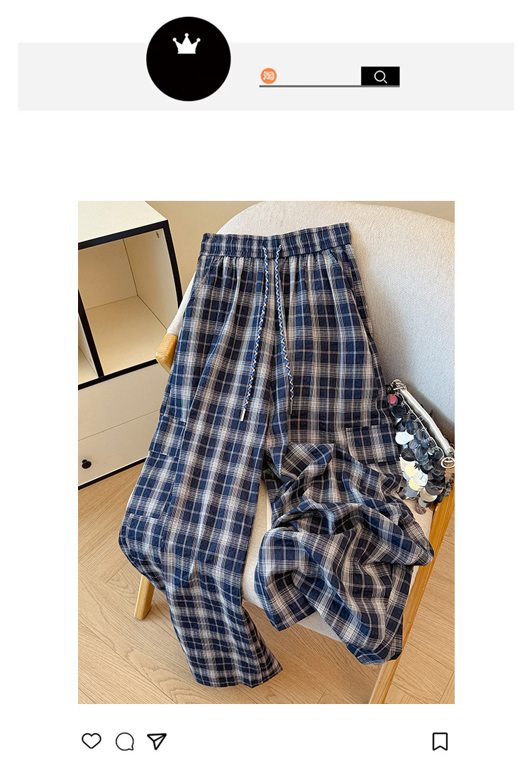 GYH 9363复古慵懒风格子裤宽松休闲显瘦遮垮阔腿裤