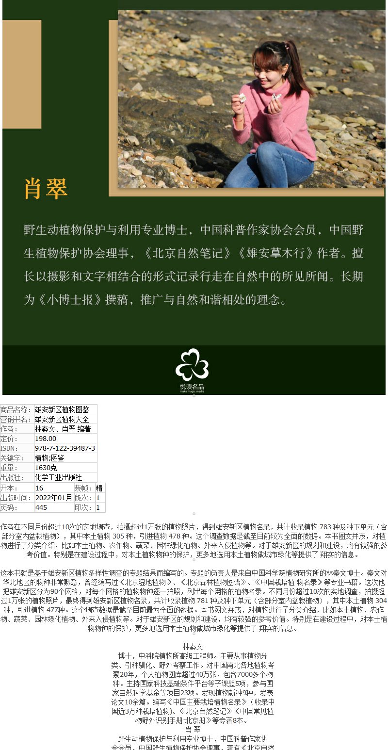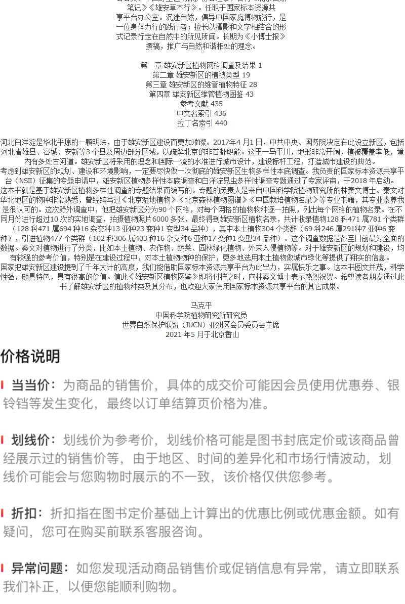 雄安新区植物图鉴 雄安新区植物大全 雄安新区植物名录 雄安新区植物多样性调查书籍 本土植物农作物蔬菜园林绿化植物外来入侵植物 化学工业出版社无 9787122394873