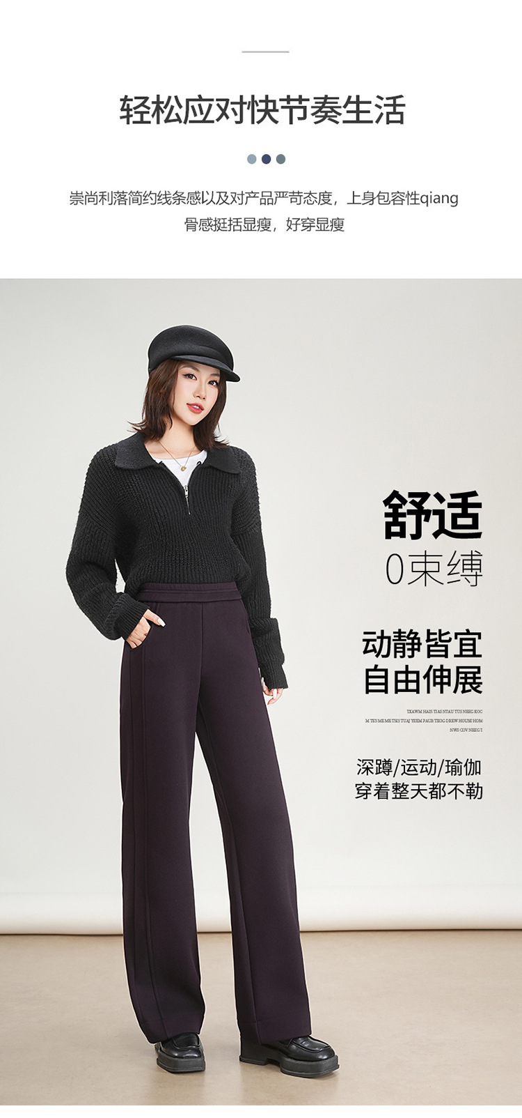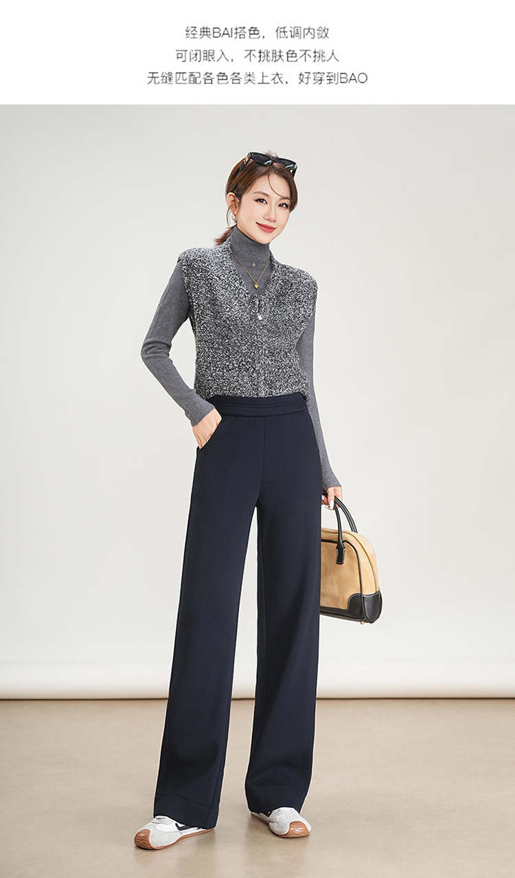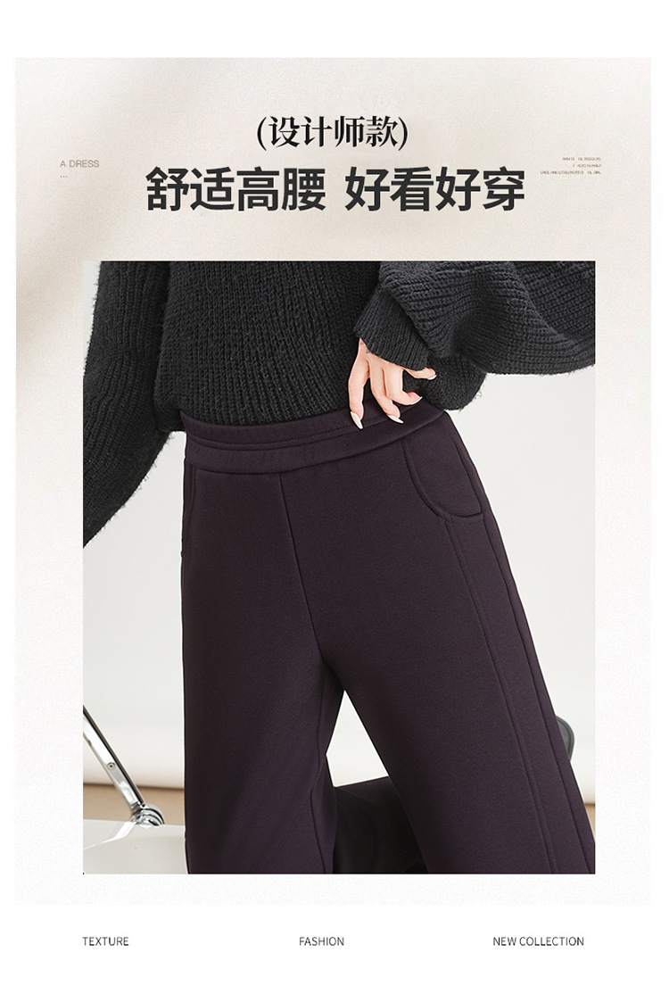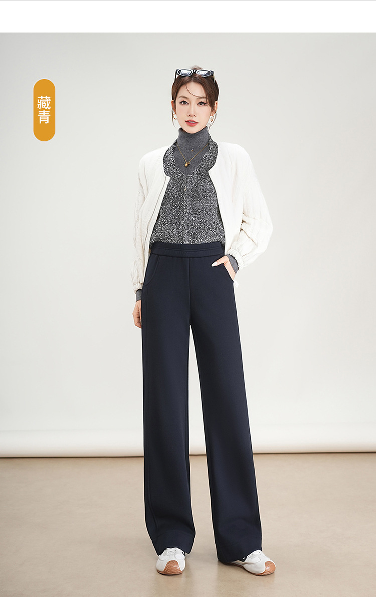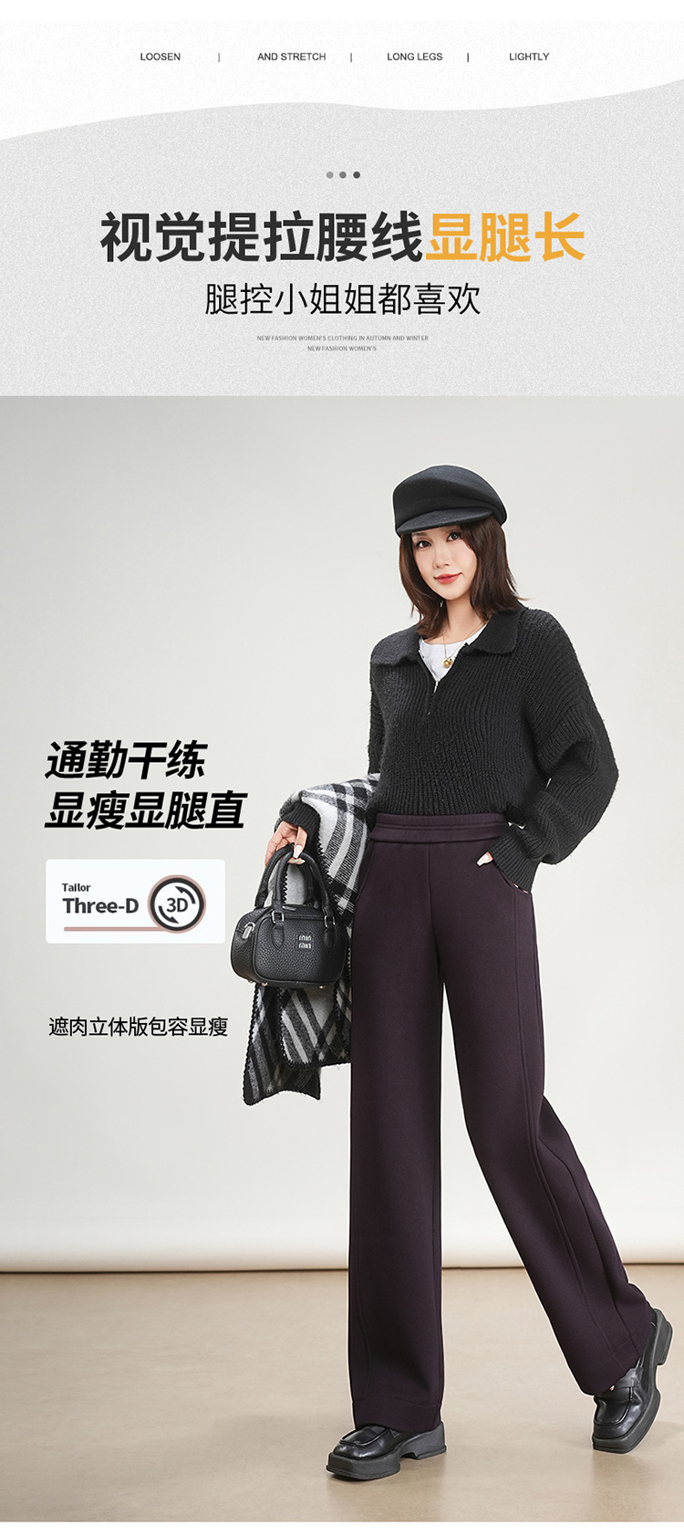 MYX垂坠感毛呢长款直筒裤松紧腰窄版修身阔腿裤2025年冬款洋气休闲裤