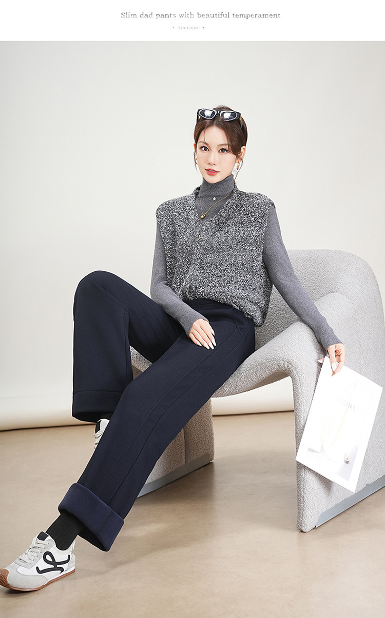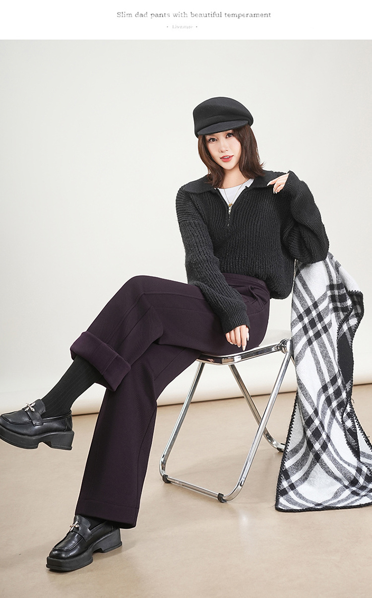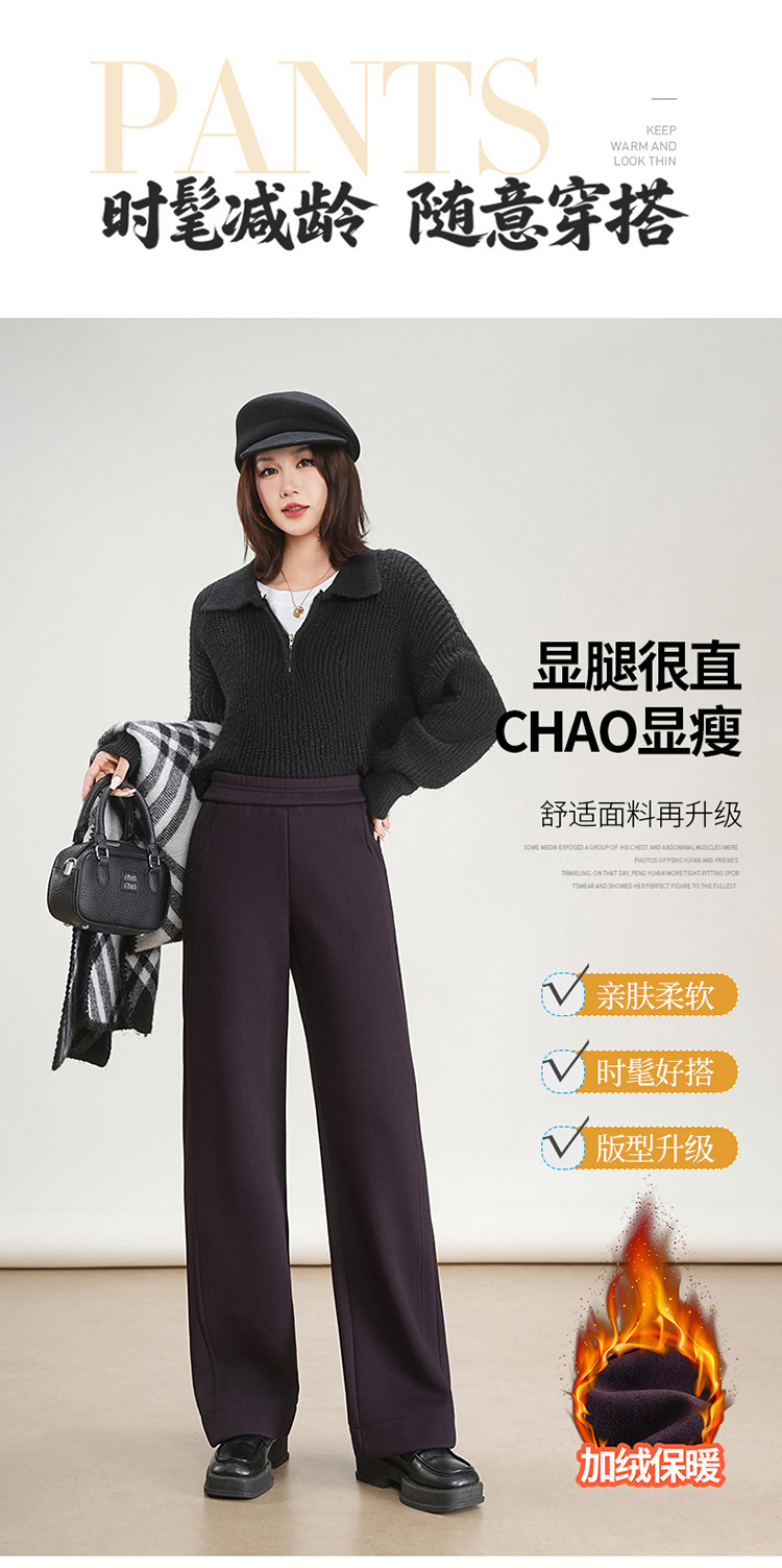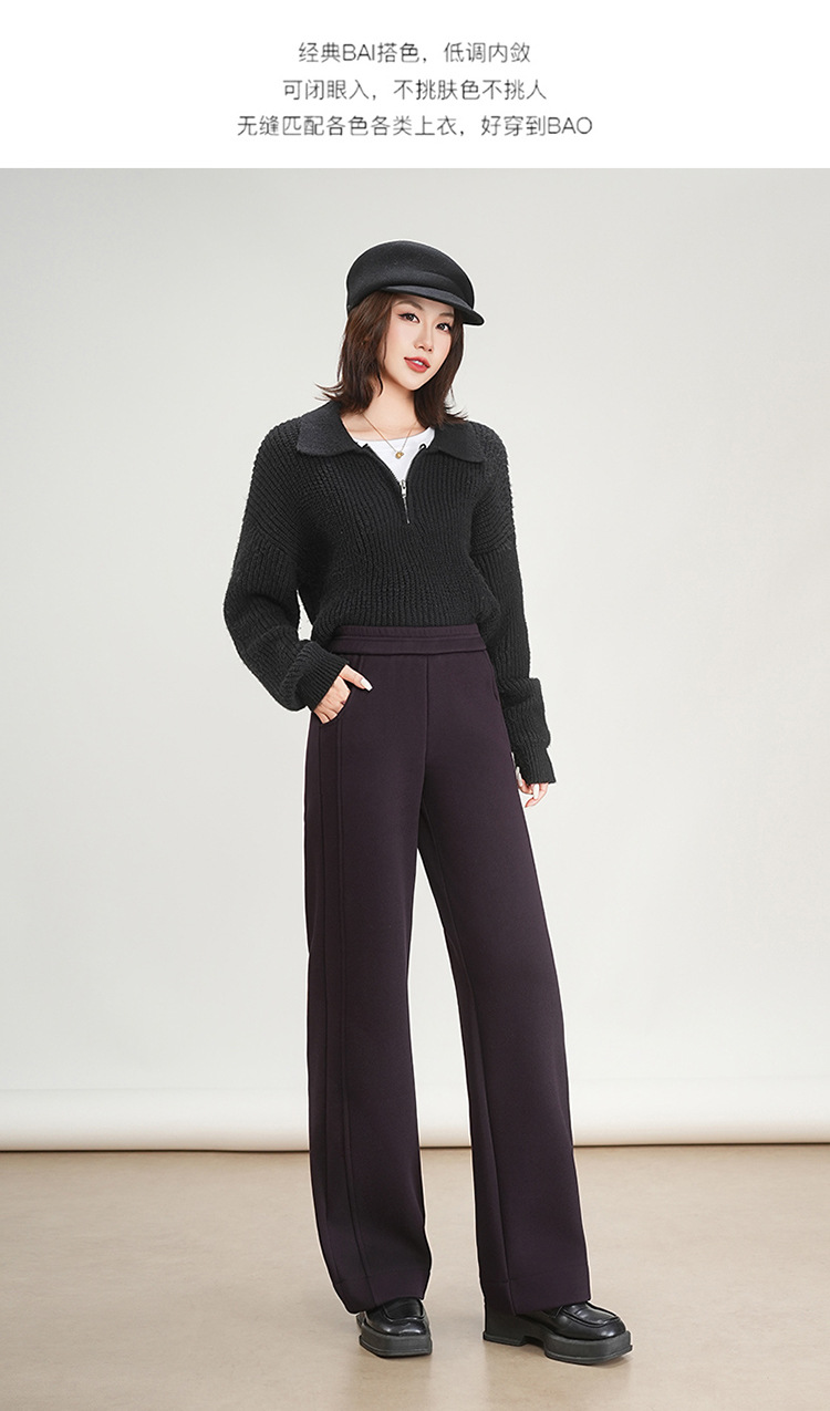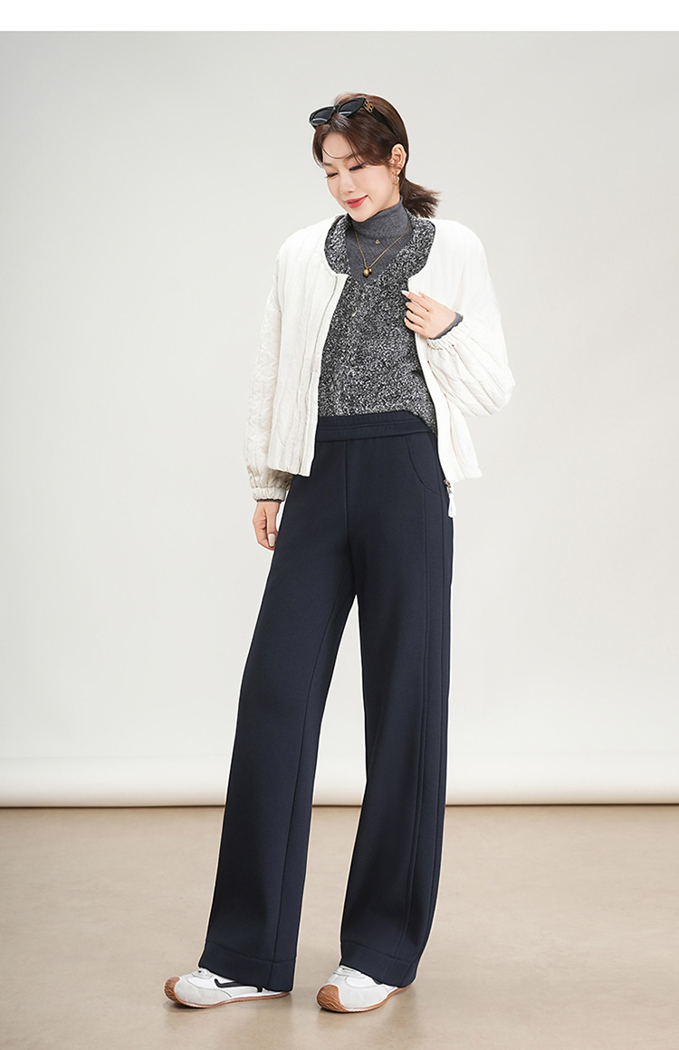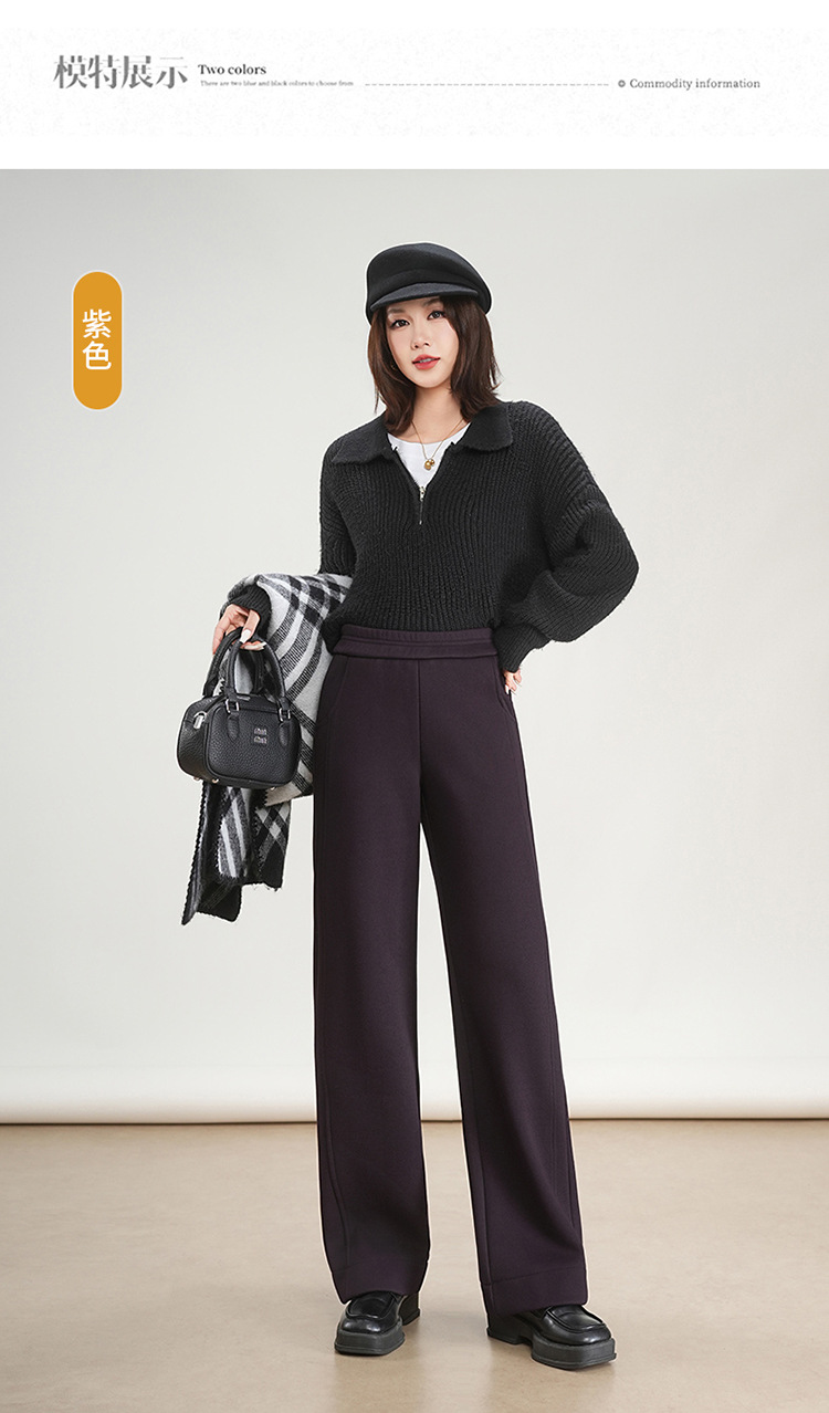 MYX垂坠感毛呢长款直筒裤松紧腰窄版修身阔腿裤2025年冬款洋气休闲裤