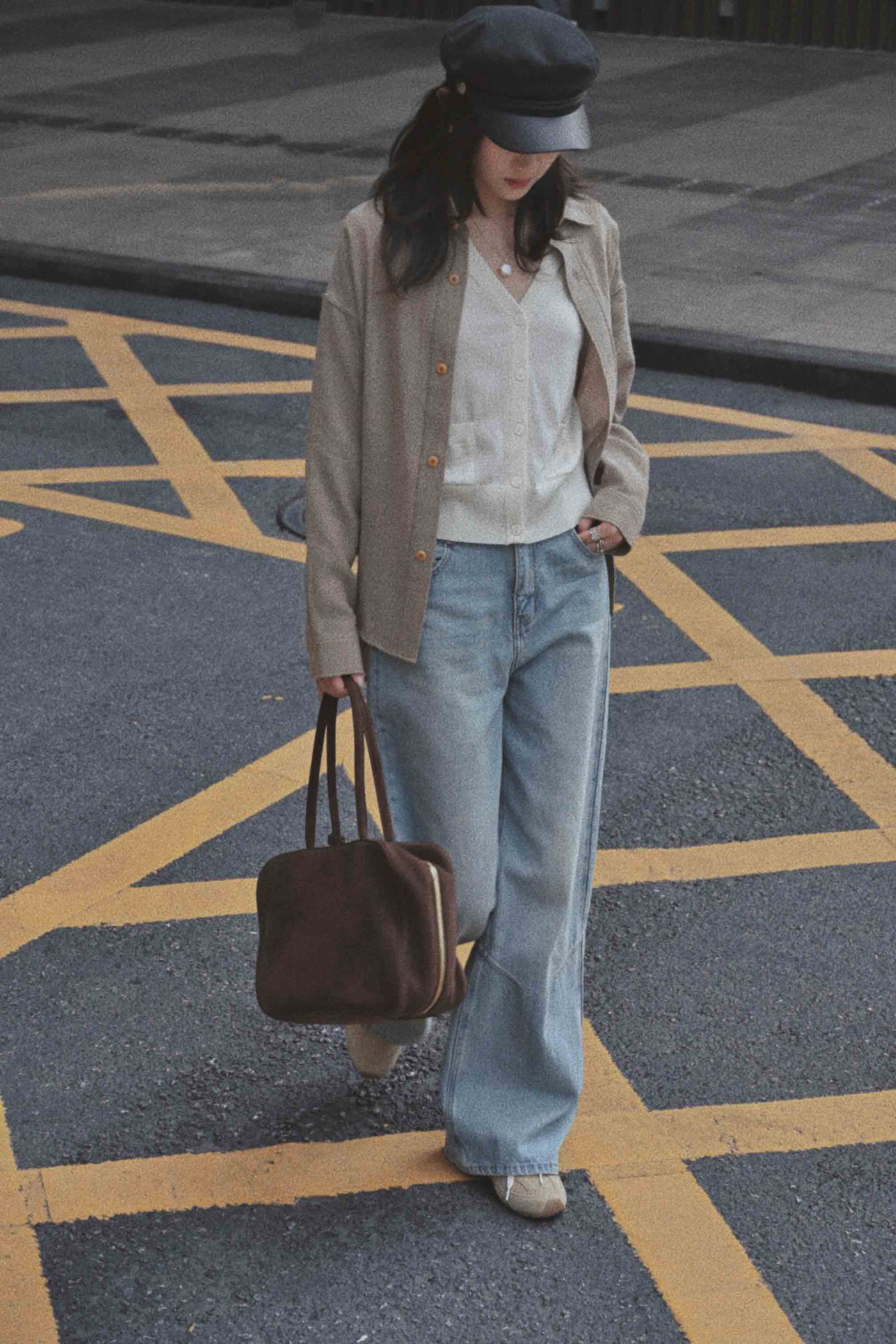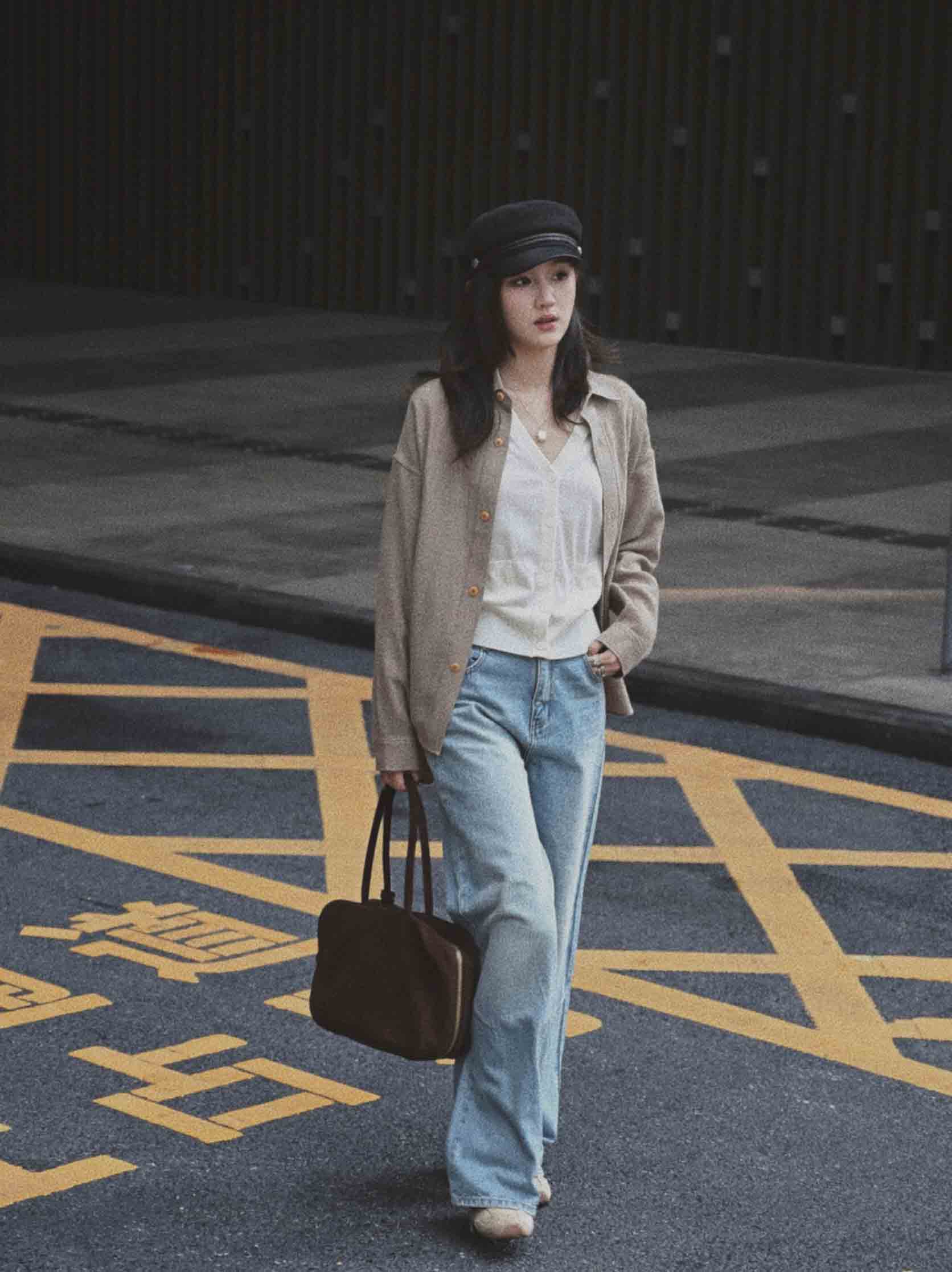 H版廓形+落肩袖的立裁工艺,慵懒中塑造线条,通勤又不失干练