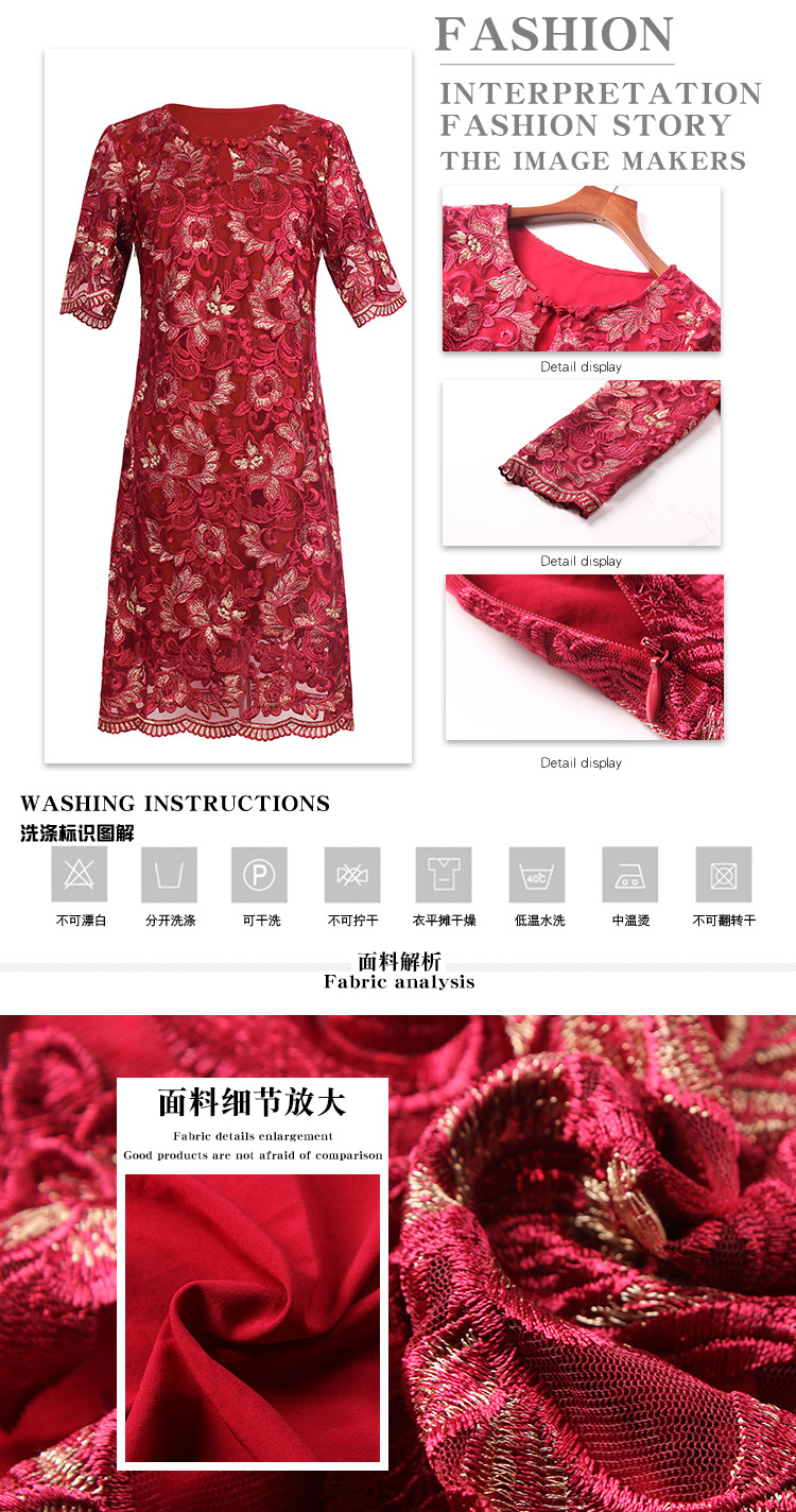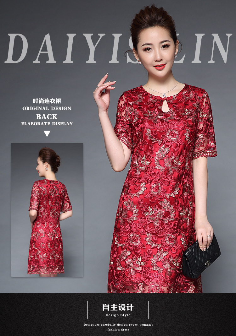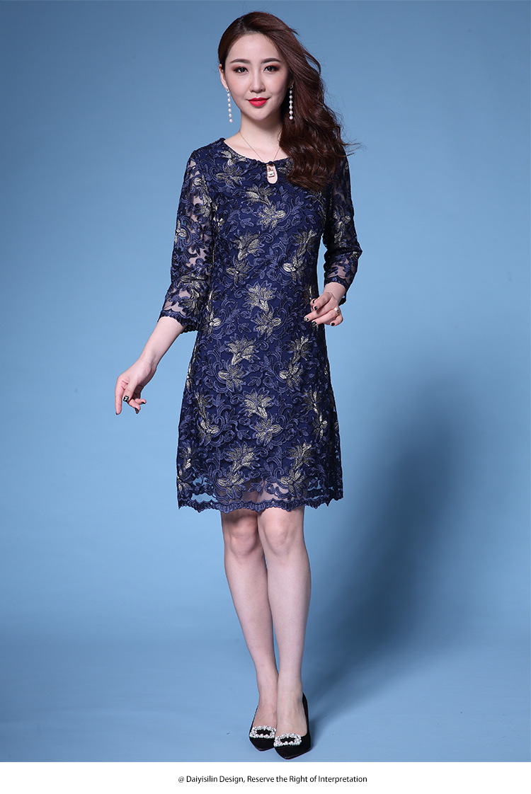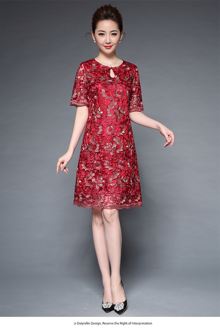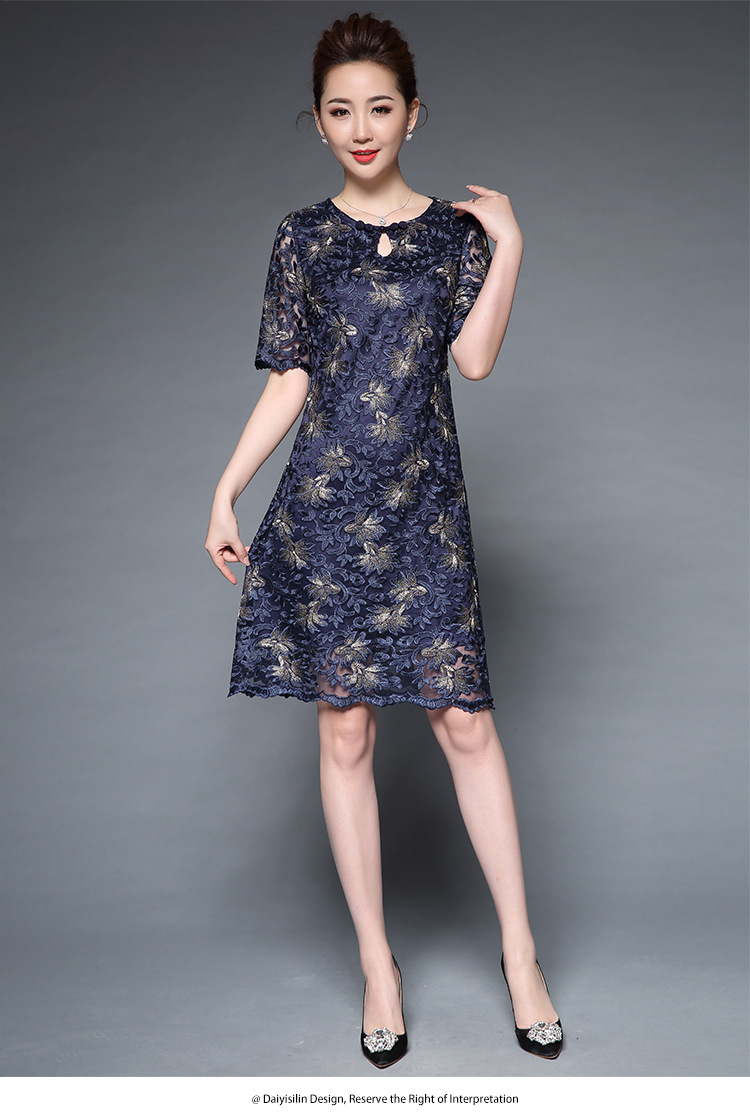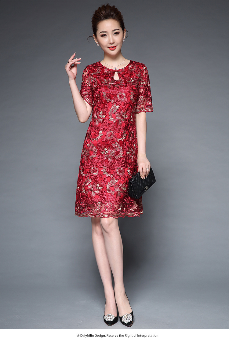 DYSL-Q3666新款下摆波浪边金丝绣花复古连衣裙TZW