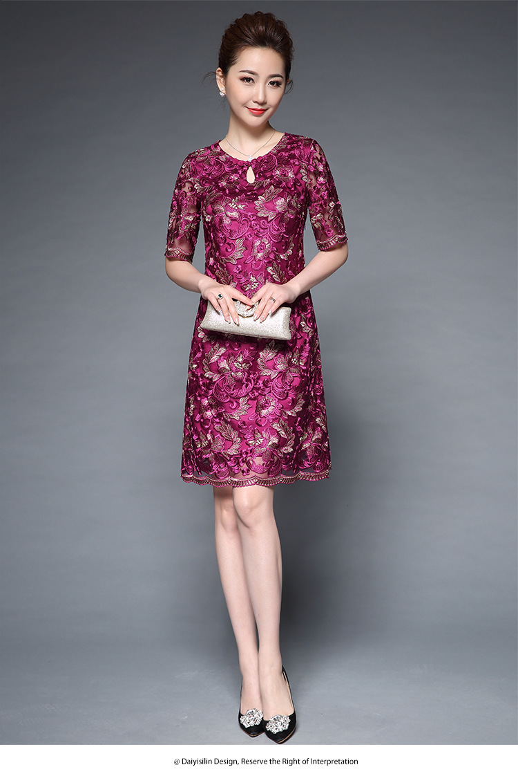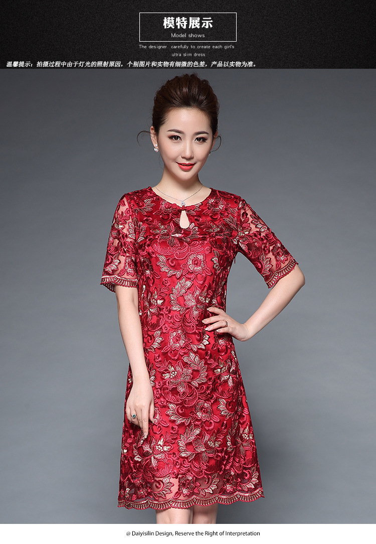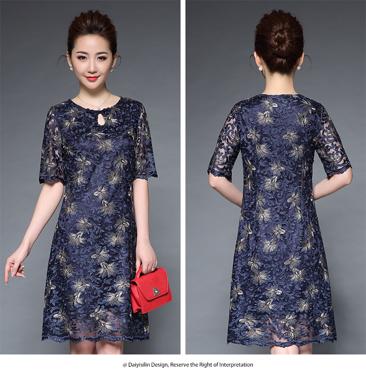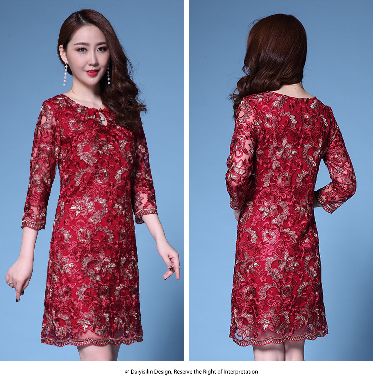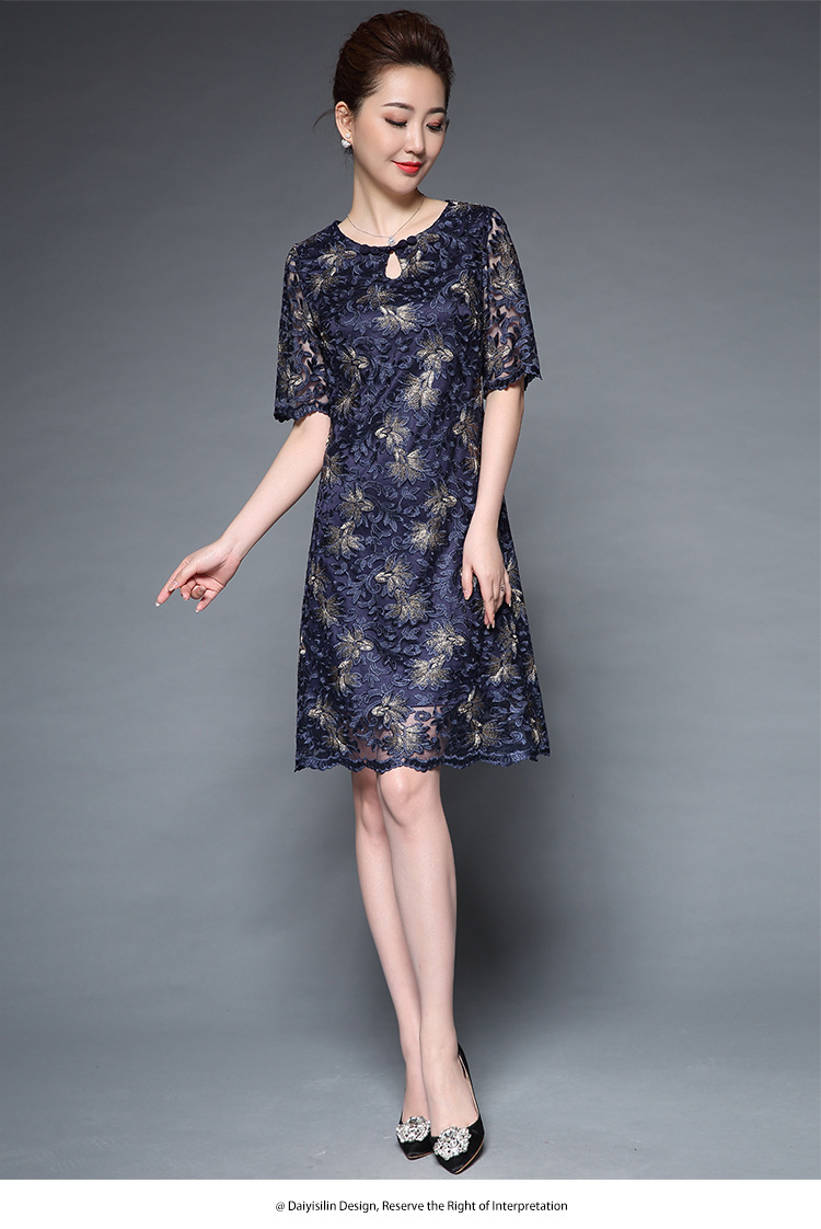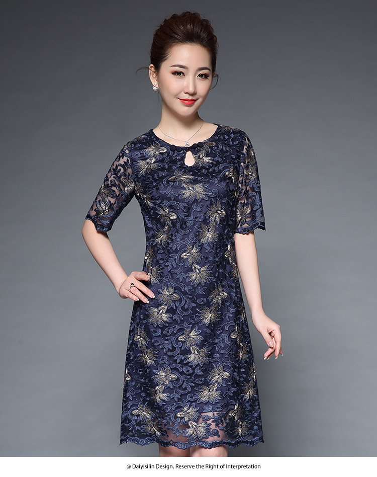 DYSL-Q3666新款下摆波浪边金丝绣花复古连衣裙TZW