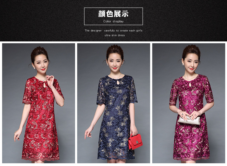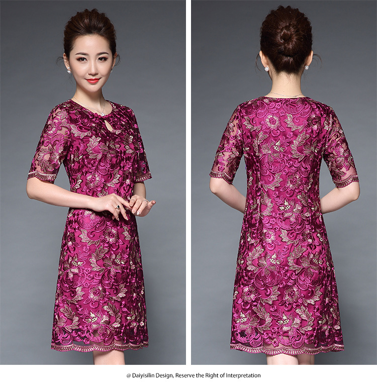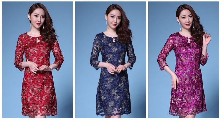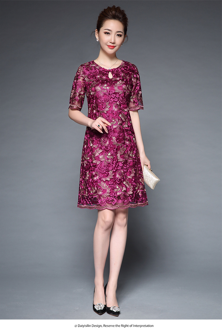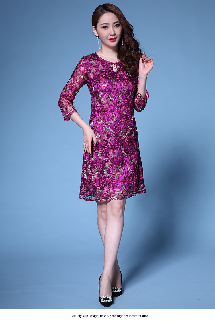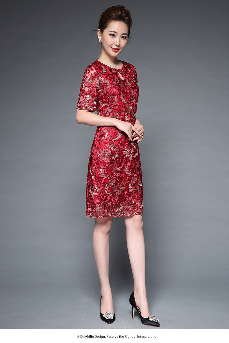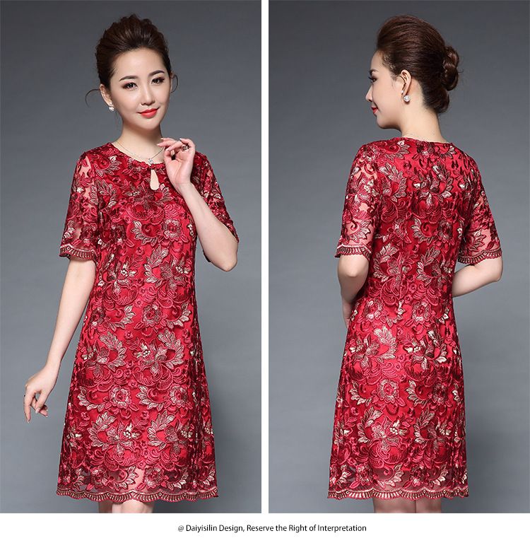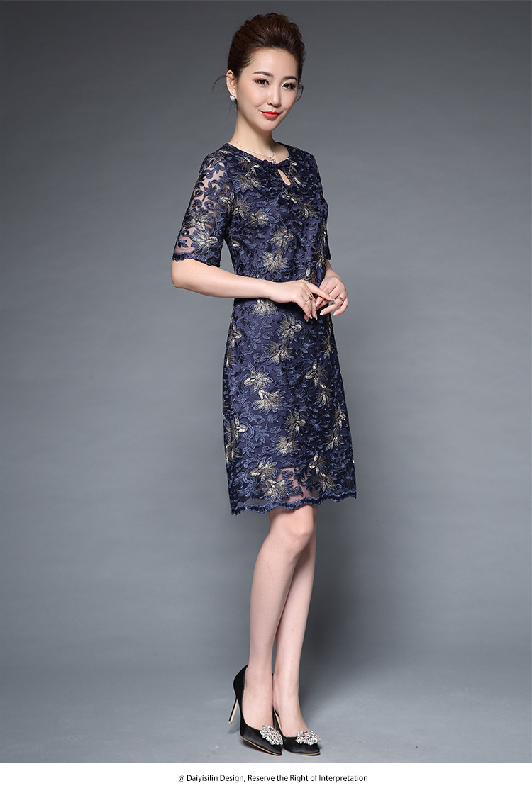 DYSL-Q3666新款下摆波浪边金丝绣花复古连衣裙TZW