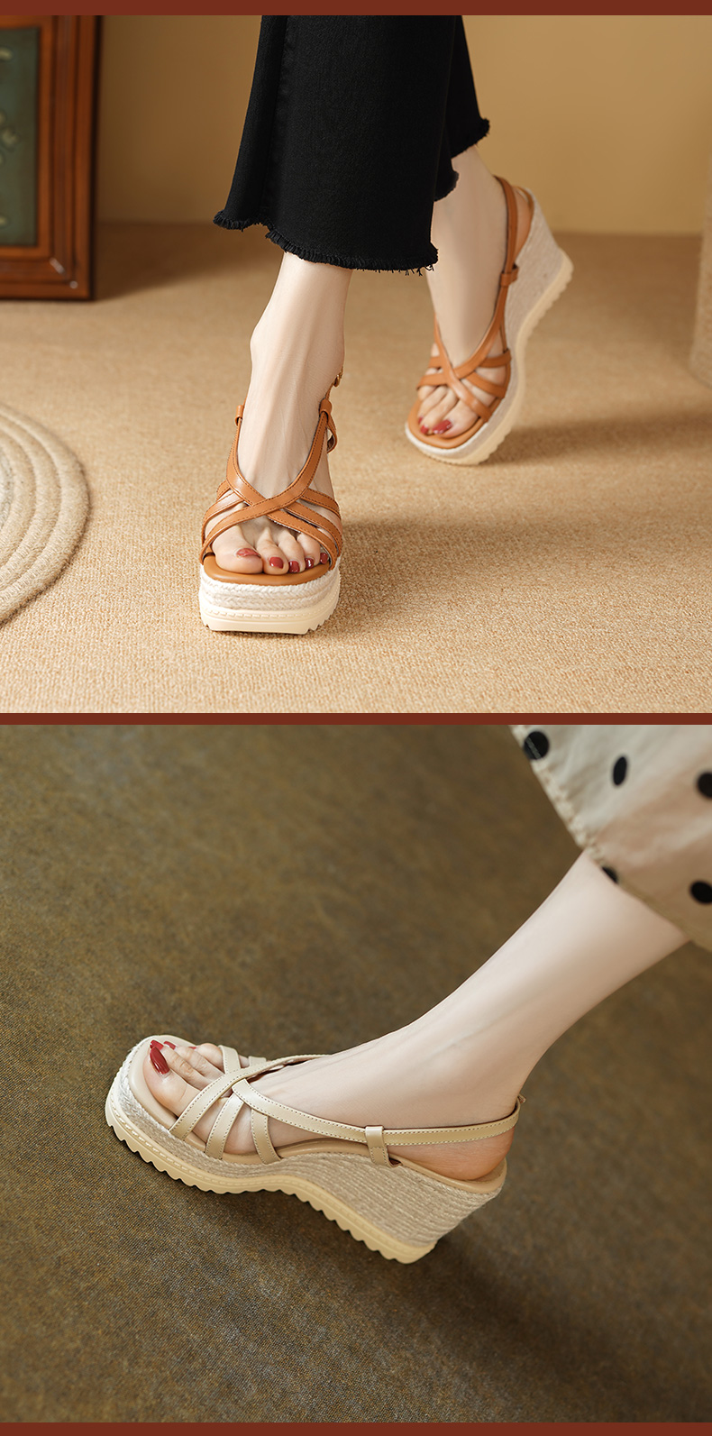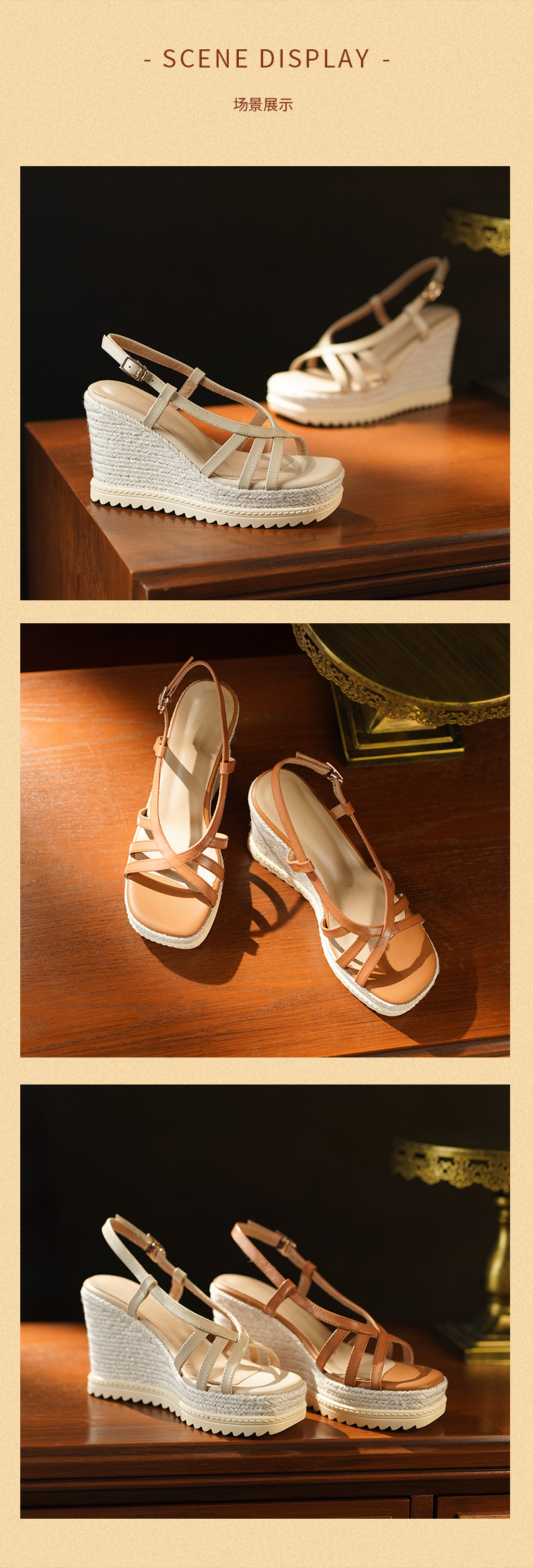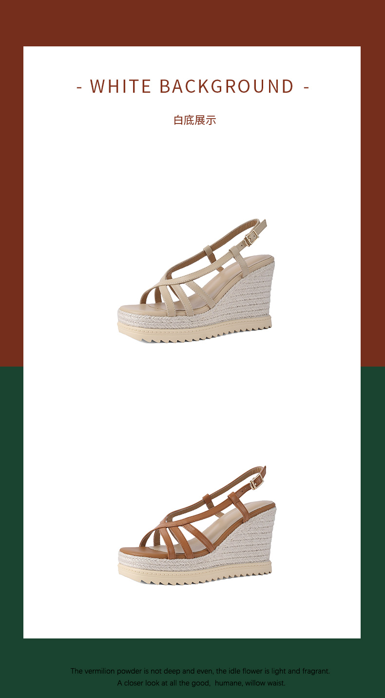 时尚波西米亚风,草编坡跟麻底内外头层真皮高跟凉鞋YDE-D191