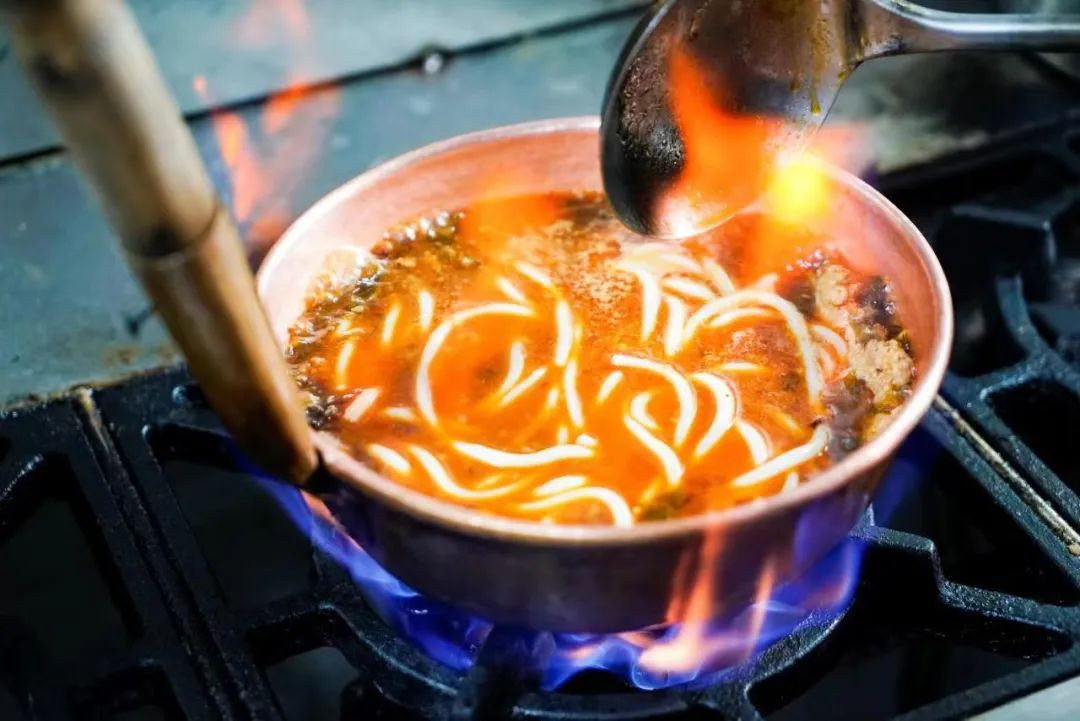 小锅米线的特色在锅上,用红铜制成的小锅与碗差不多大,利用铜的强导热性,能最大程度锁住米线的口感和配菜的新鲜度。