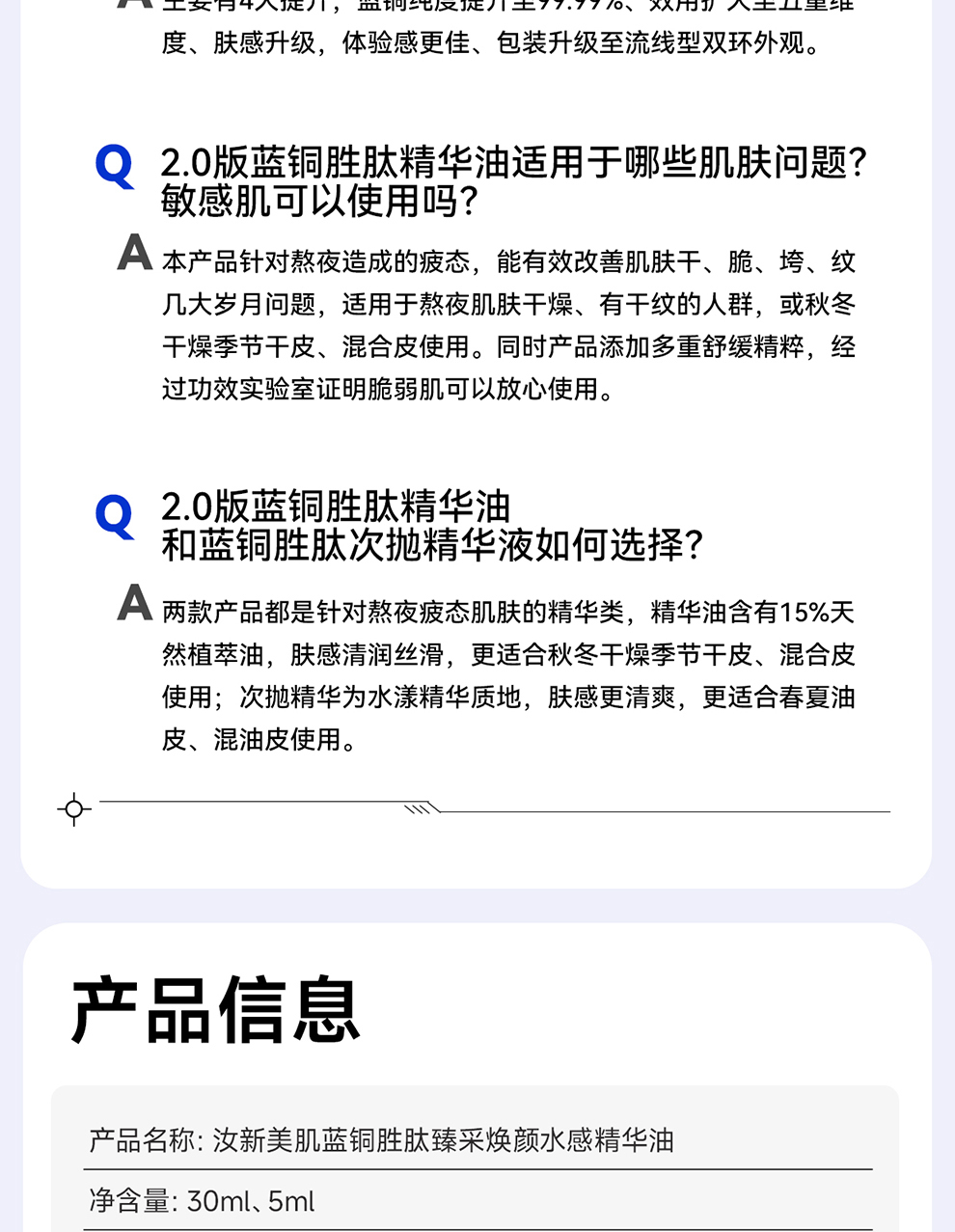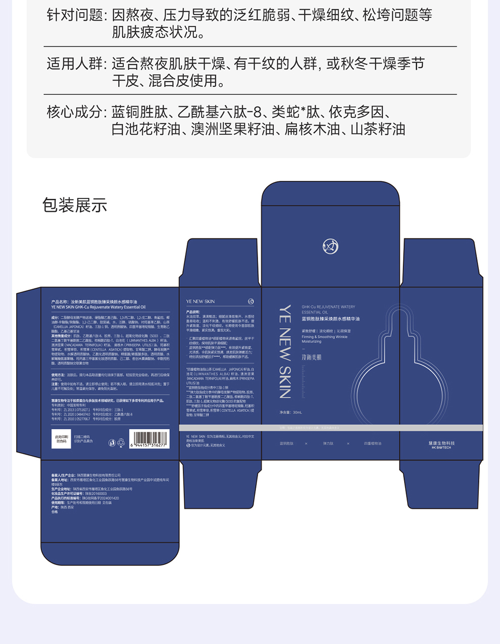 汝新美肌蓝铜胜肽臻采焕颜水感精华油30ml
