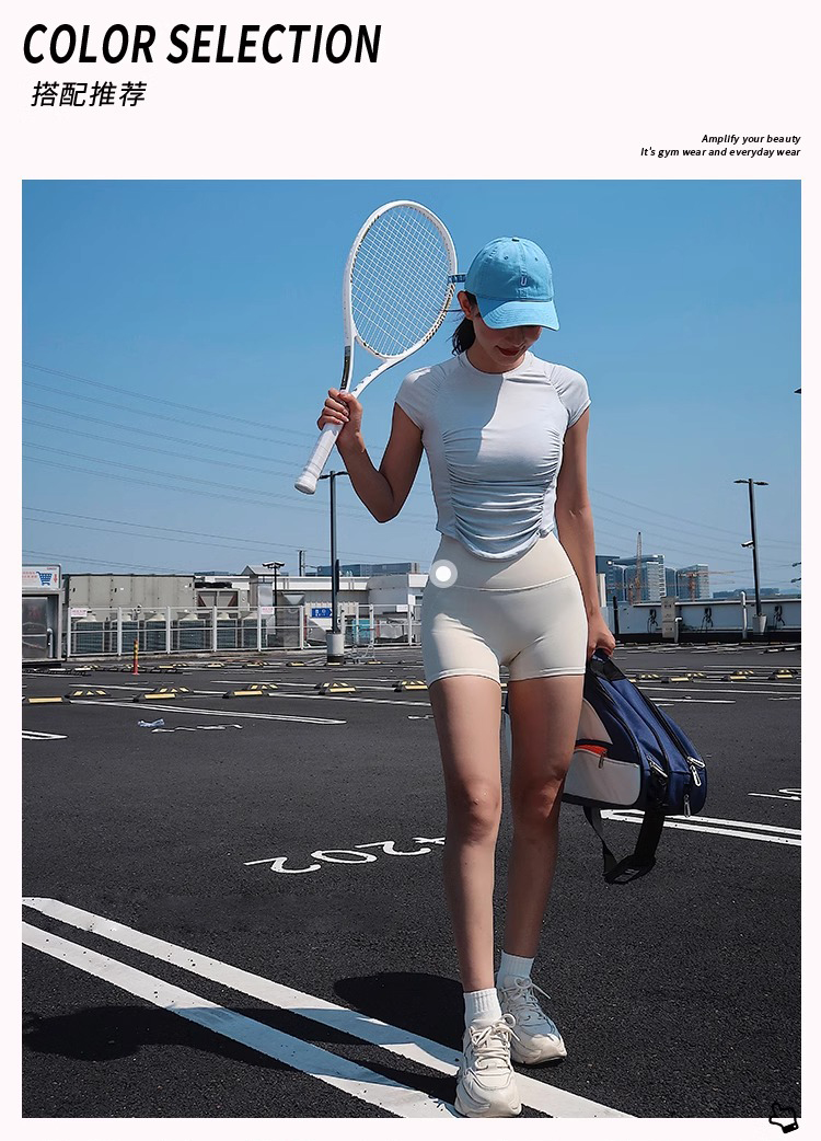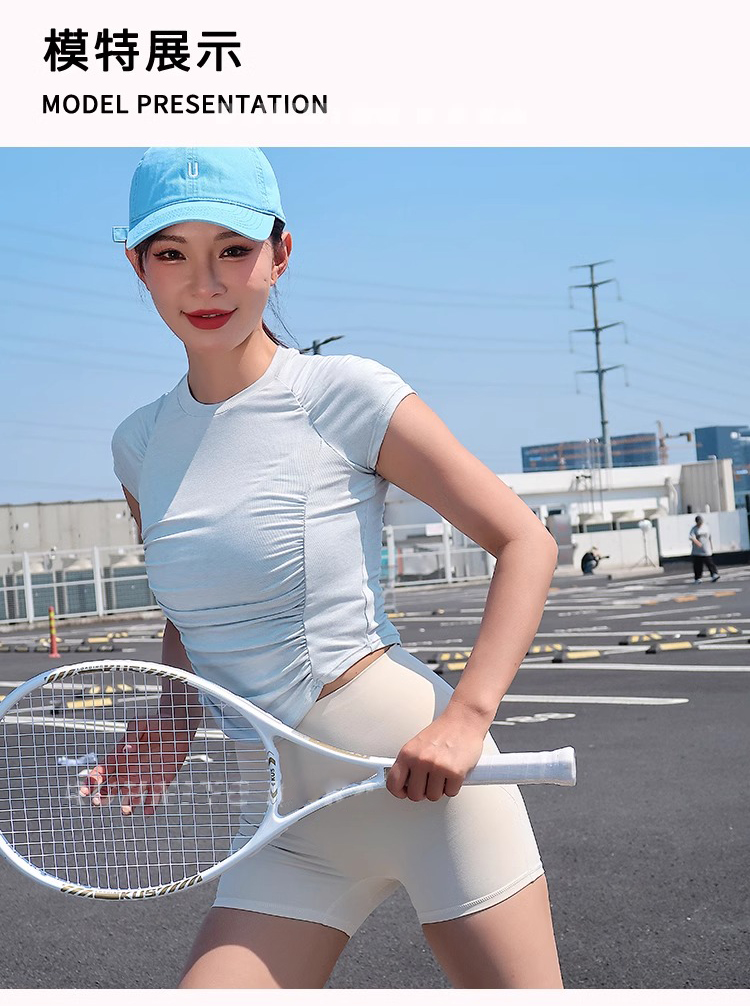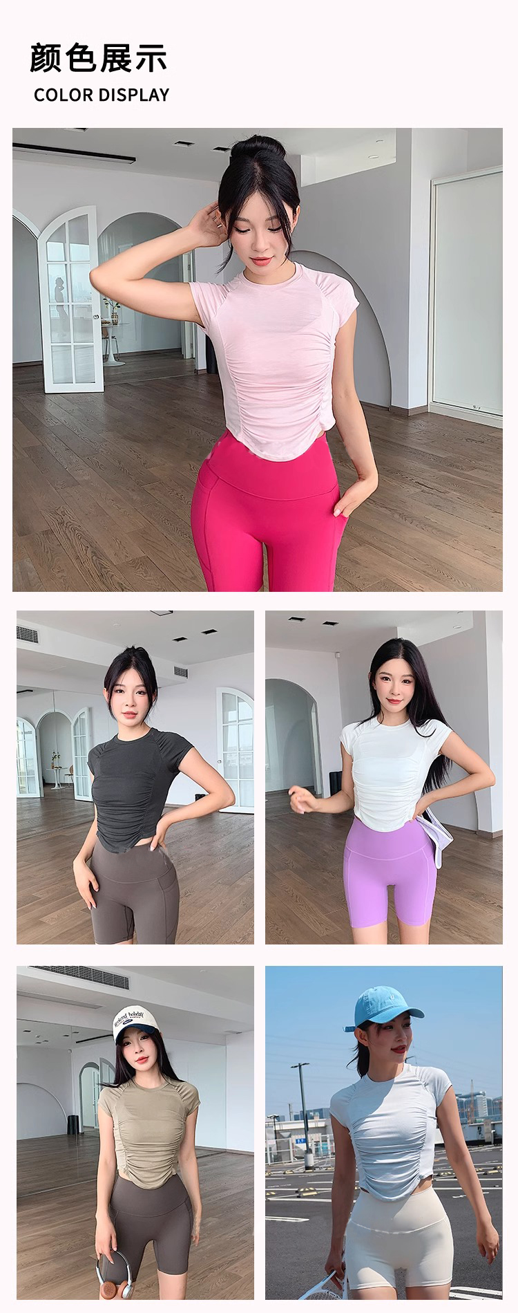 跃牌【禅语梵心】透气速干运动上衣女缩褶短袖T恤DX2803