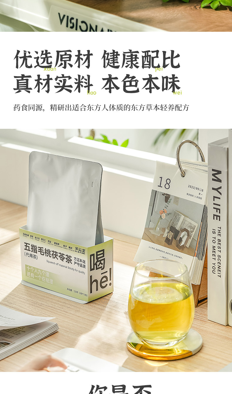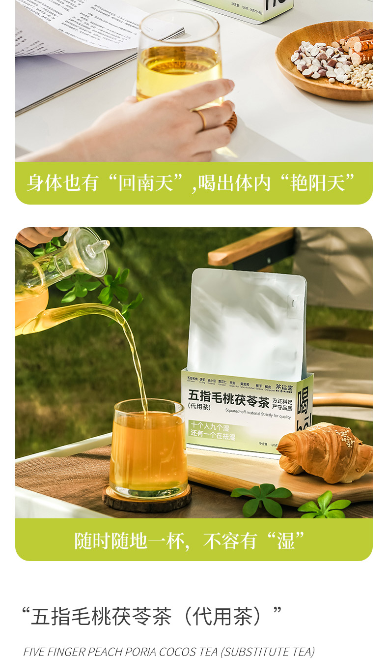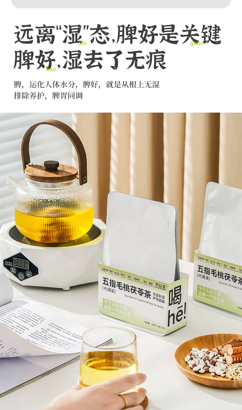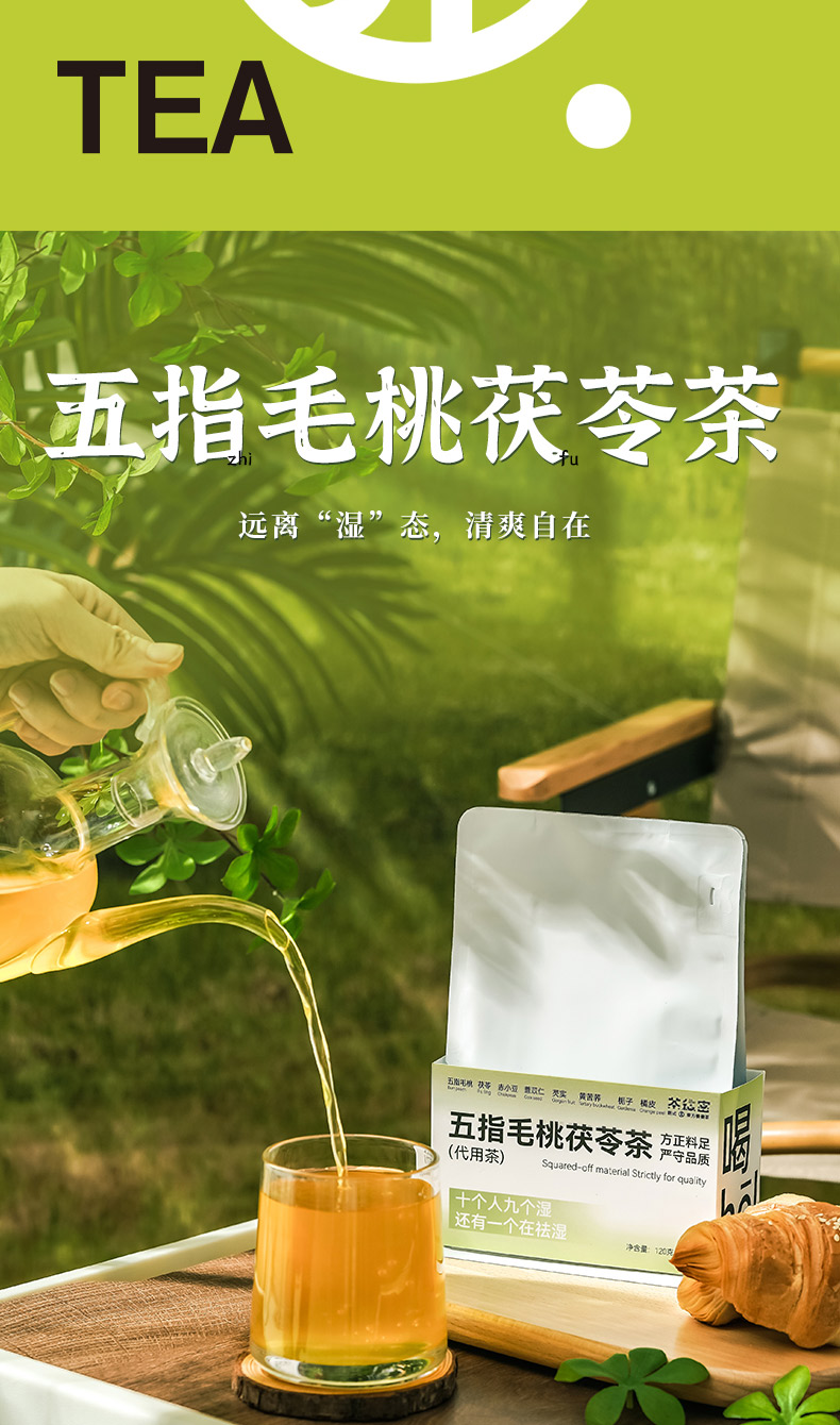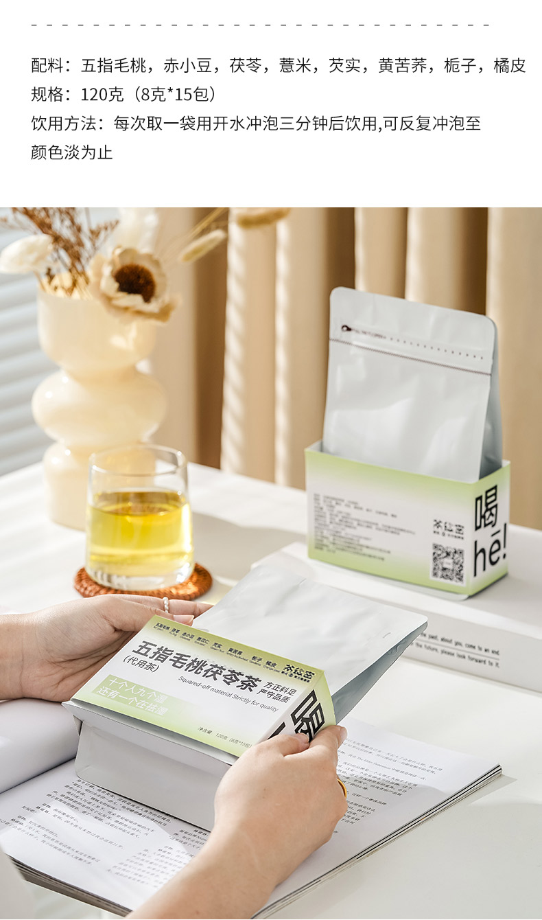 茶秘密 五指毛桃茯苓养养茶 8克*15包 I 7味排湿草本 一杯轻盈舒畅 即泡即饮 居家/办公室常备