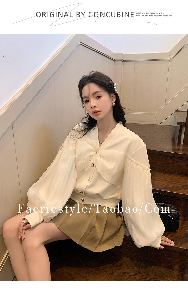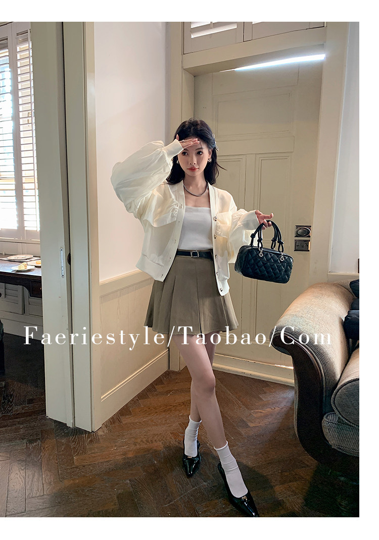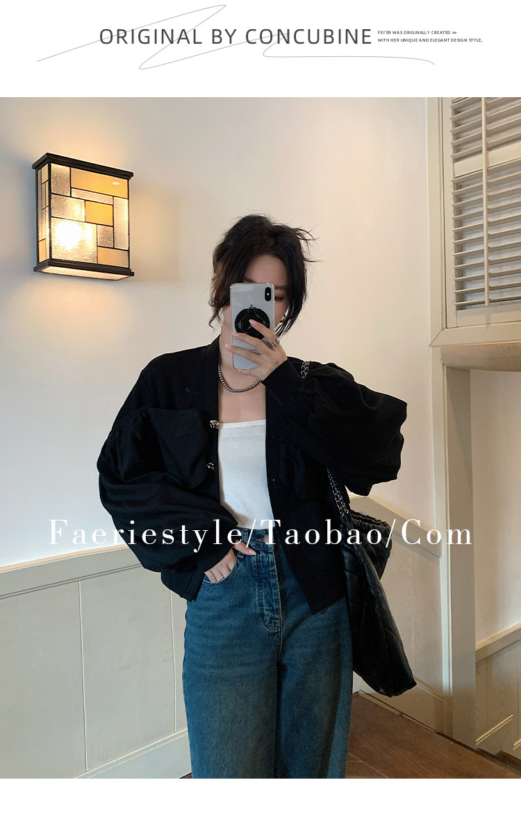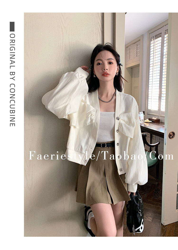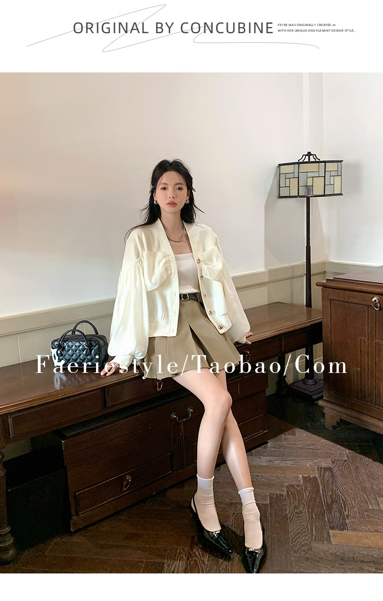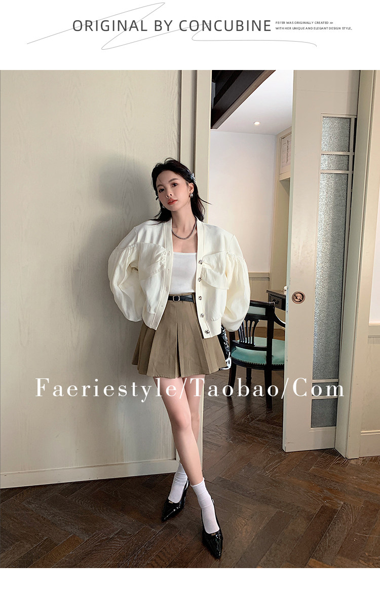 【设计师定制款】2928小香风外套女白色短款针织拼接泡泡袖V领高级感气质别致上衣-喜出