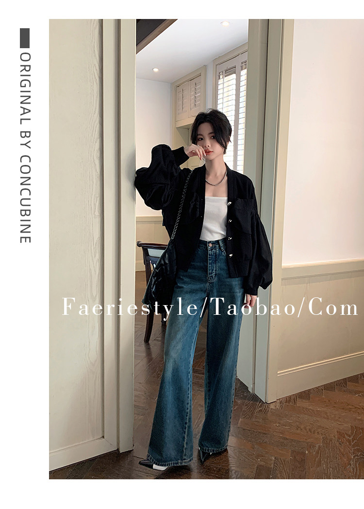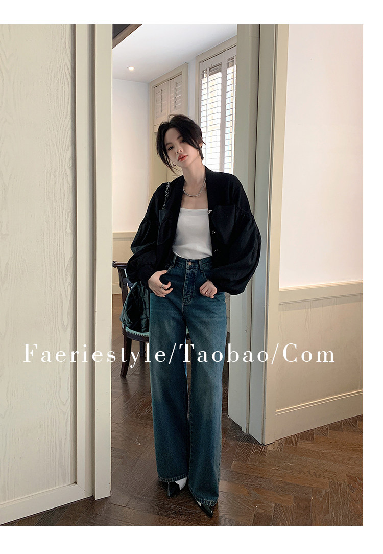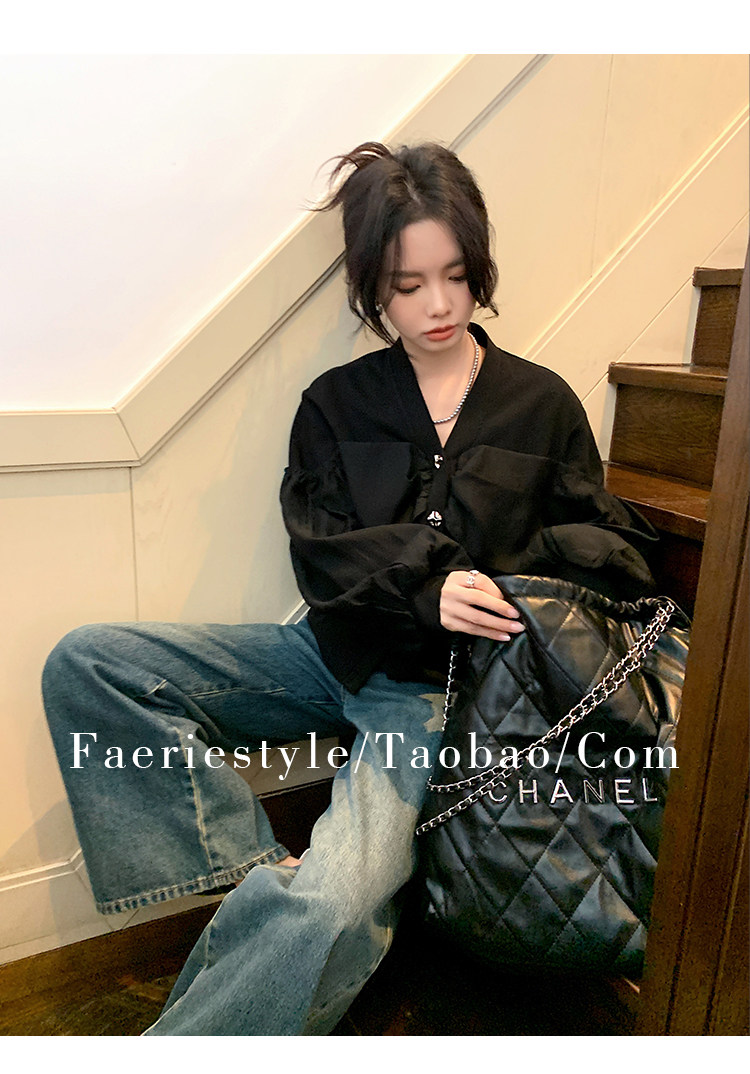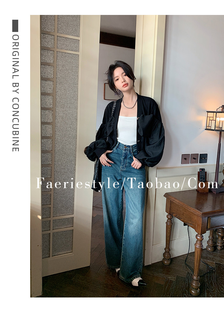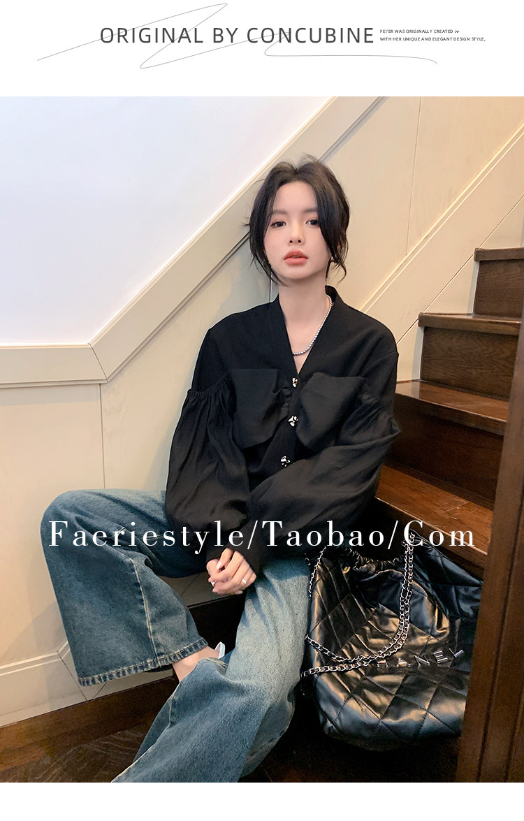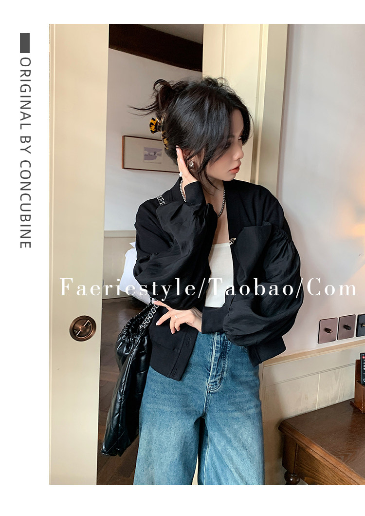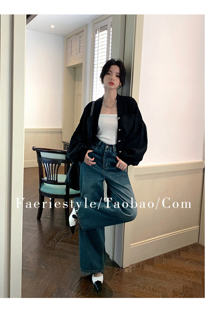 【设计师定制款】2928小香风外套女白色短款针织拼接泡泡袖V领高级感气质别致上衣-喜出