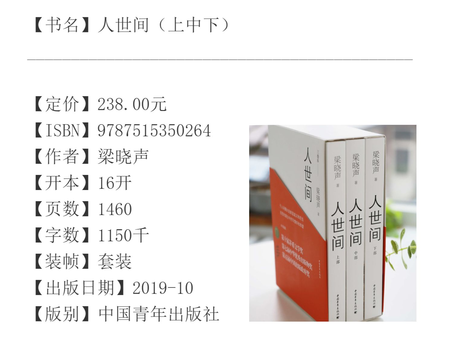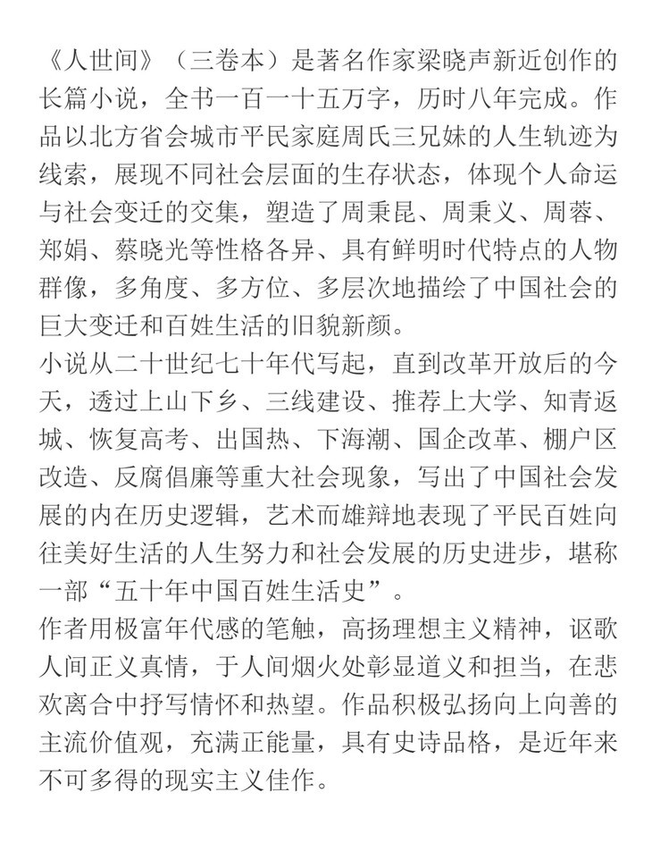 【第十届茅盾文学奖获奖作品】梁晓声 人世间 原著三卷本 中国青年出版社