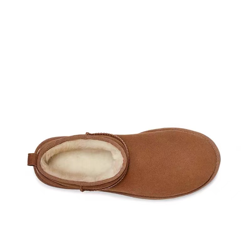 1.17毫米皮毛一体羊皮毛鞋面 2.17毫米UGGplush里衬柔软舒适保暖 3.泡棉内底,轻翼大底轻便防滑耐磨.