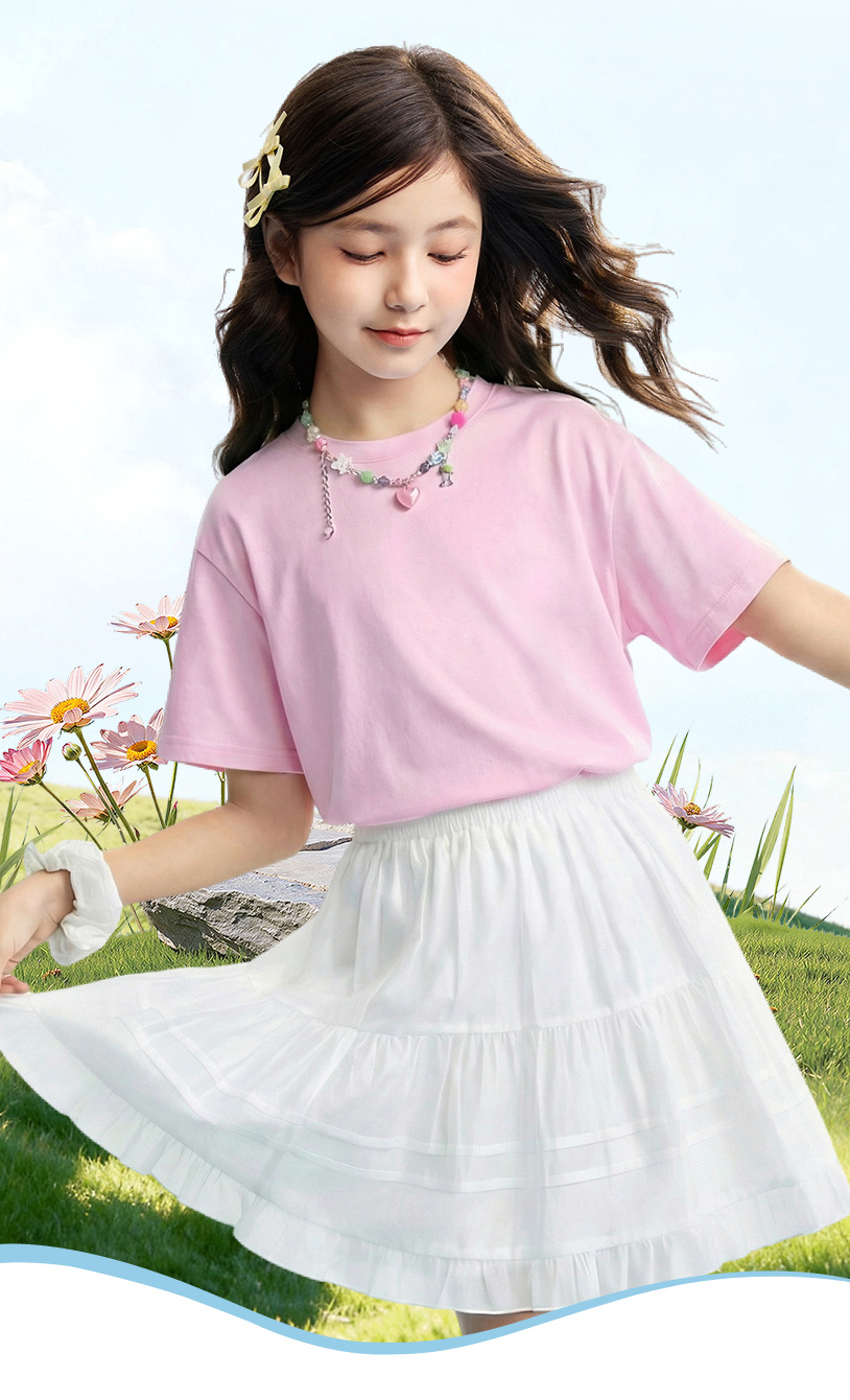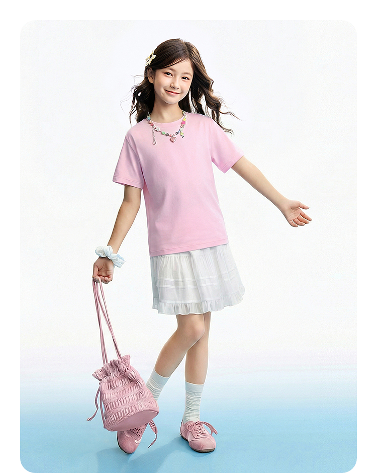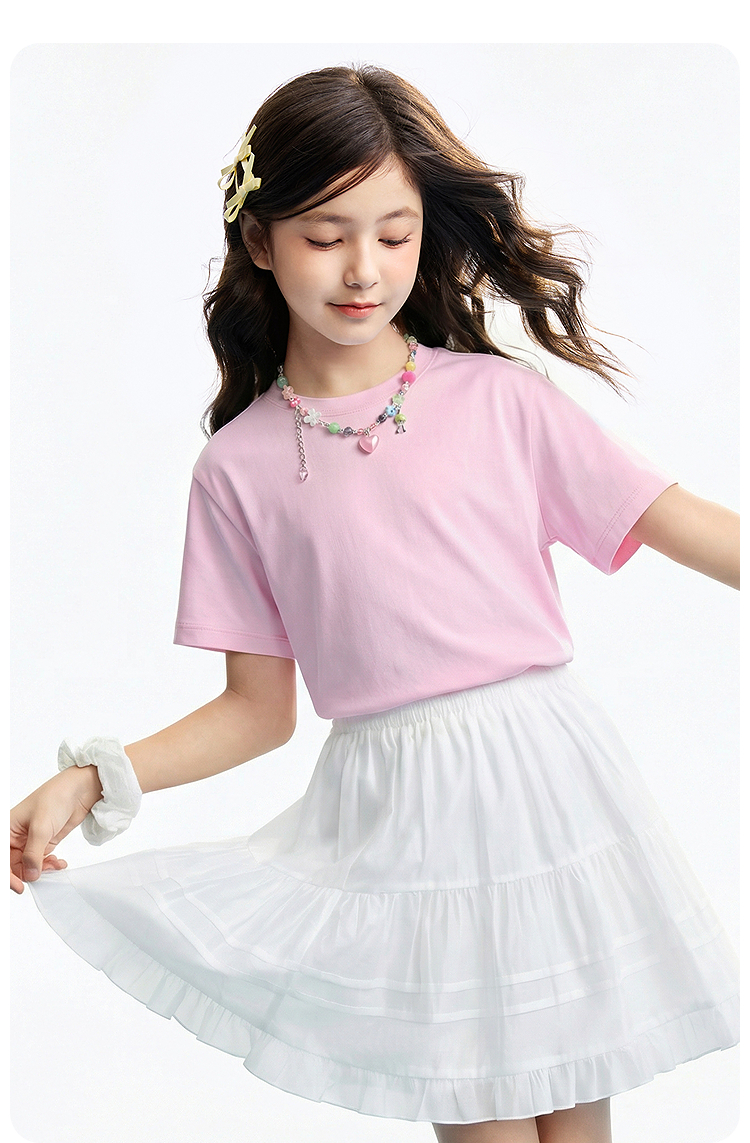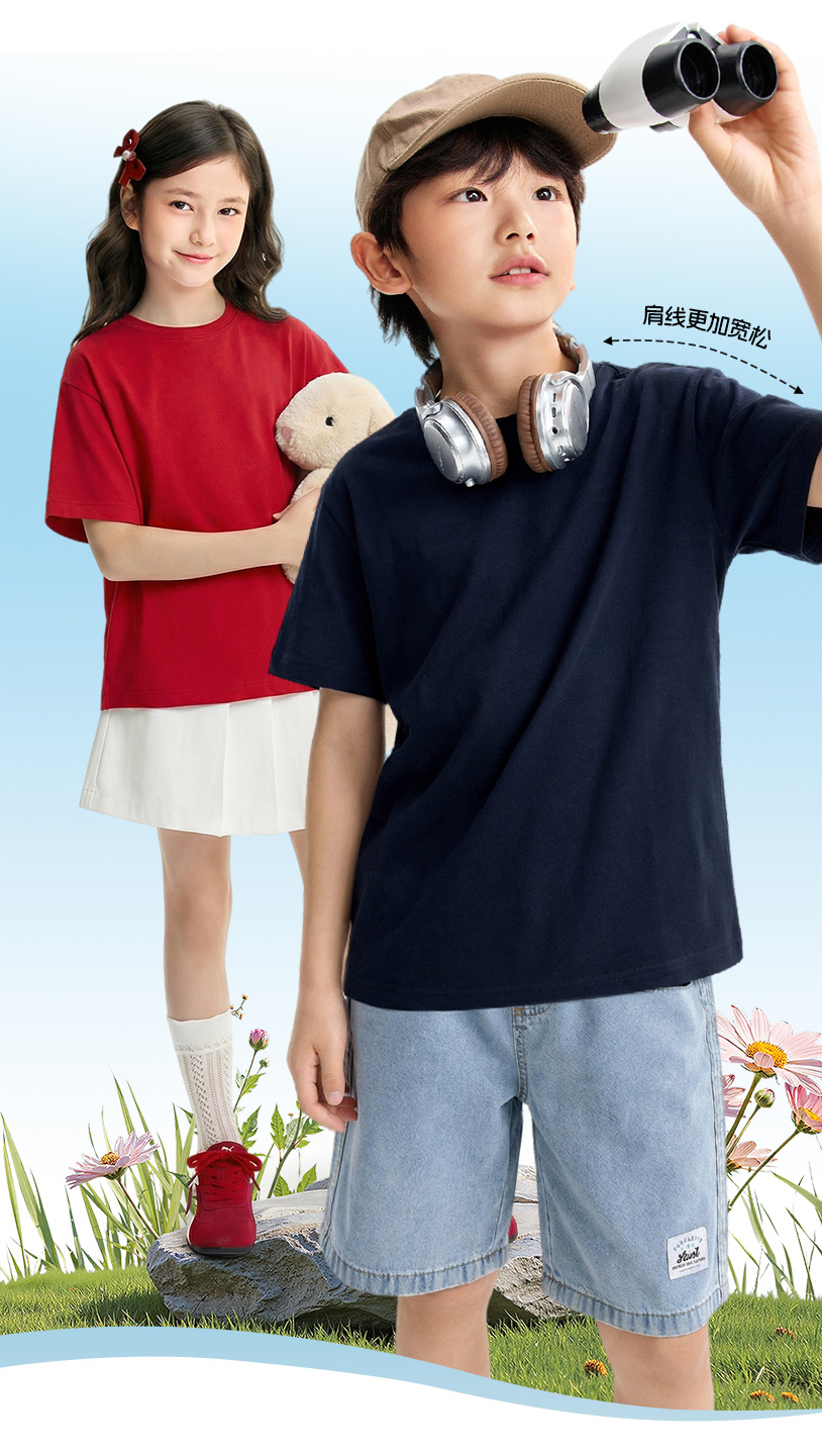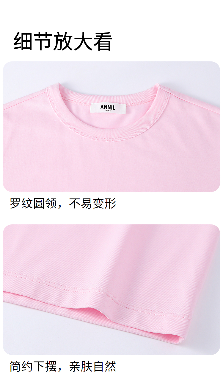 【多巴胺全能亲子T-落肩版型】男女童简约百搭净色亲子T恤短T圆领短袖针织衫夏季新款安奈儿童装EM621732