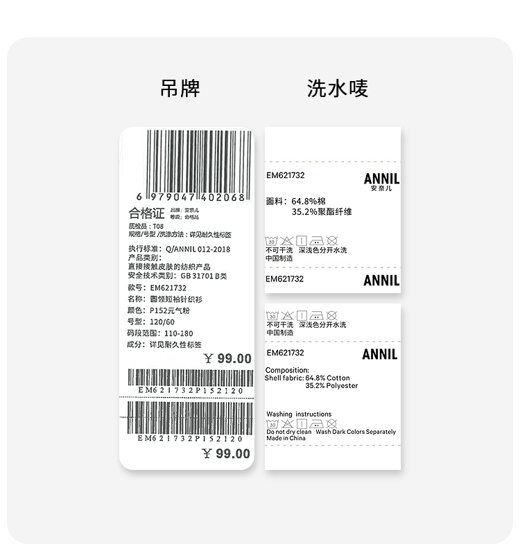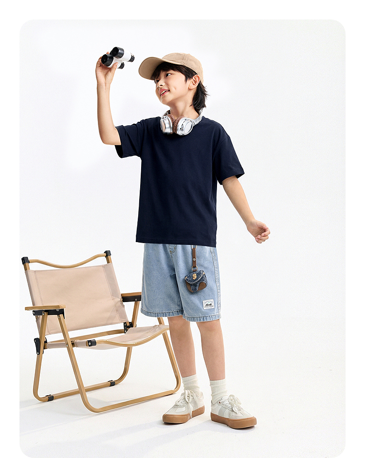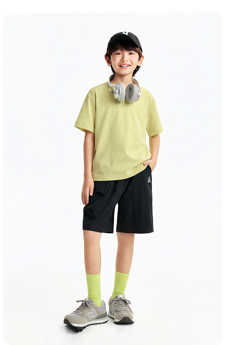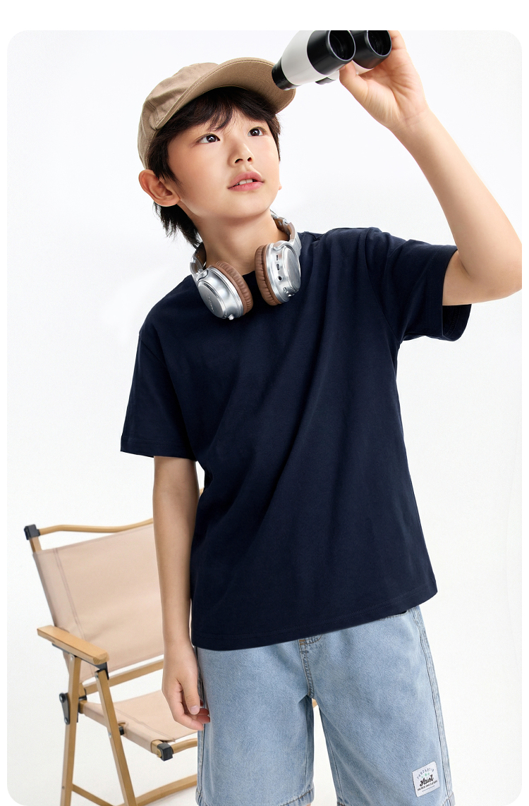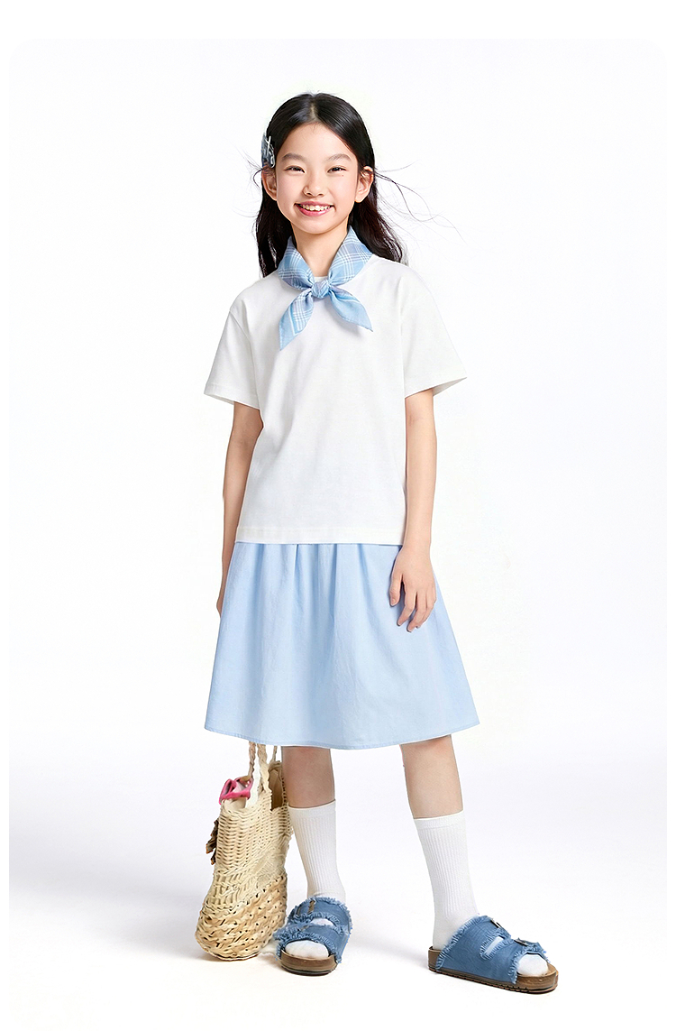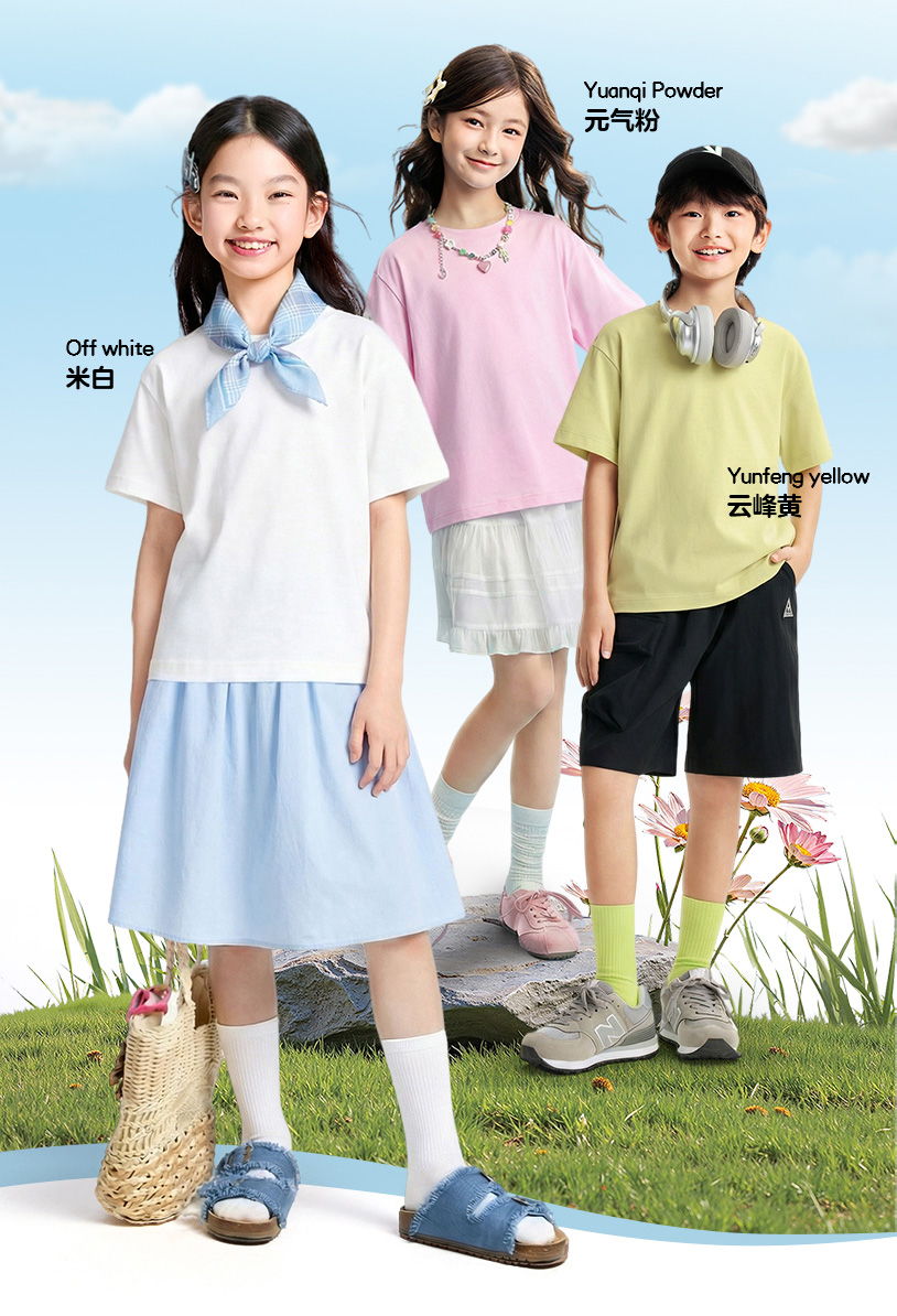 【多巴胺全能亲子T-落肩版型】男女童简约百搭净色亲子T恤短T圆领短袖针织衫夏季新款安奈儿童装EM621732