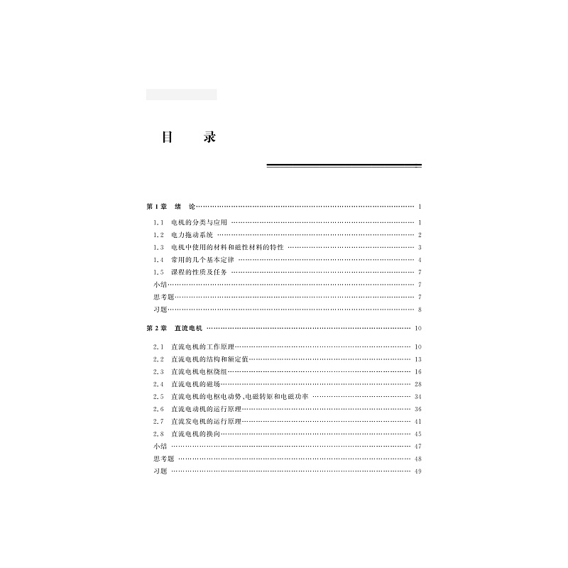 全书共分十一章,前两章是全书的基础,分别阐述电机的基本原理,包括电磁感应、机电能量转换和旋转电机的基本概念、结构与模型;电力拖动动力学基础,包括电力拖动系统的运动方程、稳态和动态分析等内容。在此基础上,后续章节分析和讨论了直流电机、变压器、异步电机、同步电机和特种电机的原理、结构和运行特性,包括电机的起动、制动和调速等问题。