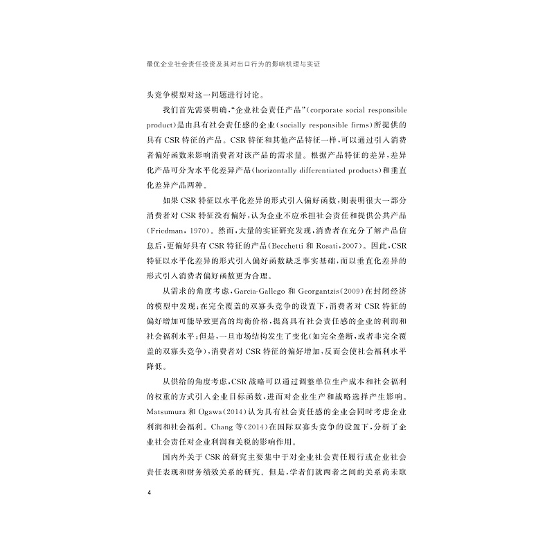 书名:zy企业社会责任投资及其对出口行为的影响机理与实证