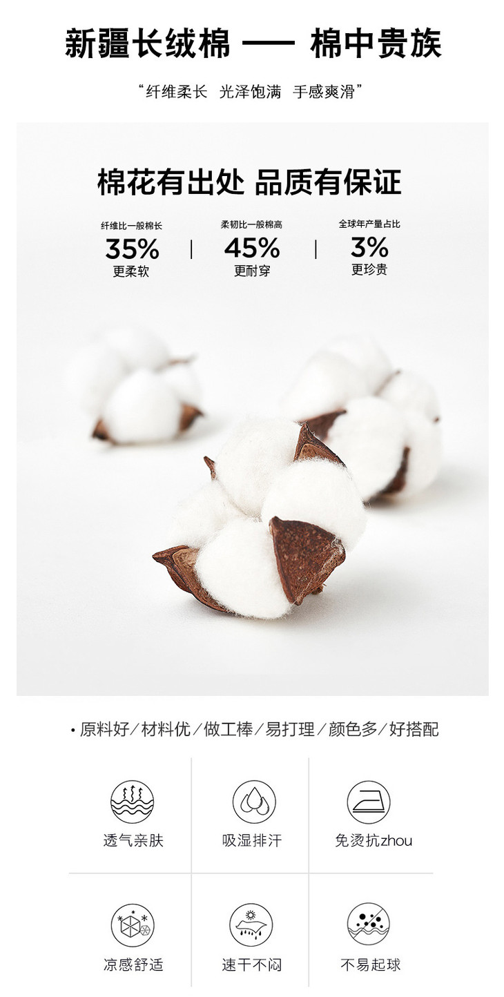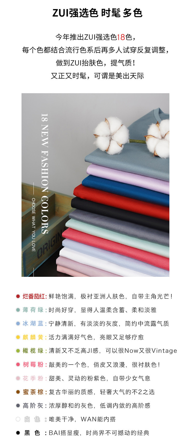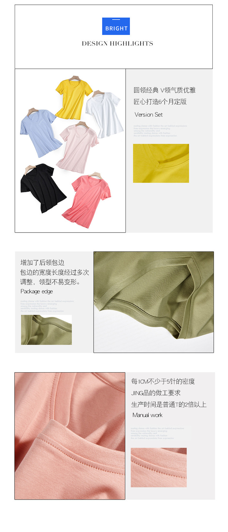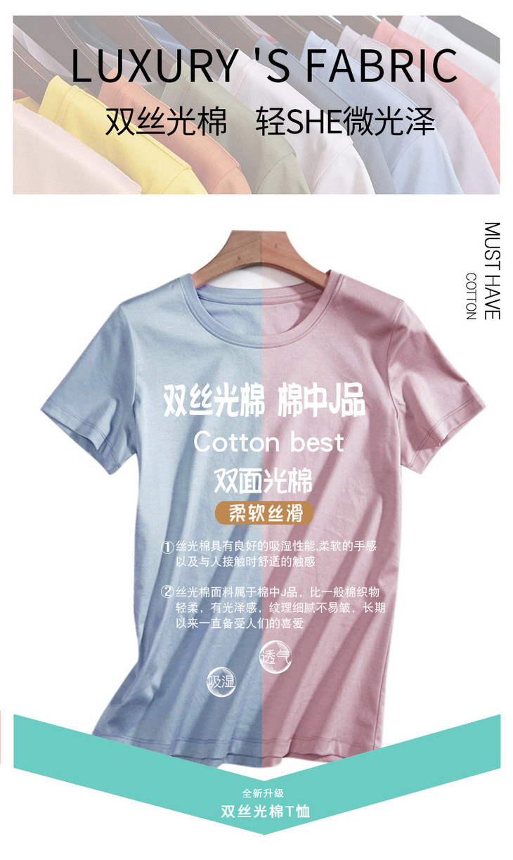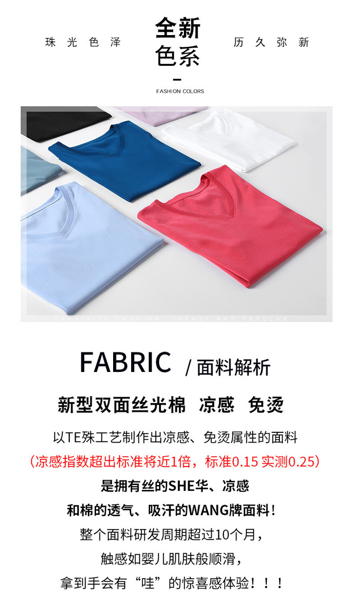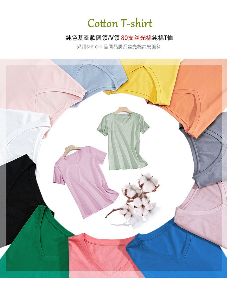 【凉感新疆长绒棉T恤】SOOSSN丝光棉T恤,百搭,20种颜色可选 7个尺码 V领/圆领