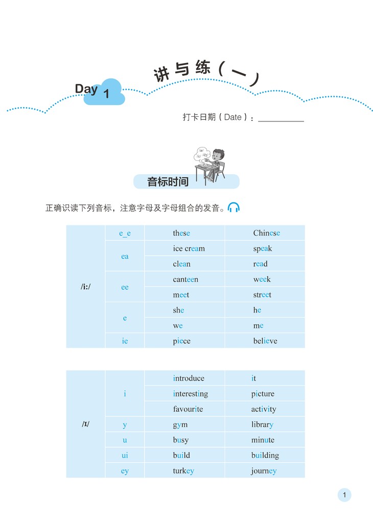 本书包含16天的练测内容,分别对应10份“天天练”和6份“综合测试卷”。10份“天天练”系测试时间为30分钟的综合小练习;6份“综合测试卷”系总分为100分的标准试卷。本书涵盖小学英语学科教学基本要求,对标初中六年级学习内容与要求,旨在帮助学生形成自评,以发现并矫正初中英语学习衔接内容的薄弱之处,从而为入学后的测评考试及顺利适应初中英语学习做好充分的准备。