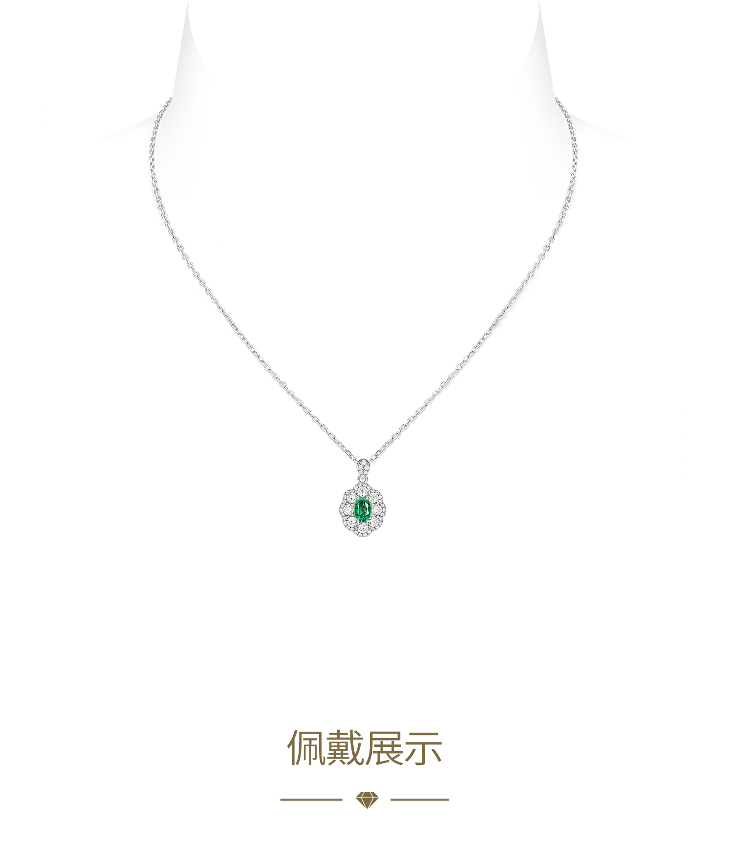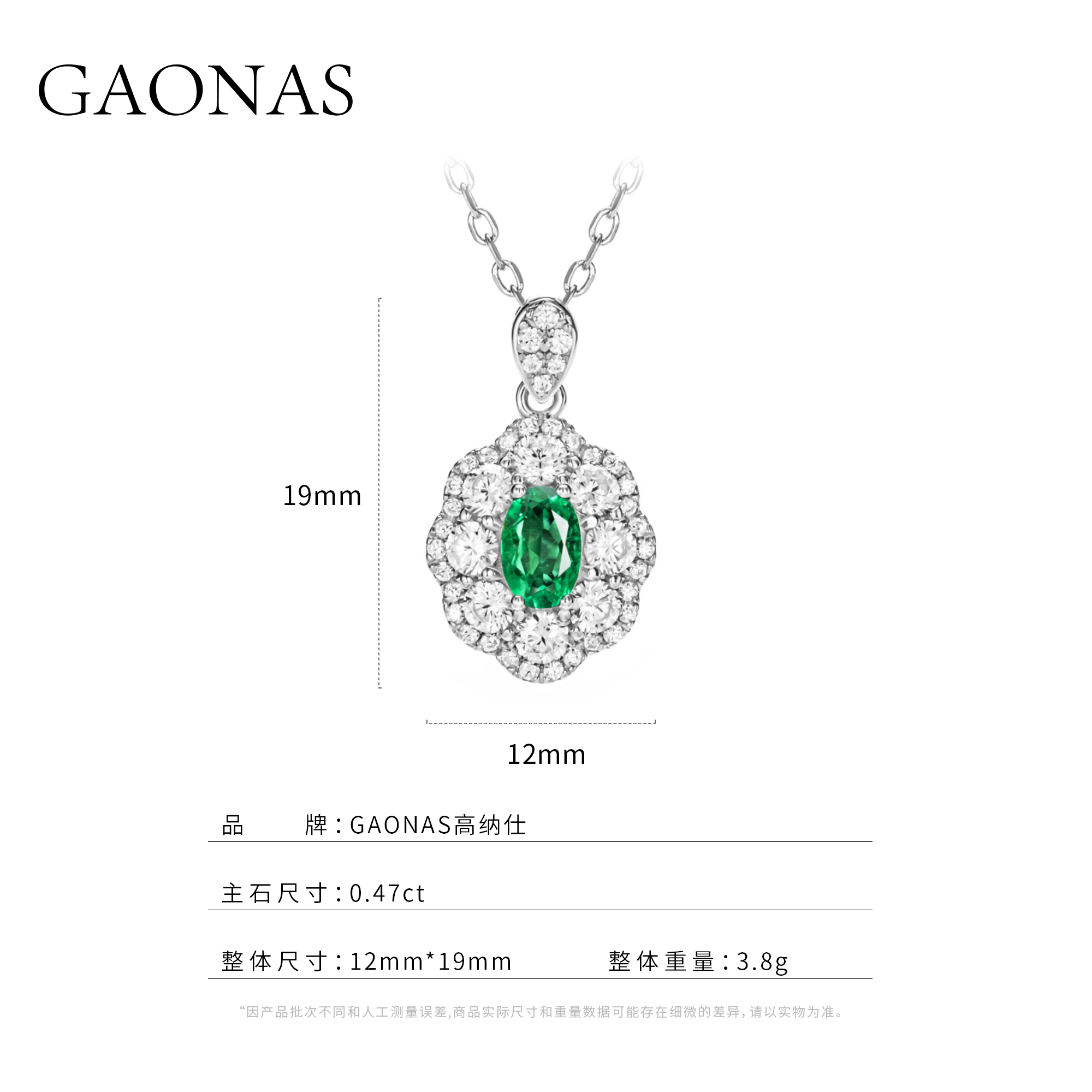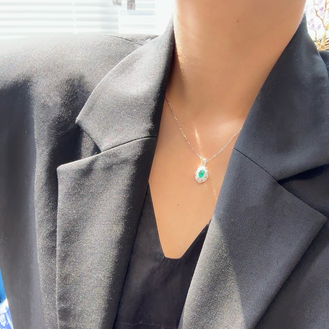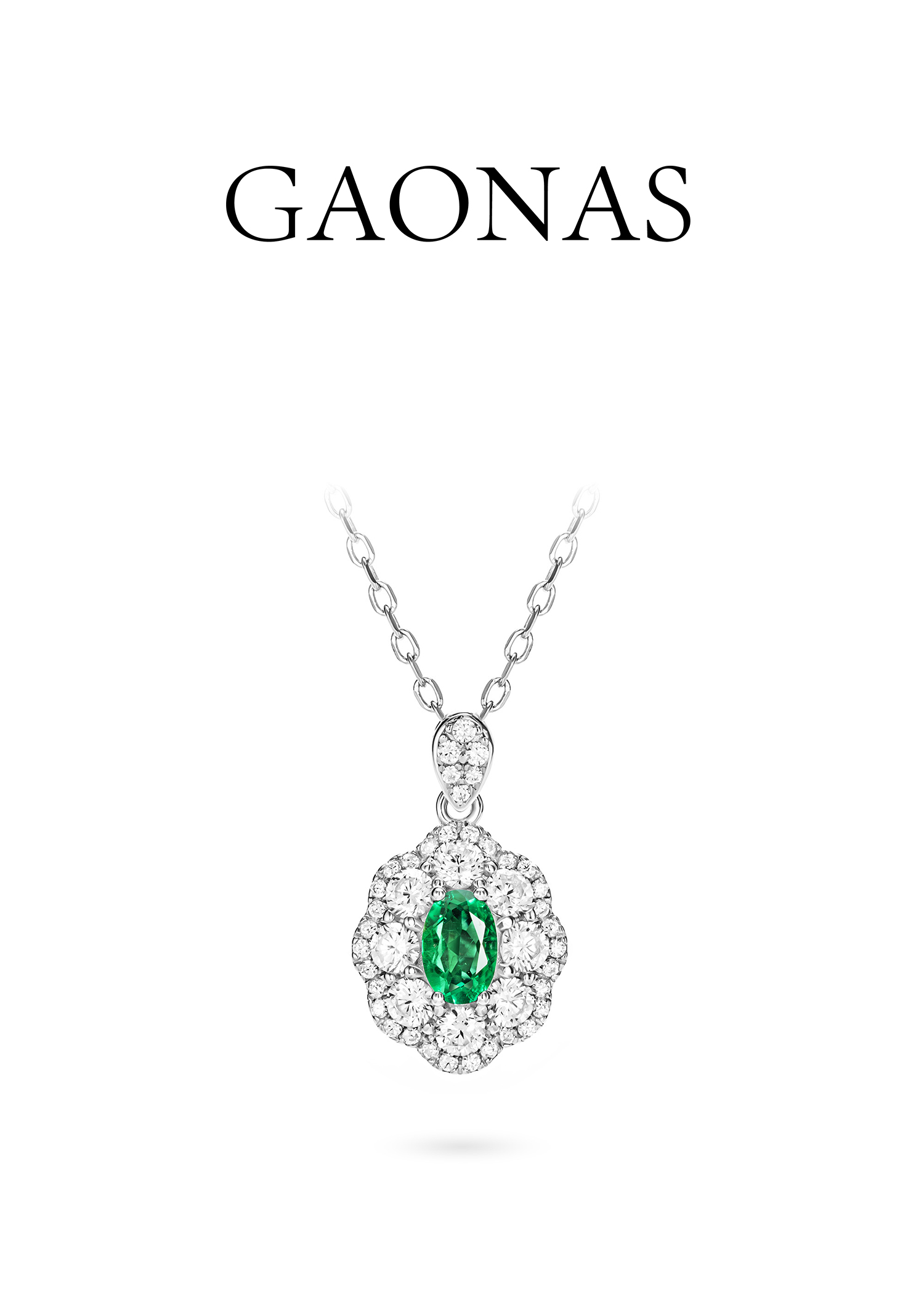 GAONAS 培育祖母绿【矿工的眼泪】时尚贵气百搭百花镶绿项链11306XR