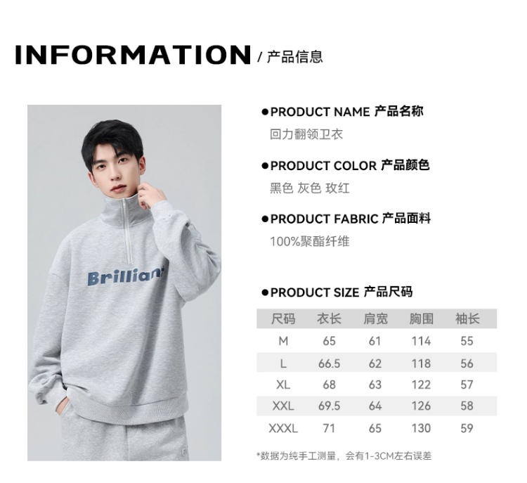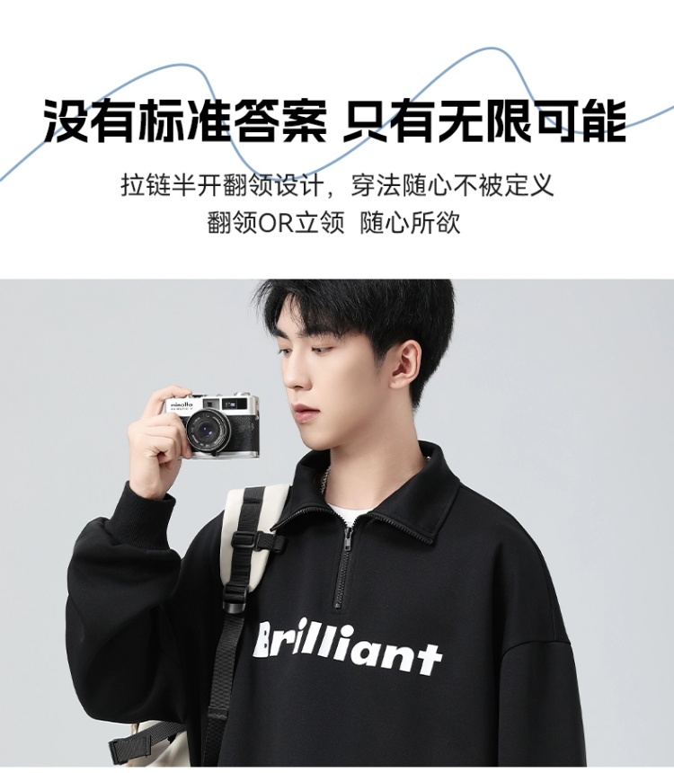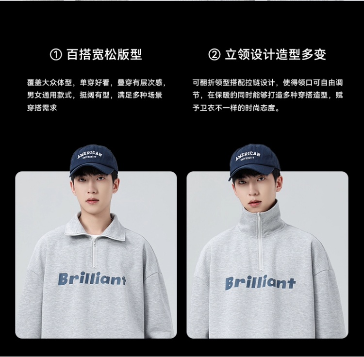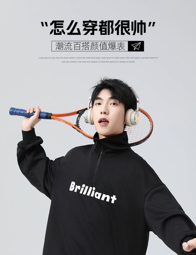 回力半拉链立领卫衣男士2025春秋新款无帽大码长袖衣服男宽松外套