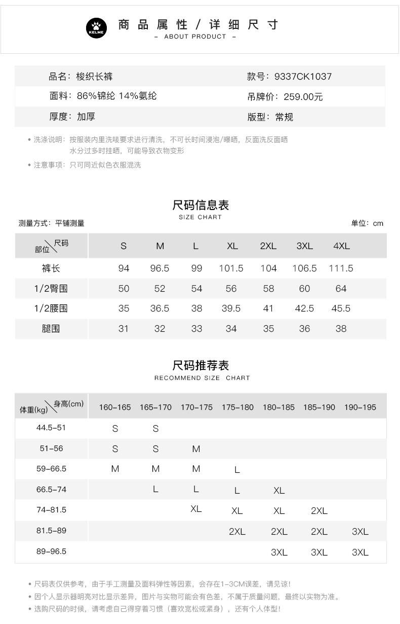 卡尔美男女春秋冬季运动长裤加绒加厚舒适保暖小脚裤
