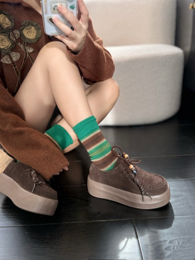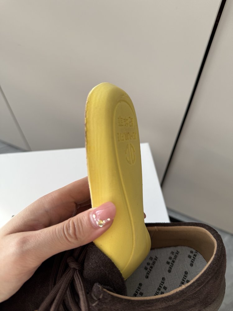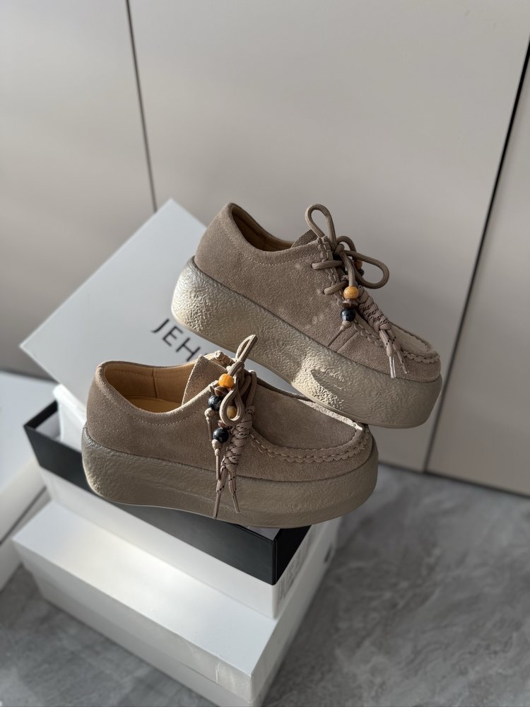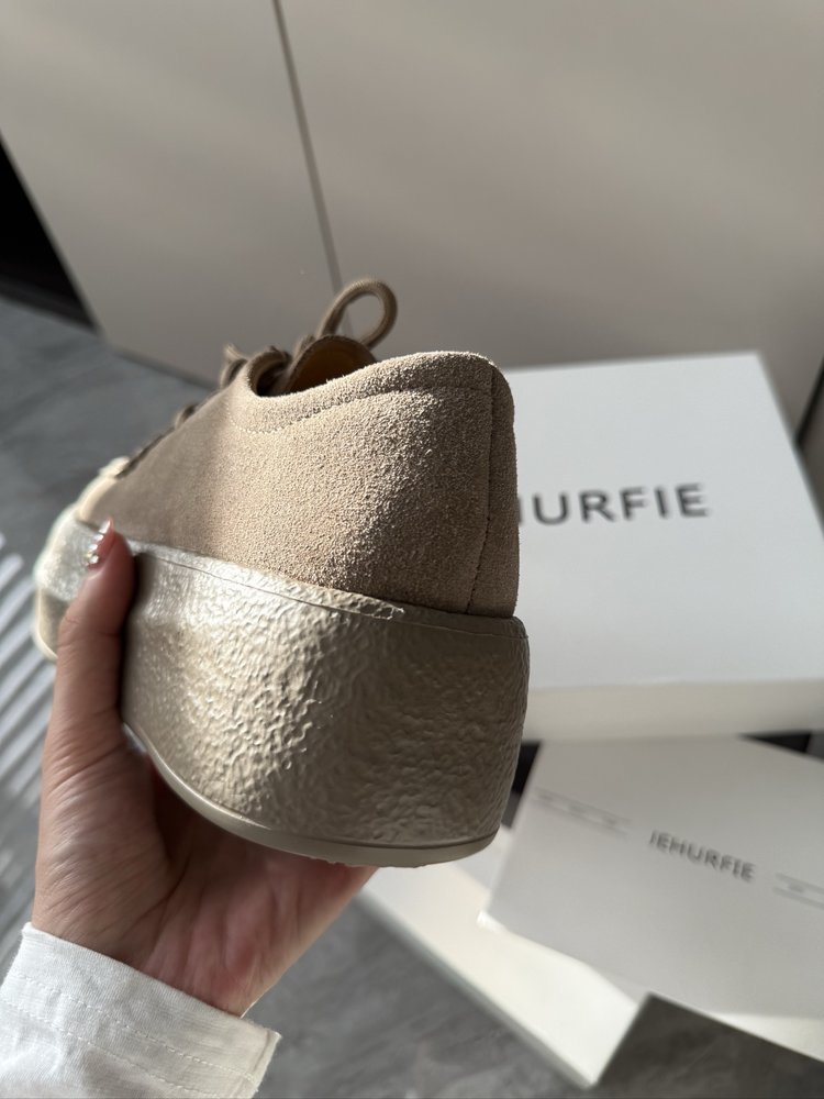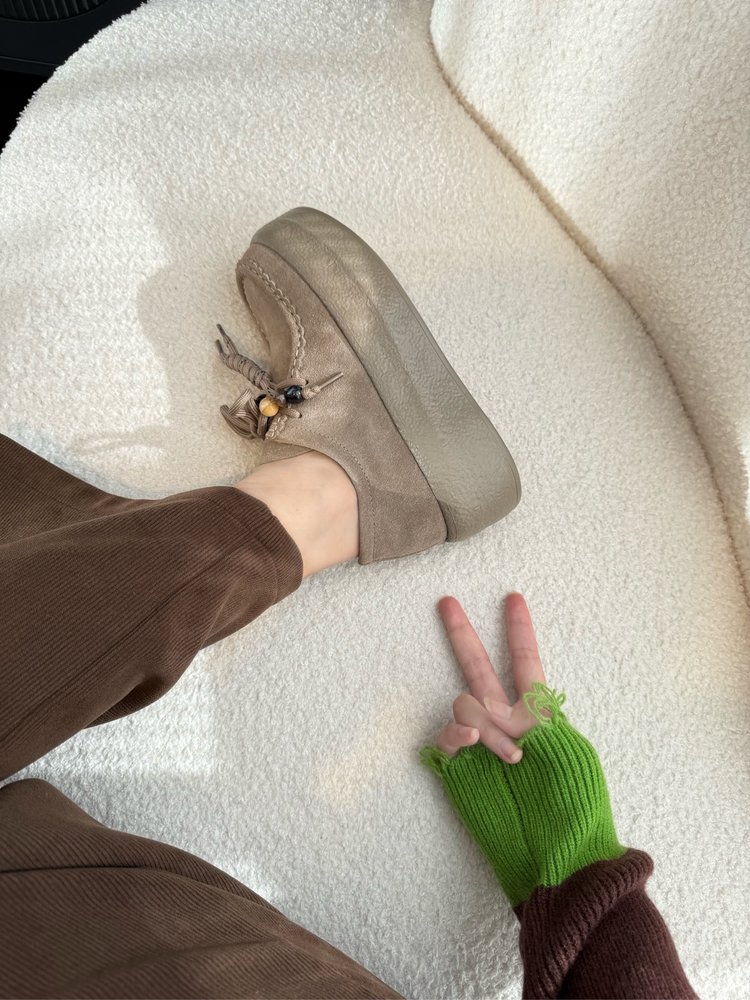【货号】:AB25363【品牌】:JEHURFIE/纪华菲【产地】:温州【颜色】:驼色、咖色、灰色【 材质】:牛绒皮【脚垫】:头层牛皮【内里】:单里【款式】:休闲鞋【鞋底】:橡胶发泡【跟高】:5CM【规格】: 35-40标准【重量】:单只净重479g (37码)【快递】:圆通 极兔 韵达【发货地】:温州【不发地区】 港澳台地区暂不发