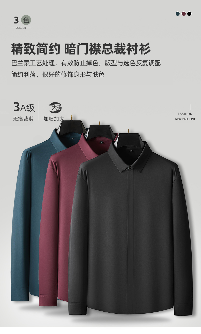 【暗门襟】【新款DDA】大依优型大码长袖衬衫翻领加肥加大肥佬休闲商务宽松透气上衣