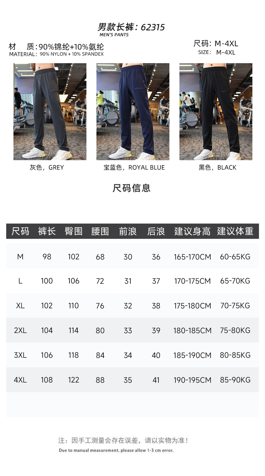 跃牌【PF系列】锦纶四面弹运动长裤男款秋季跑步健身休闲轻运动裤62315