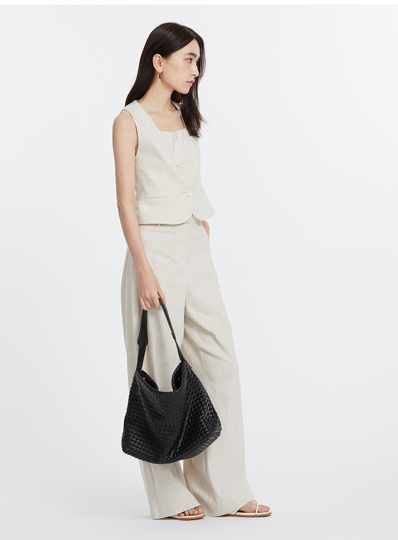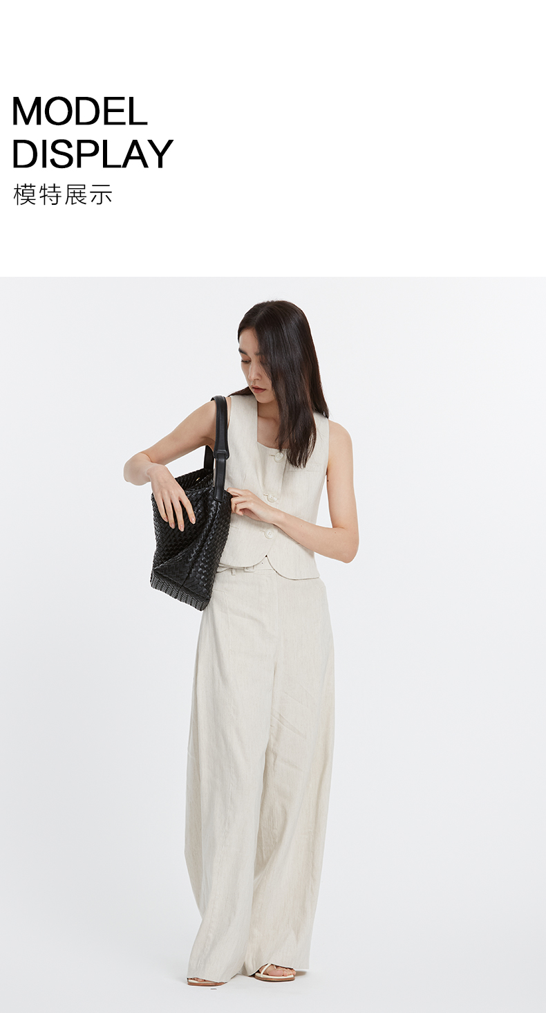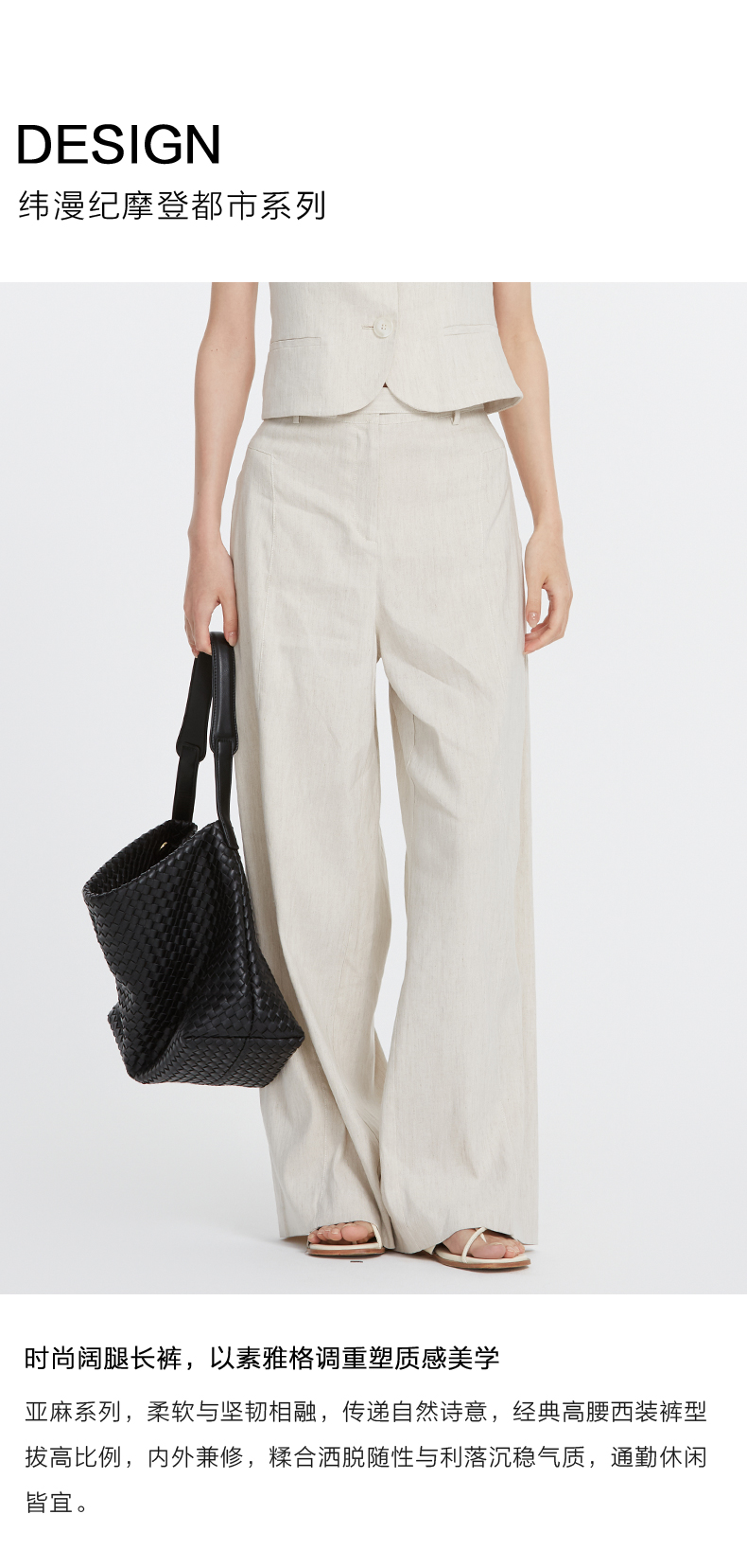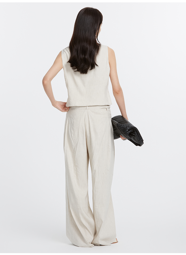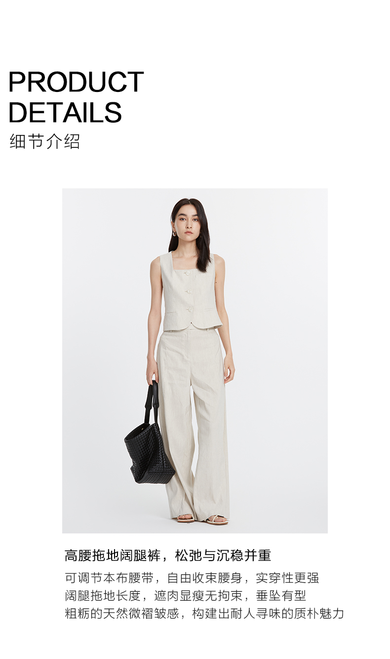 VIMAGE纬漫纪夏季新款时尚通勤干练垂坠高腰显瘦阔腿裤V2105719