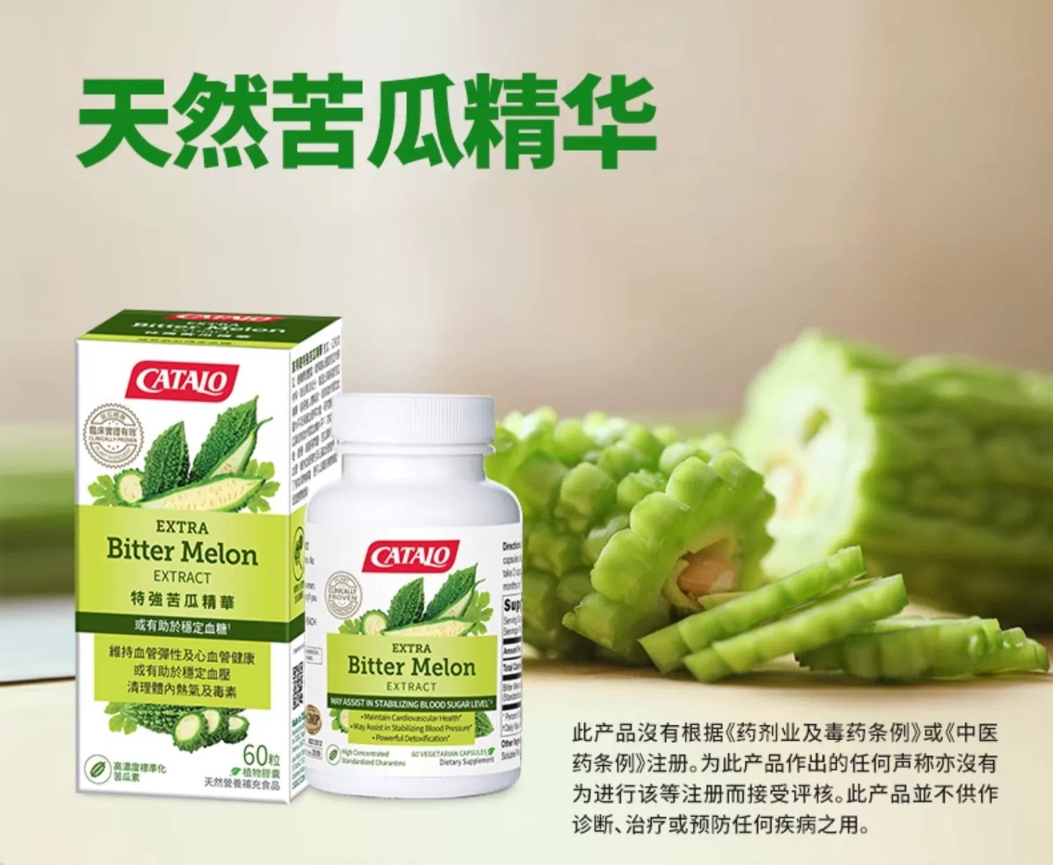 CATALO特强苦瓜精华中老年苦瓜素60粒原装进口 (保质期2027.9)