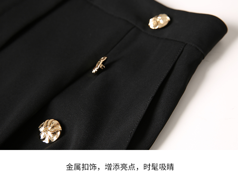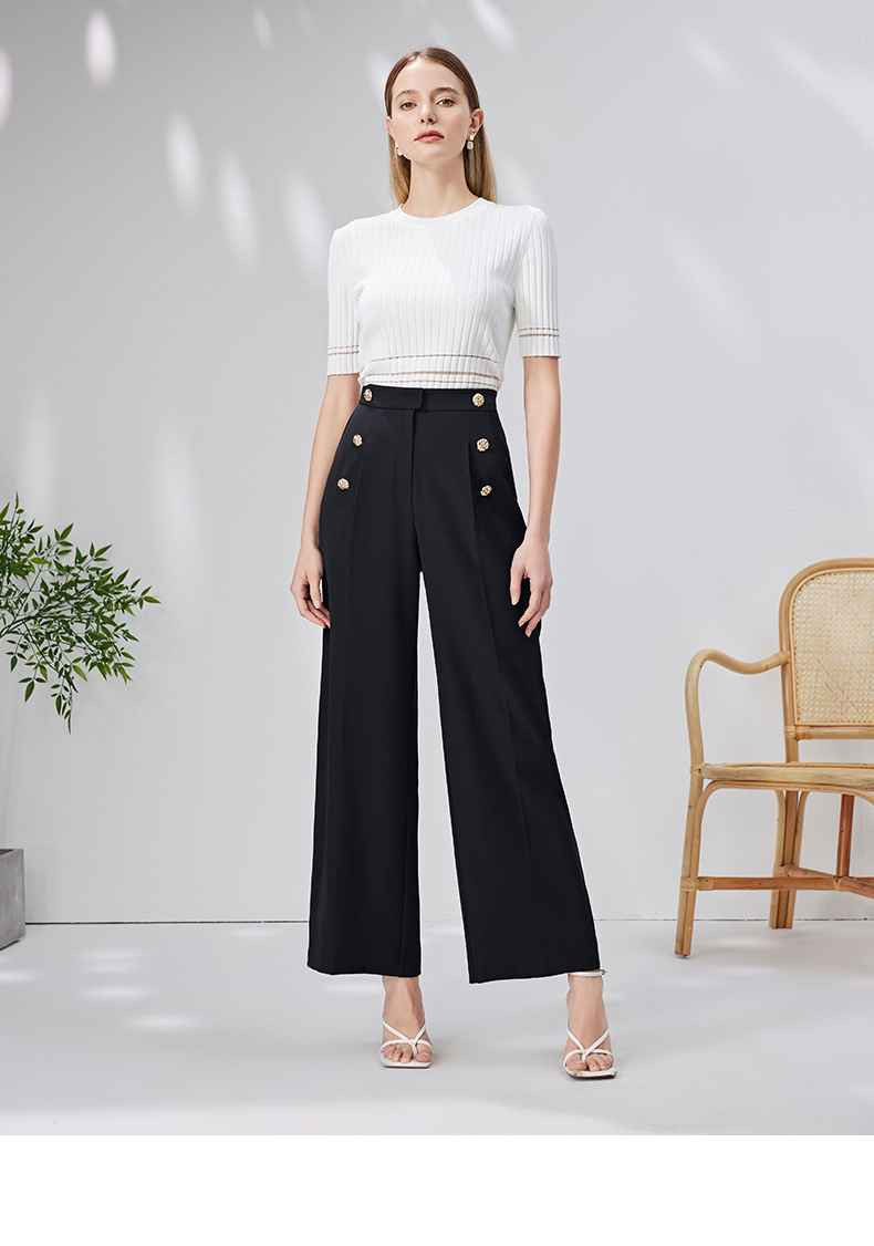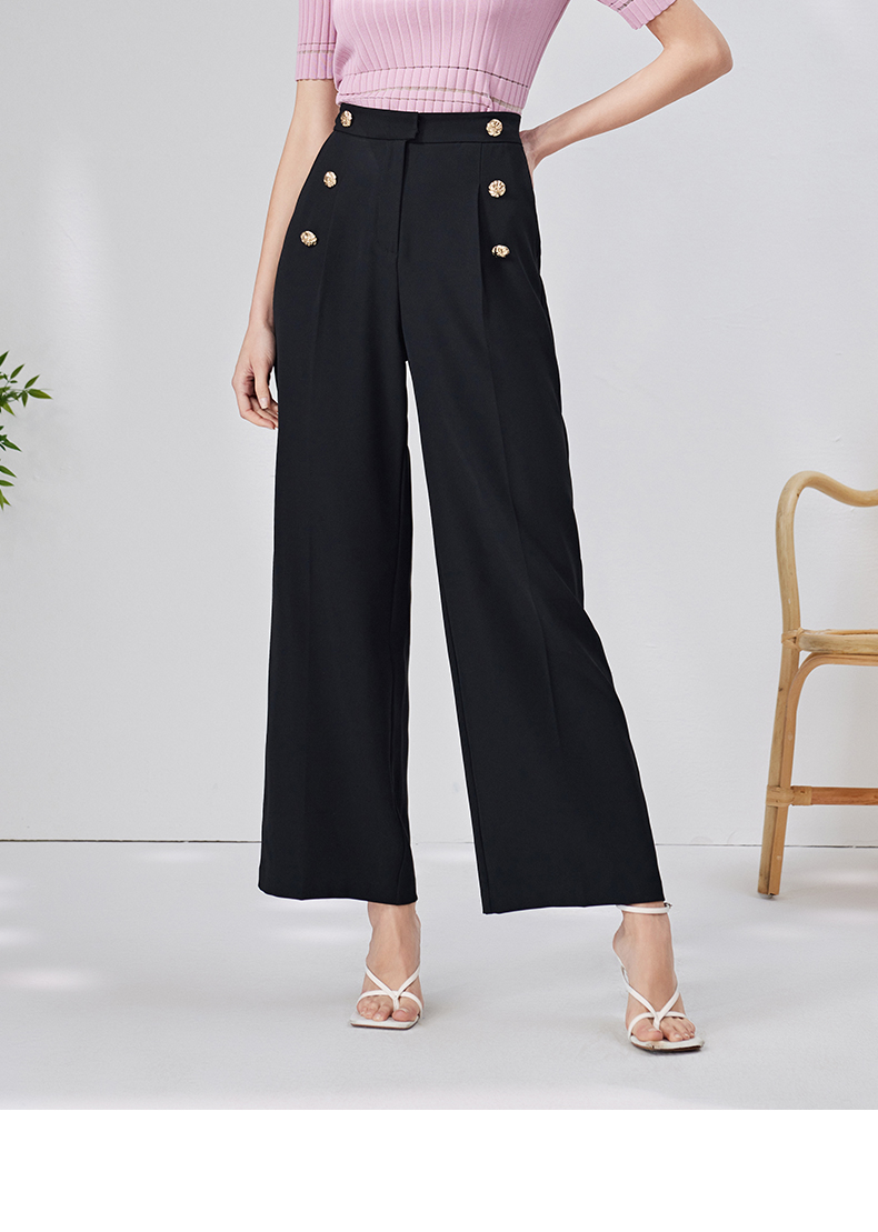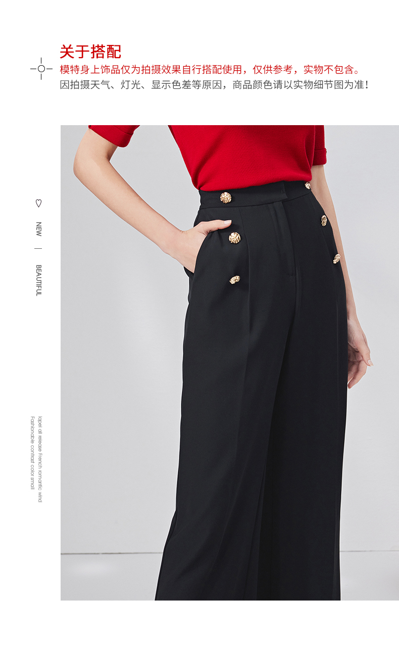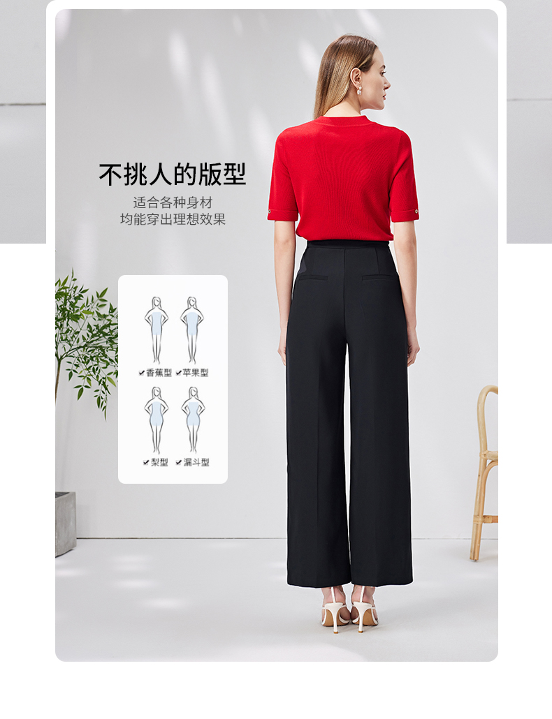 EITIE爱特爱春季新款高腰显瘦黑色微喇休闲裤女气质通勤时尚裤子A2205907